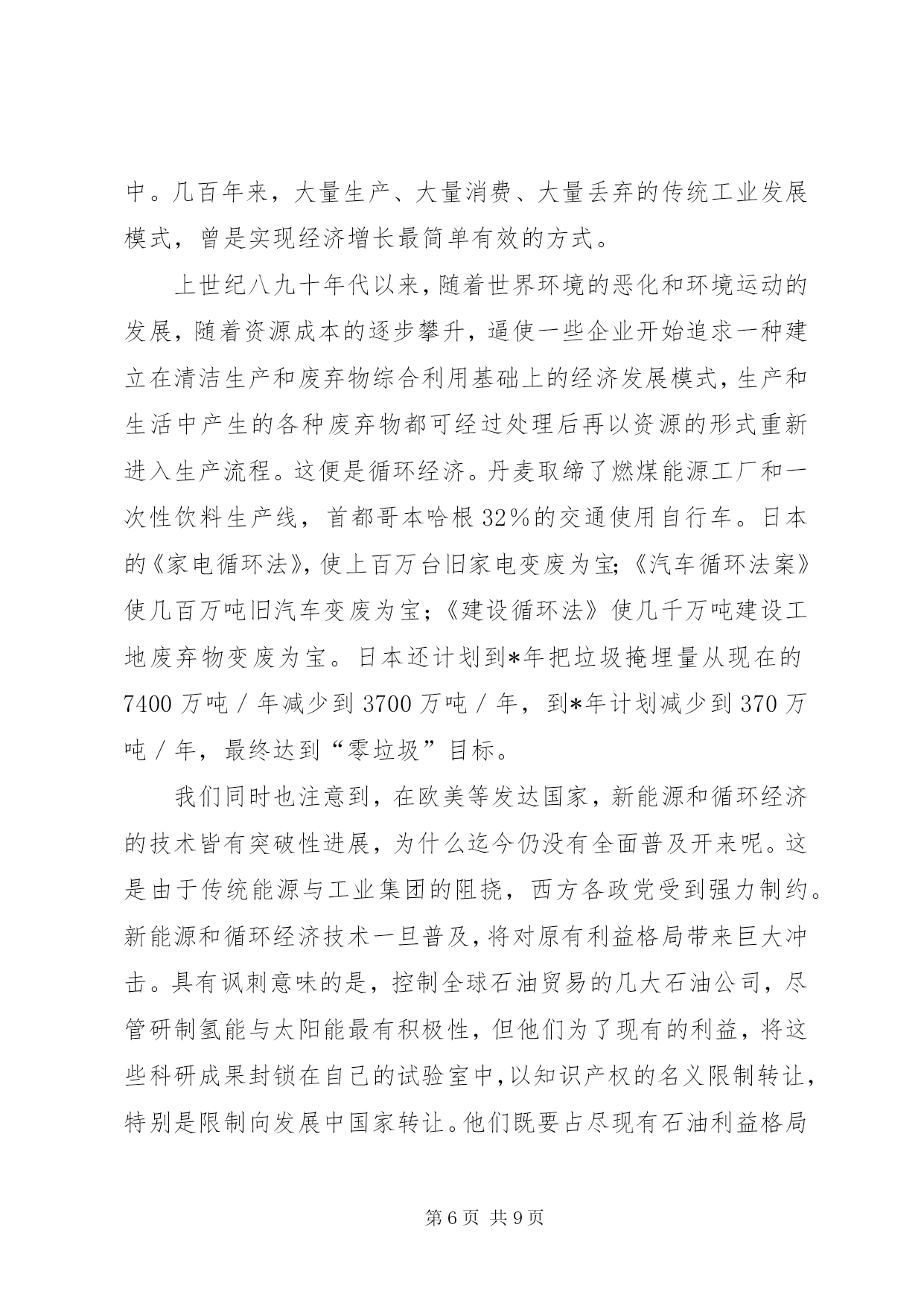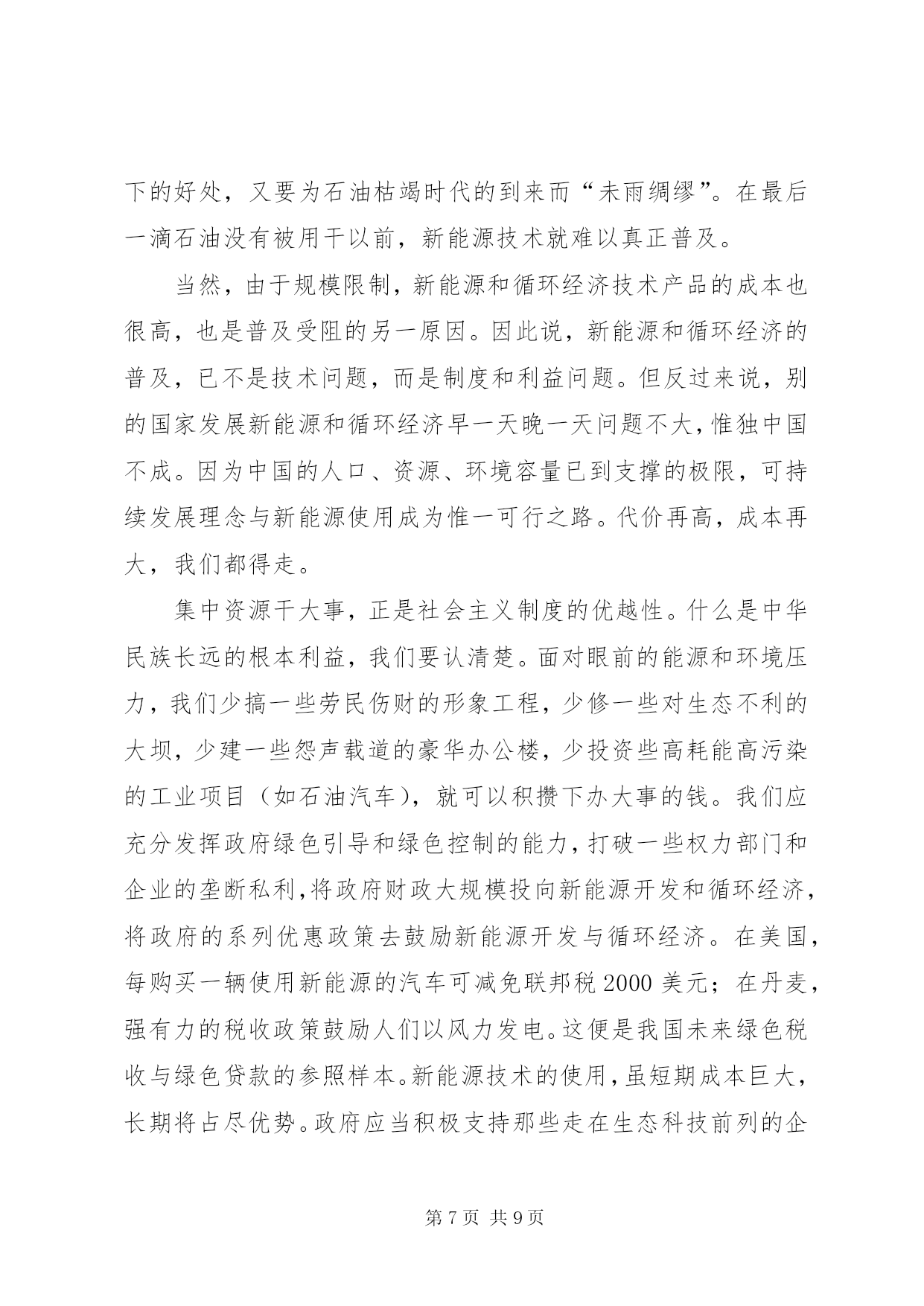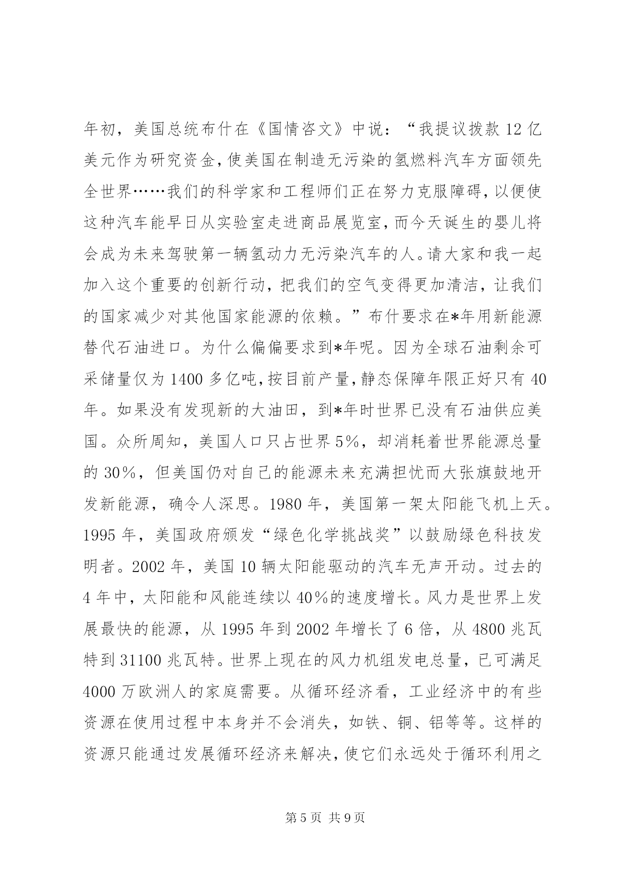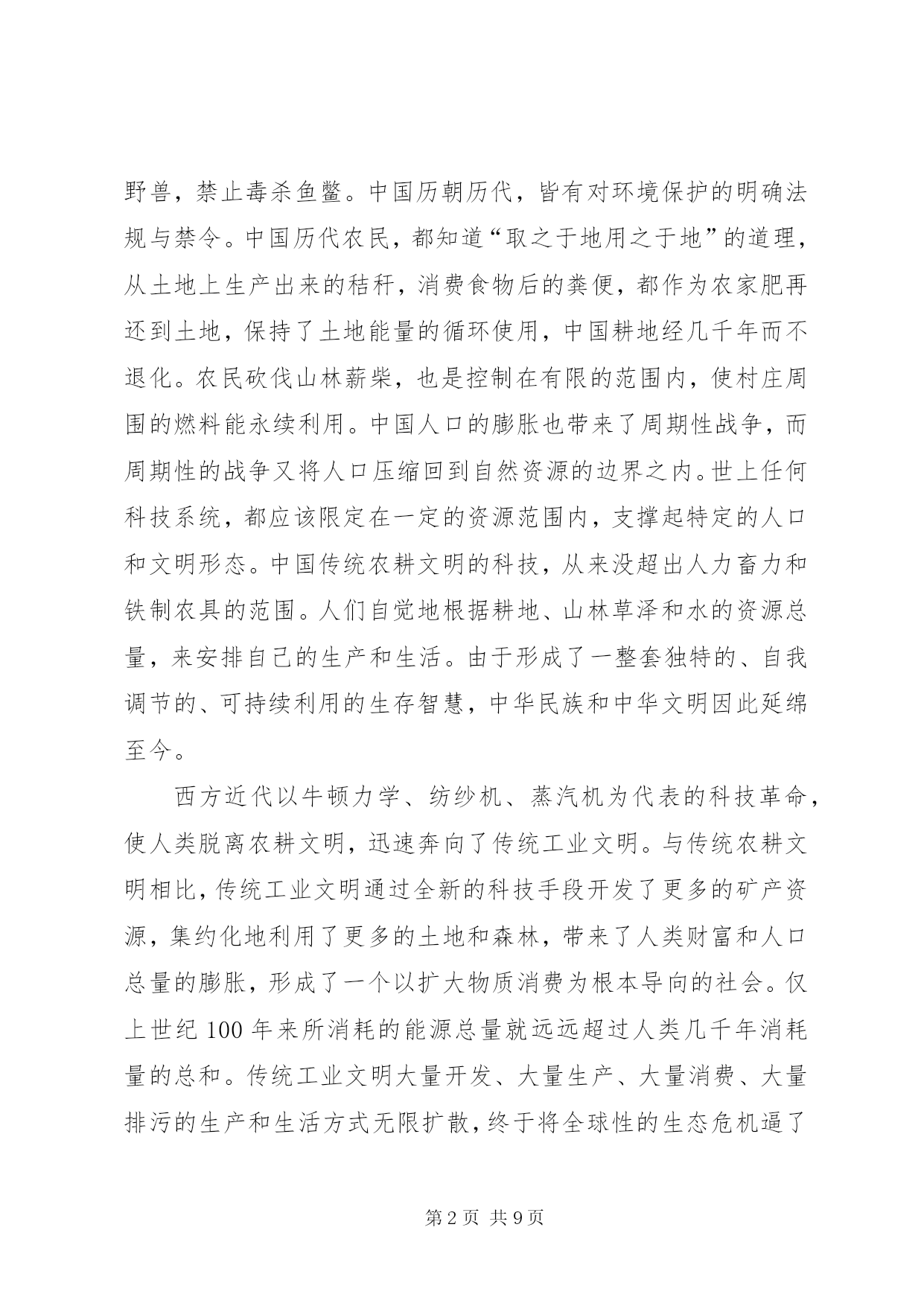 第PAGE\*Arabic\*MERGEFORMAT9页共NUMPAGES\*MERGEFORMAT9页环保与科技整改措施一、超越传统工业科技人类有别于其他动物的特征之一,就是人类能创造和使用工具,还能用特殊的文字符号去解释自然。就是说,人类比其他动物更具有一种科技能力。借助这种能力,人类才能创造出大自然中本不存在的东西———人类文明。科技在不断演化,人类文明也在不断演化。一万年前,在人口资源的压力下,人类由渔猎采集文明向传统农耕文明转型。传统农耕文明经历过两个阶段,第一个阶段是青铜时代,中国的商朝和西周王朝属青铜时代。第二个阶段是黑铁时代,春秋战国时期属黑铁时代。随着铁冶炼和铸造技术的普及,传统的意识形态和社会制度因适应不了新生产力的要求而开始崩溃。直到秦王朝于公元前221年统一中国,一个“铁农具+小农经济+君主官僚制+儒道法意识形态”的中华文明得以成型。农耕文明一万年以来虽有各种自然灾害和战争,但人类总的来说是稳定和安全的,因为当时的科技主流顺应了自然法则。传统的农耕文明对自然资源的利用能力是有限的,对大自然具有很强的依赖性,他们敬畏自然。中国四千年前的夏朝,规定春天不准砍伐树木,夏天不准捕鱼,不准捕杀幼兽和获取鸟蛋;三千年前的周朝,根据气候节令,严格规定了打猎、捕鸟、捕鱼、砍伐树木、烧荒的时间;两千年前的秦朝,禁止春天采集刚刚发芽的植物,禁止捕捉幼小的野兽,禁止毒杀鱼鳖。中国历朝历代,皆有对环境保护的明确法规与禁令。中国历代农民,都知道“取之于地用之于地”的道理,从土地上生产出来的秸秆,消费食物后的粪便,都作为农家肥再还到土地,保持了土地能量的循环使用,中国耕地经几千年而不退化。农民砍伐山林薪柴,也是控制在有限的范围内,使村庄周围的燃料能永续利用。中国人口的膨胀也带来了周期性战争,而周期性的战争又将人口压缩回到自然资源的边界之内。世上任何科技系统,都应该限定在一定的资源范围内,支撑起特定的人口和文明形态。中国传统农耕文明的科技,从来没超出人力畜力和铁制农具的范围。人们自觉地根据耕地、山林草泽和水的资源总量,来安排自己的生产和生活。由于形成了一整套独特的、自我调节的、可持续利用的生存智慧,中华民族和中华文明因此延绵至今。西方近代以牛顿力学、纺纱机、蒸汽机为代表的科技革命,使人类脱离农耕文明,迅速奔向了传统工业文明。与传统农耕文明相比,传统工业文明通过全新的科技手段开发了更多的矿产资源,集约化地利用了更多的土地和森林,带来了人类财富和人口总量的膨胀,形成了一个以扩大物质消费为根本导向的社会。仅上世纪100年来所消耗的能源总量就远远超过人类几千年消耗量的总和。传统工业文明大量开发、大量生产、大量消费、大量排污的生产和生活方式无限扩散,终于将全球性的生态危机逼了出来。人类终于深切感受到地球资源和环境的有限。所谓的现代化进程,就是将自然资源转化成可用财富的进程,所谓的现代化社会,就是人均资源消耗高、排污量大的社会。由于人口增加,由于物欲横流,由于工商业的发展需要,人均资源消耗量直线上升。以水为例,公元前每人每天耗水12升,中世纪约20~40升,18世纪增加到60升,而现在,发达国家的人均每天耗水量达500~600升。据有关材料统计,工业化国家每创造100美元的收入,约需要300公斤的自然资源,人均每年需要45000~85000公斤自然资源。中国如果要达到工业化国家的人均消耗水平,比如13亿中国人都将自行车换成汽车,那就不是2003年每天消耗546万桶石油的水平,而要变成每天消耗8100万桶,远远超过世界目前石油消耗总量,地球上有这么多资源供我们消耗吗。我们有能力对因此而产生的大量污染物进行无害化处理吗。近年来中国经济的高速增长,是因为全面承袭了西方传统工业的发展模式,更是因为中国对本土能源的过度消耗。从1990年到2001年10年间,中国石油消费量增长100%(从1.18亿吨到2.35亿吨),天然气增长92%(从114亿立方米到277亿立方米),钢增长143%(从0.67亿吨到1.63亿吨),铜增长189%(从72.9万吨到211万吨),铝增长380%(从72.4万吨到354.5万吨)、锌增长311%(从36.9万吨到152.3万吨)、10种有色金属增长276%(从217万吨到816万吨)。人们在为我国经济高速增长而兴奋的同时,往往会忘记这些成绩背后的资源消耗、垃圾成堆、环境污染和生态破坏。世界上的一切成功都是有成本的。有人算过,按目前的科技水平,中国的现代化需要有12个地球的资源来支撑。如果只有一个地球,我们也得把地球全部吃空才能现代化。道理再清楚不过,中国本来就人多地少,资源稀缺,而传统过时的工业科技却又偏偏指向了稀缺性和污染性资源,这种科技具有不可持续性。谁继续走传统工业文明之路,谁就走上了不可持续