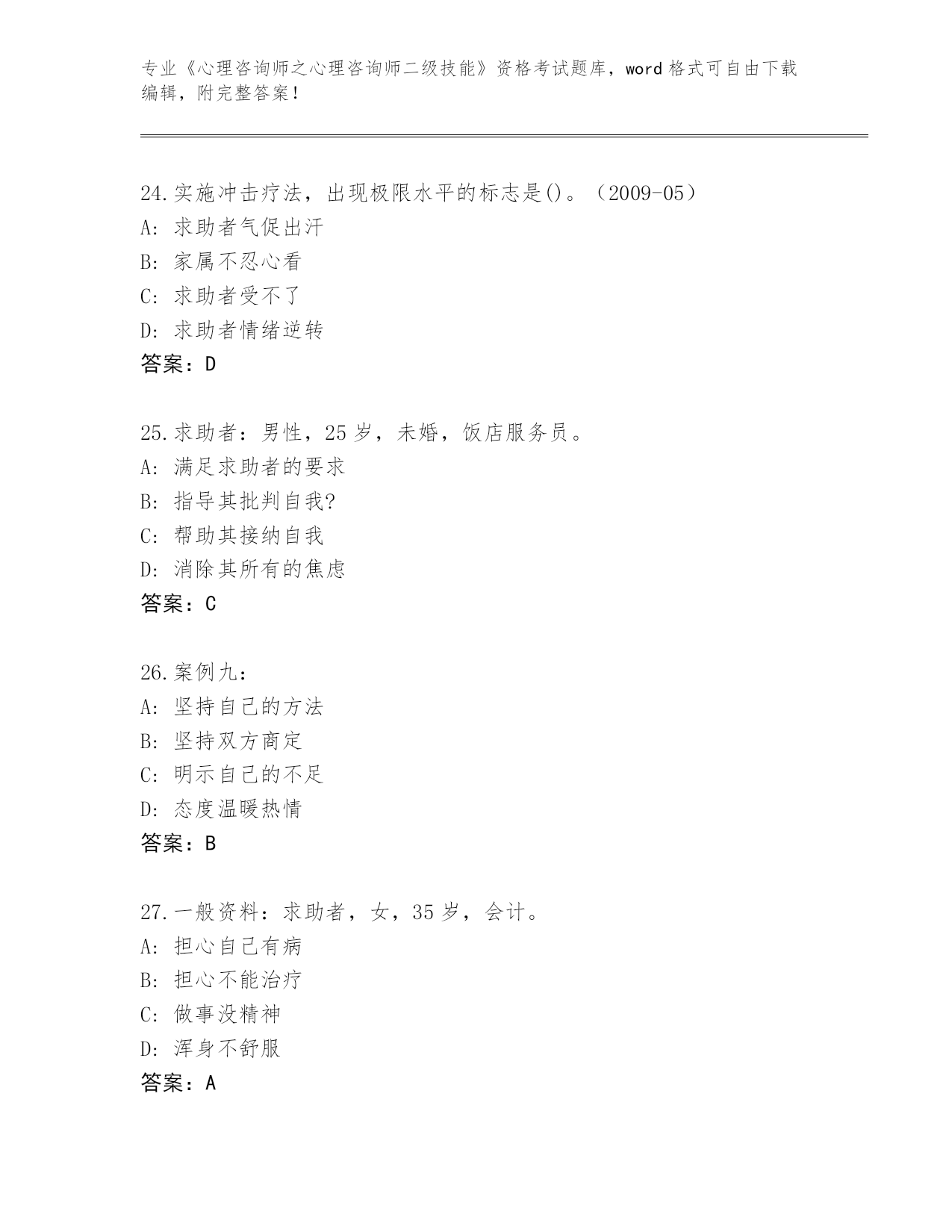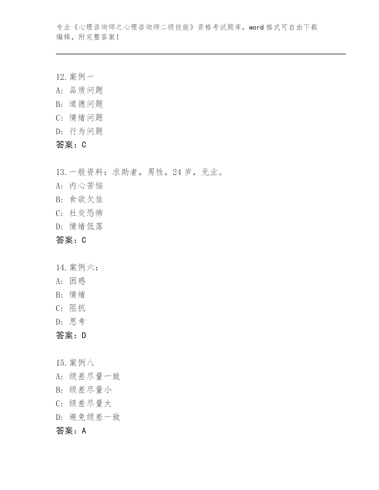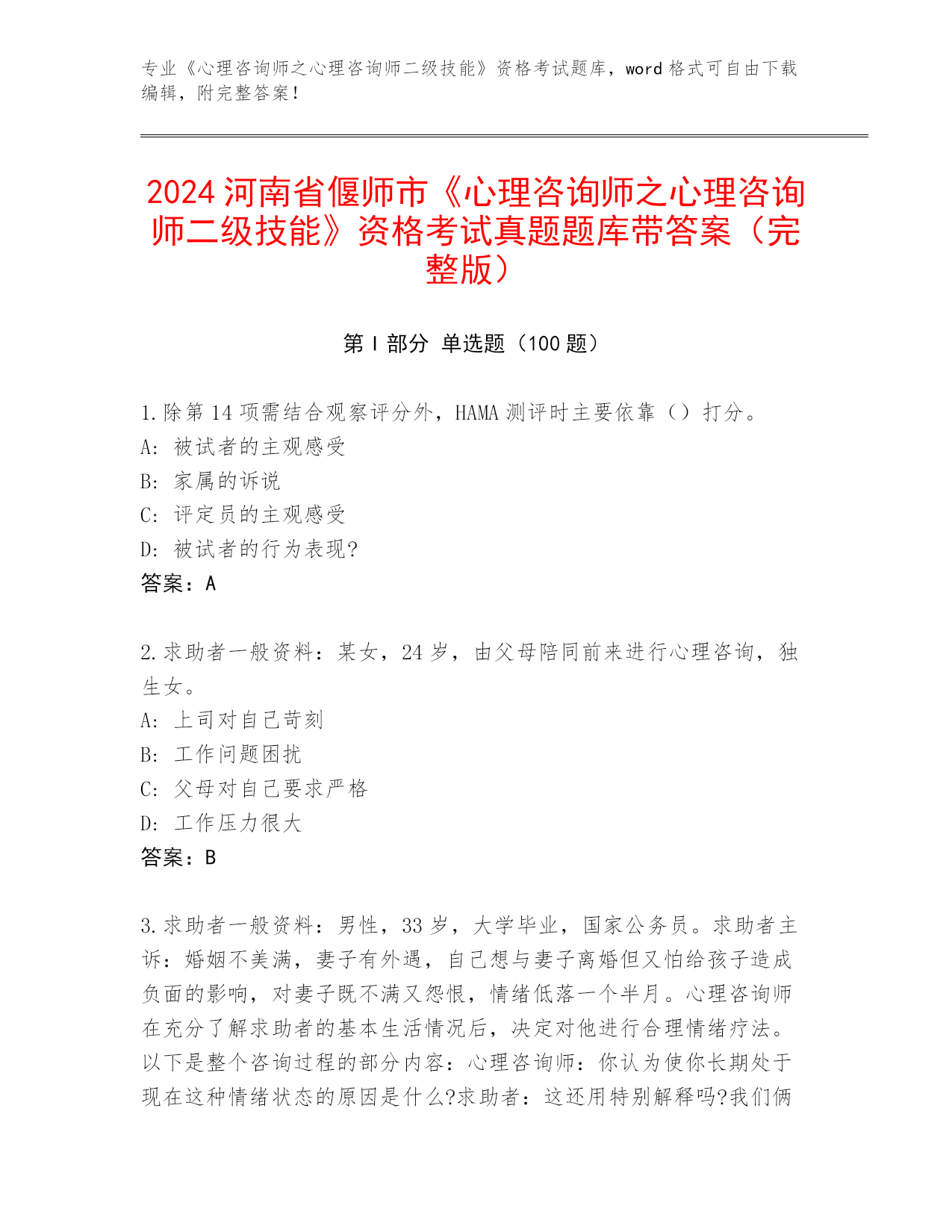 河南省殷都区2024年《心理咨询师之心理咨询师二级技能》资格考试真题题库【各地真题】