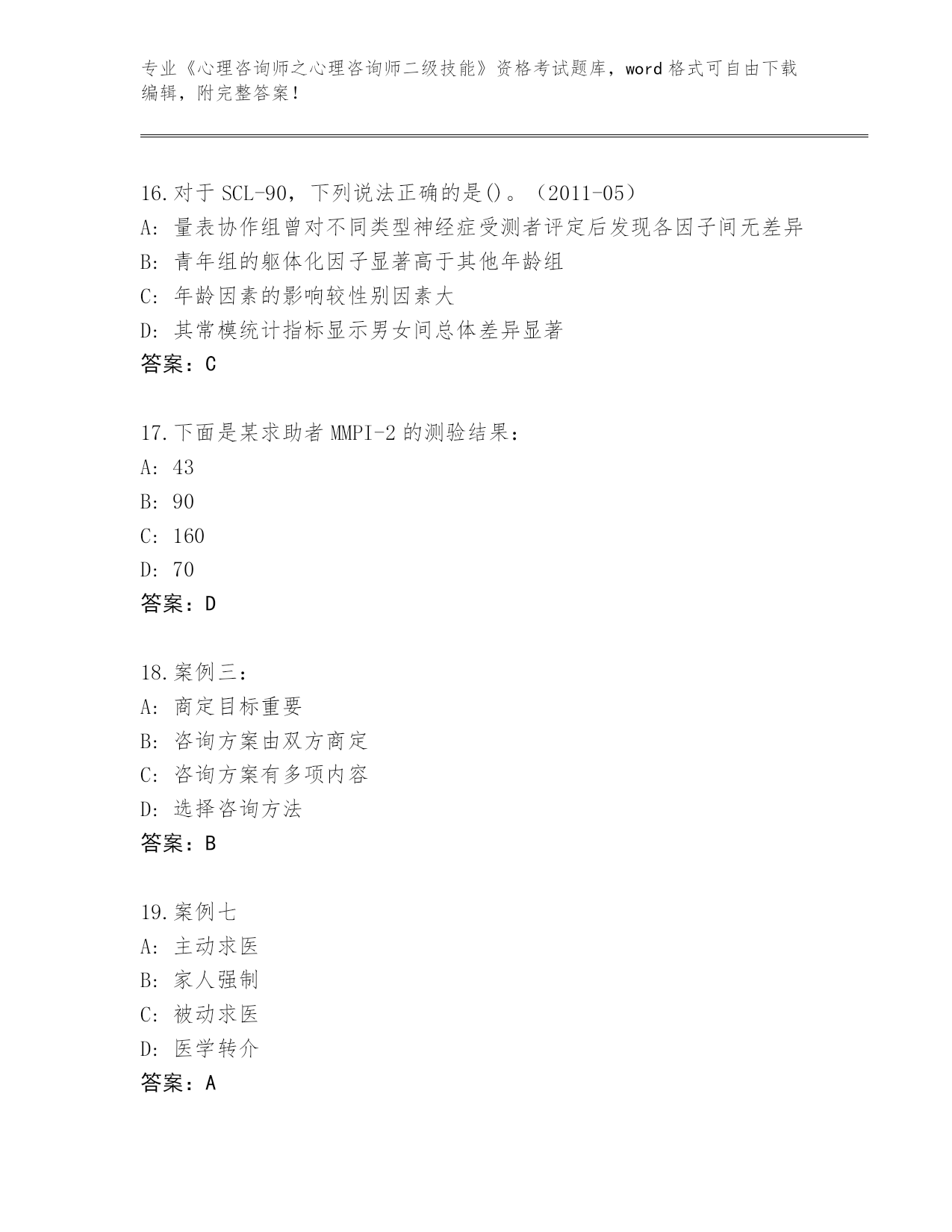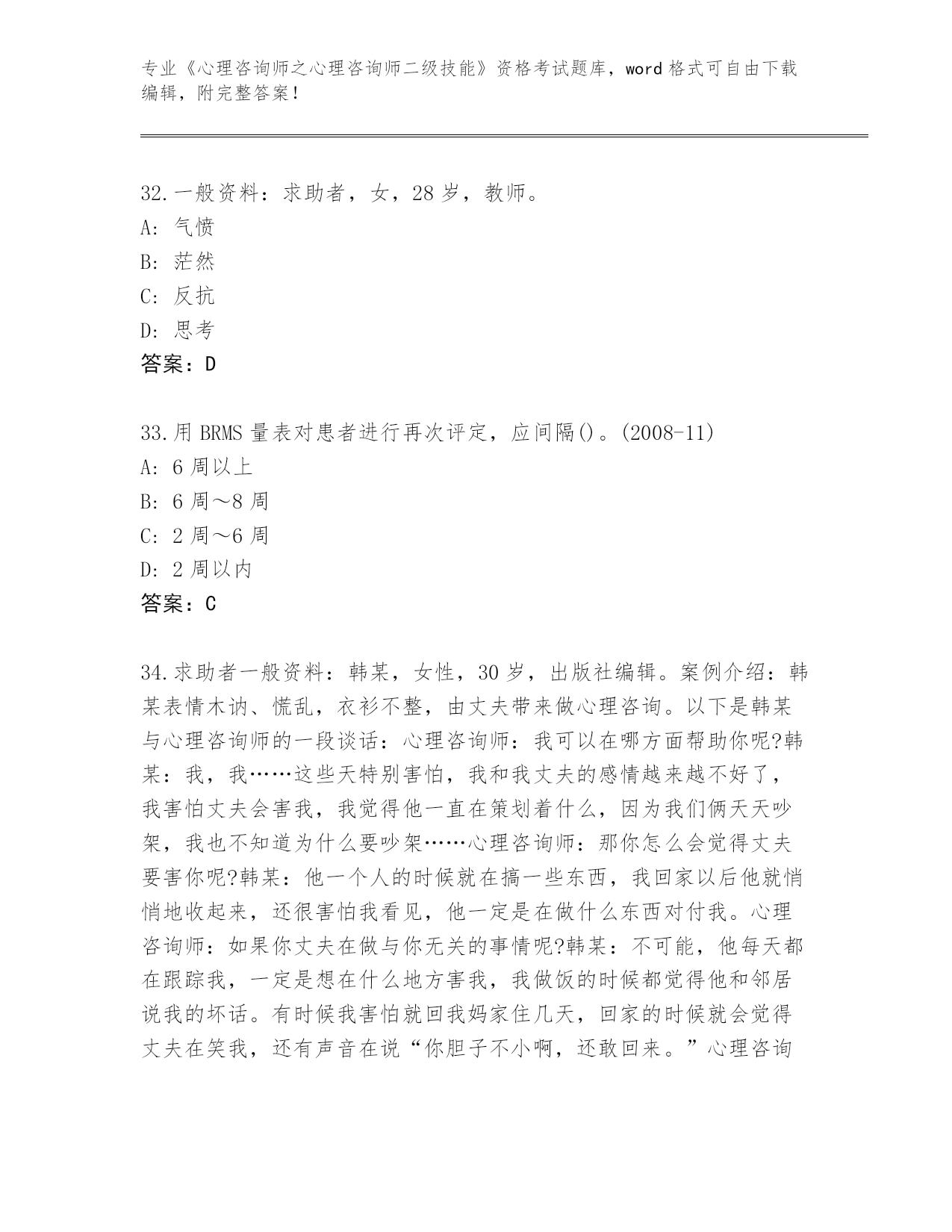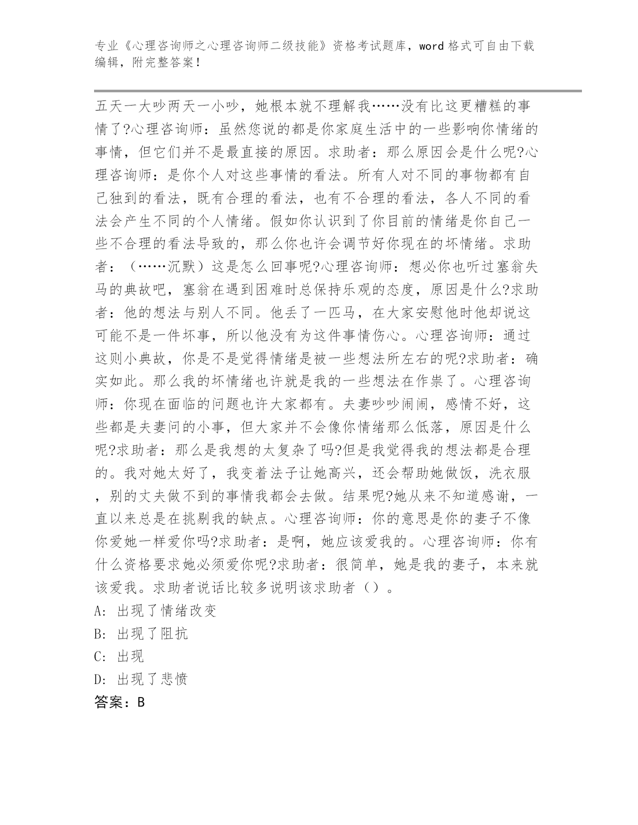 河南省整理《心理咨询师之心理咨询师二级技能》资格考试真题题库【实用】