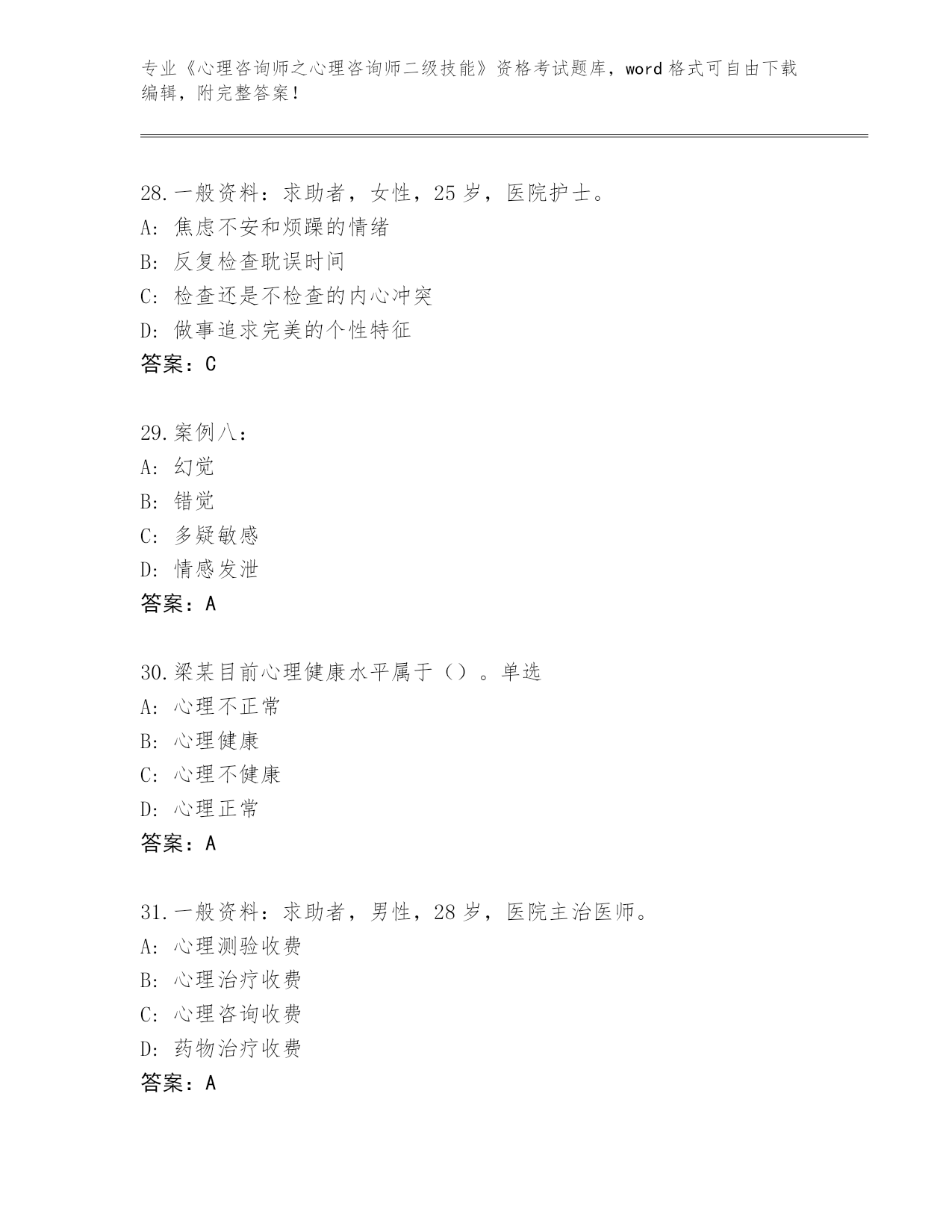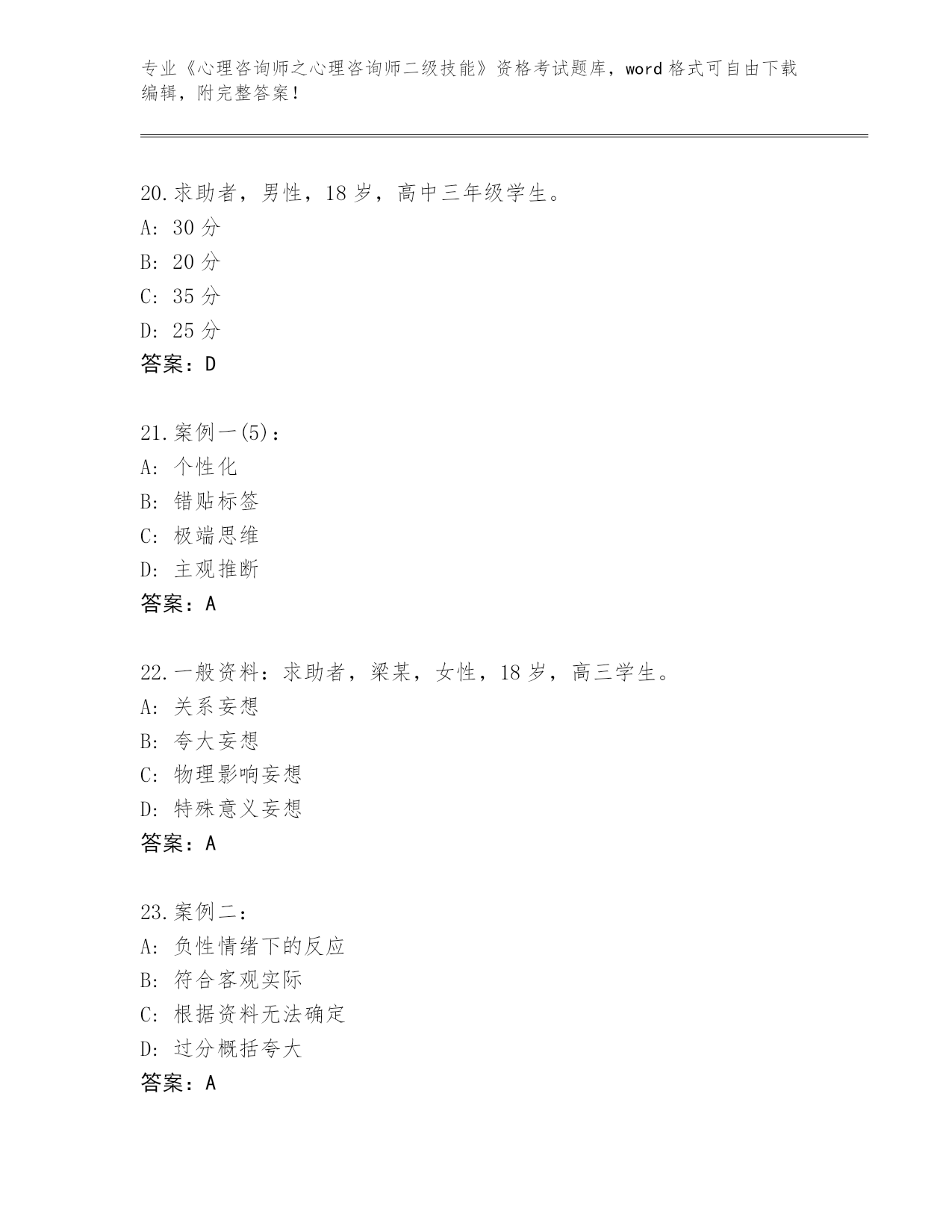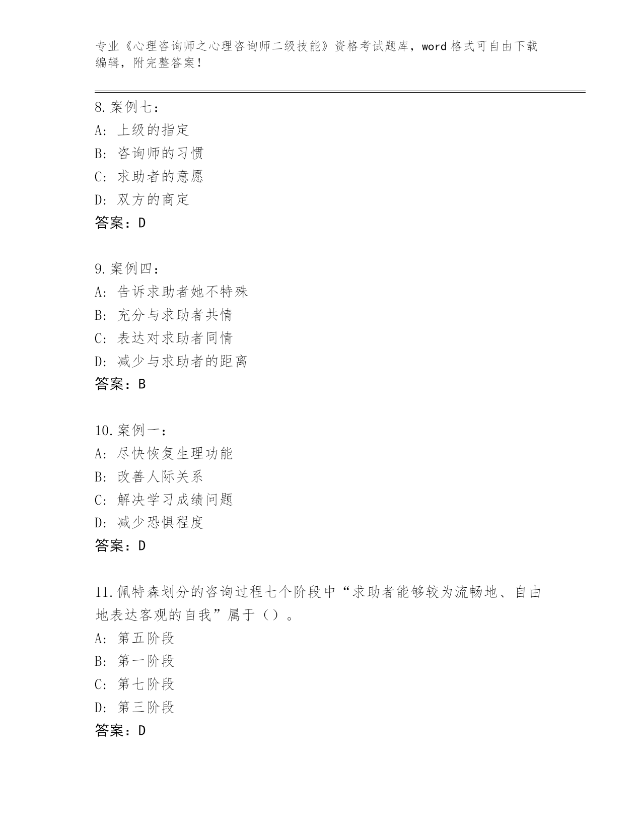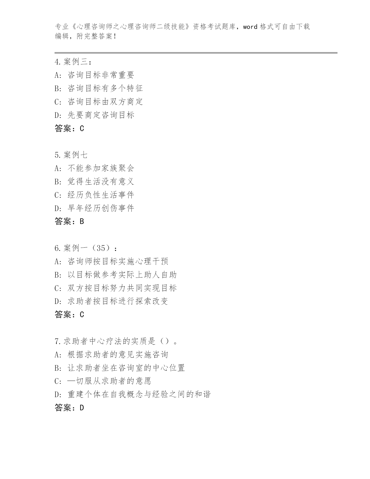 河南省整理《心理咨询师之心理咨询师二级技能》资格考试真题题库【实用】