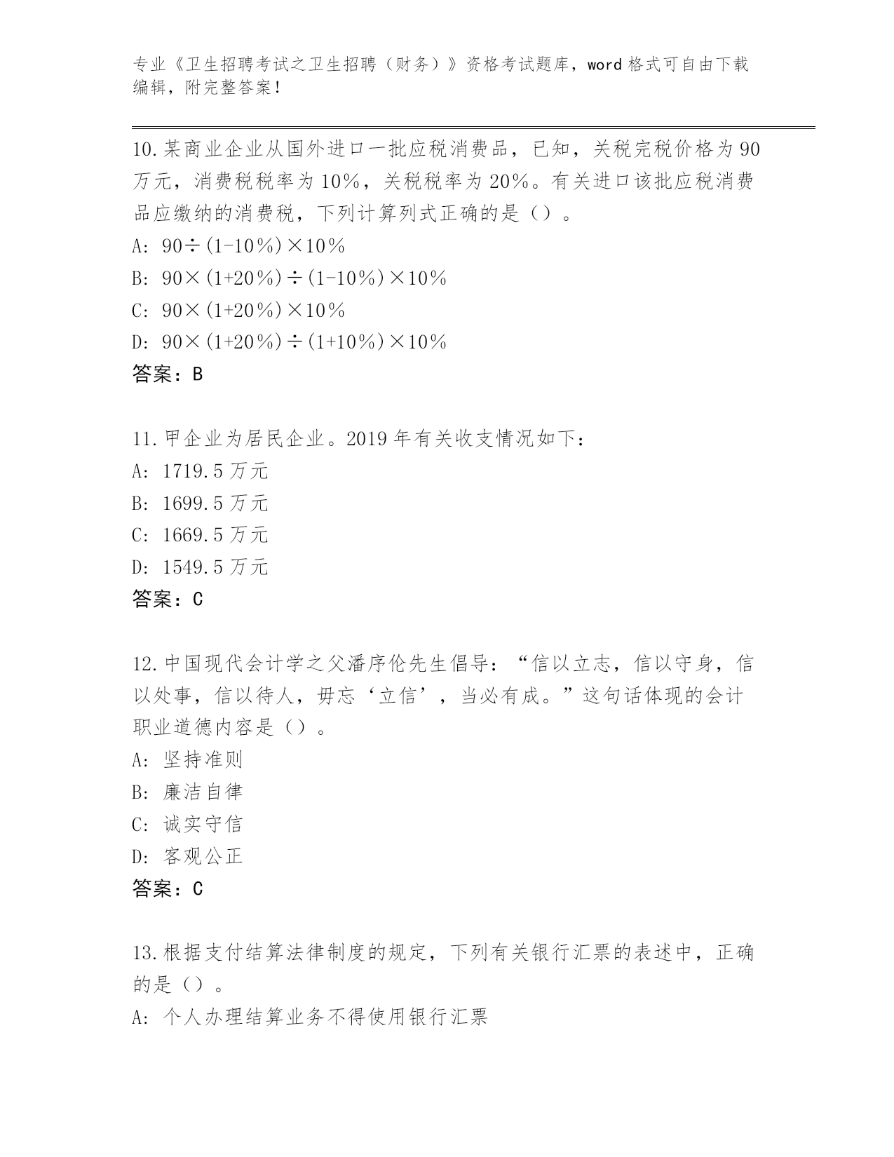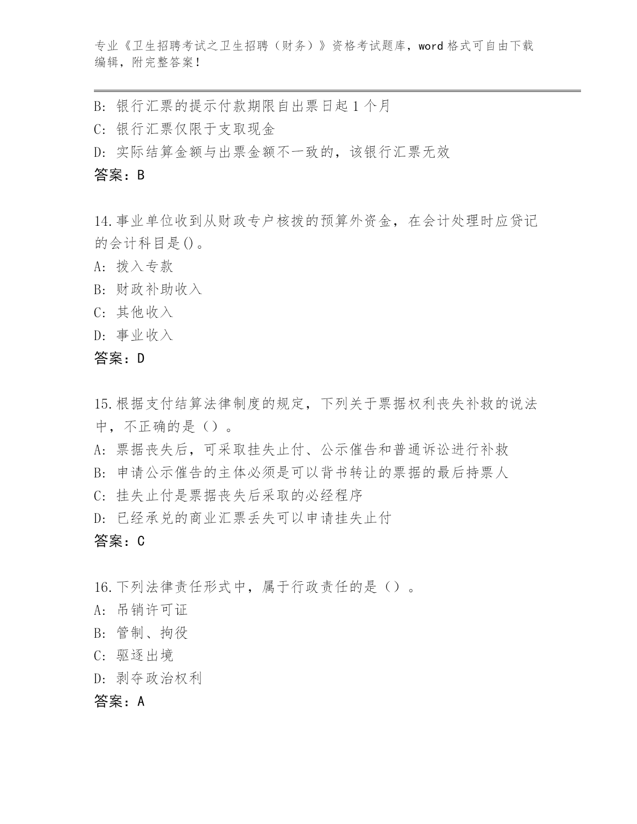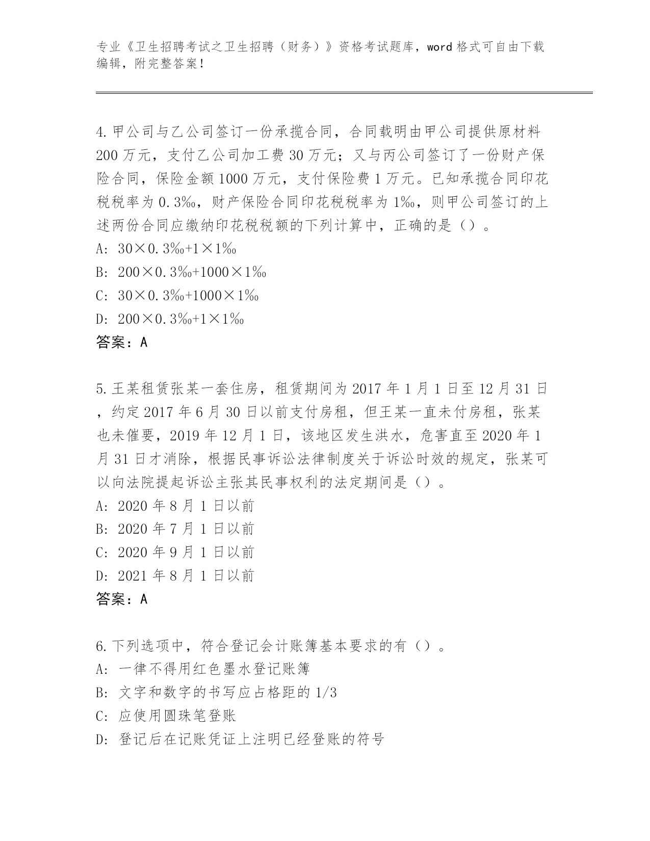 山东省《卫生招聘考试之卫生招聘(财务)》资格考试必背200题真题(考试直接用)