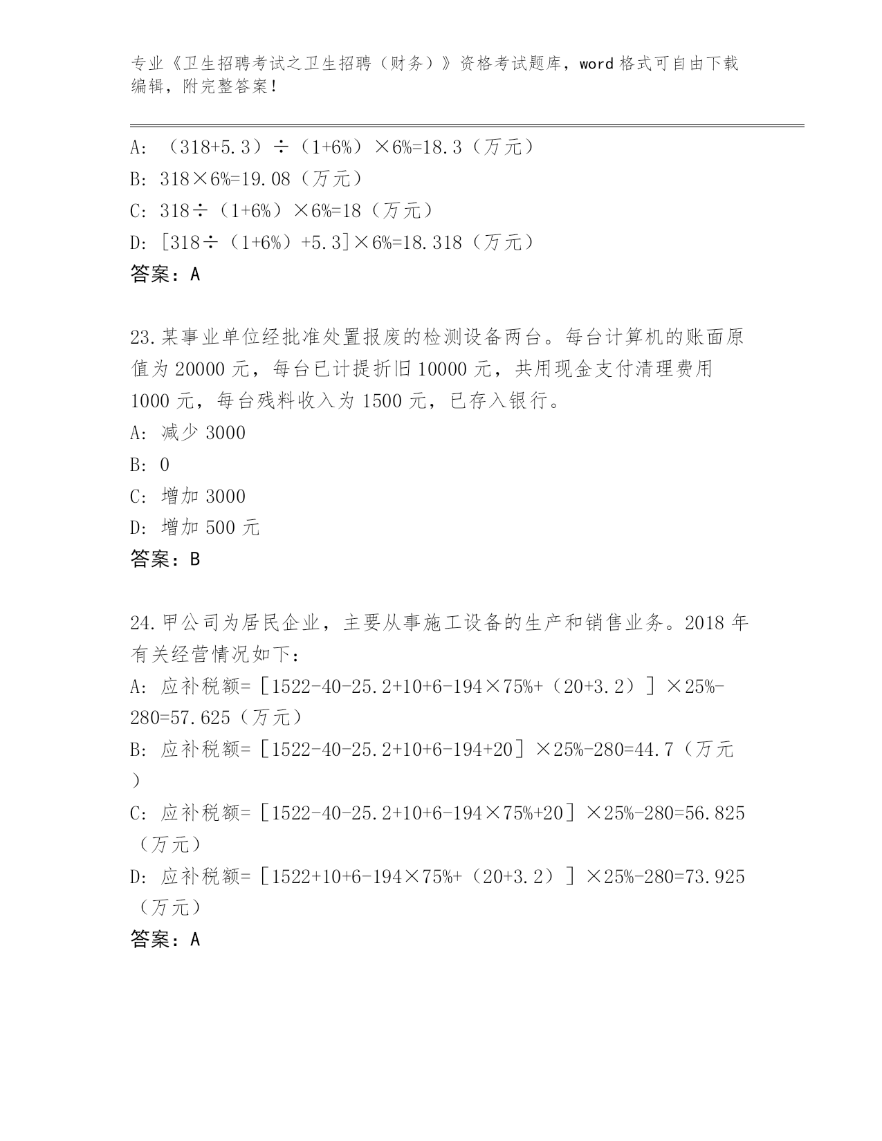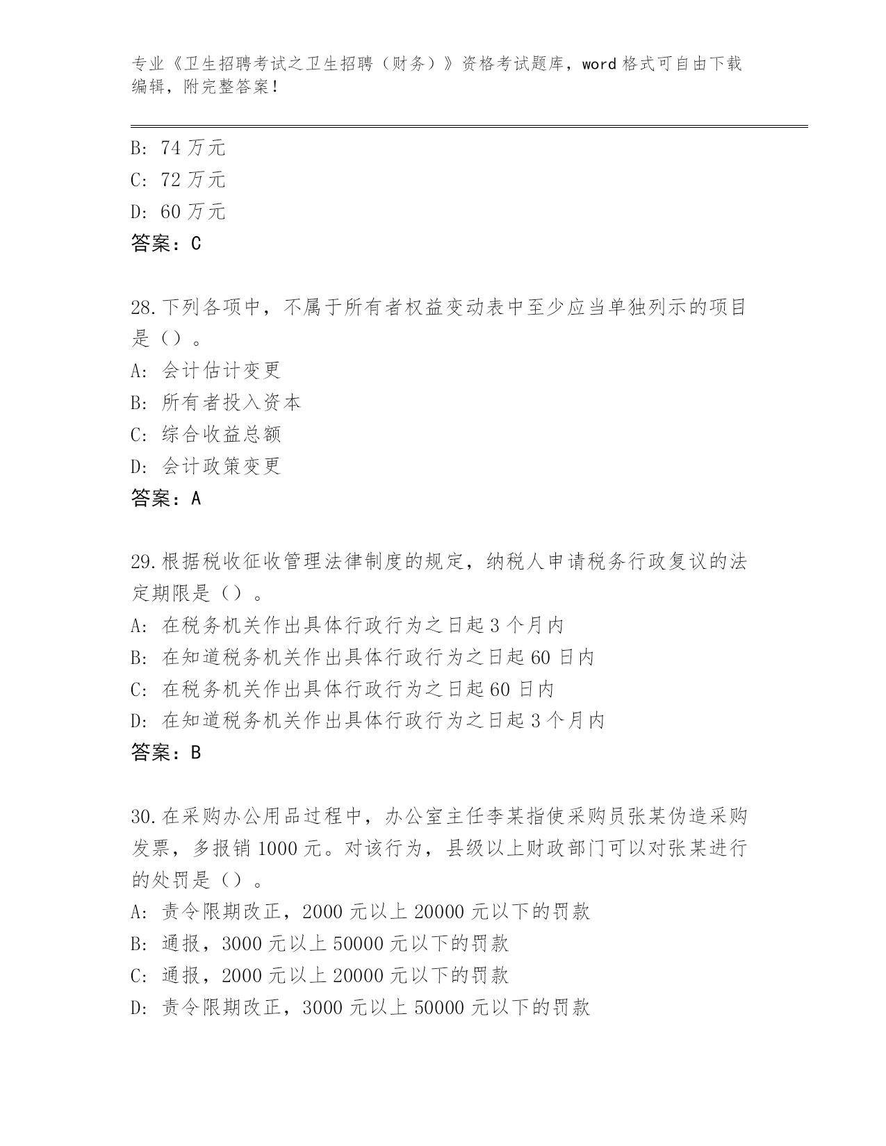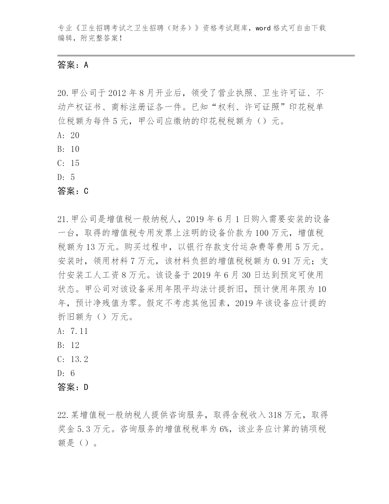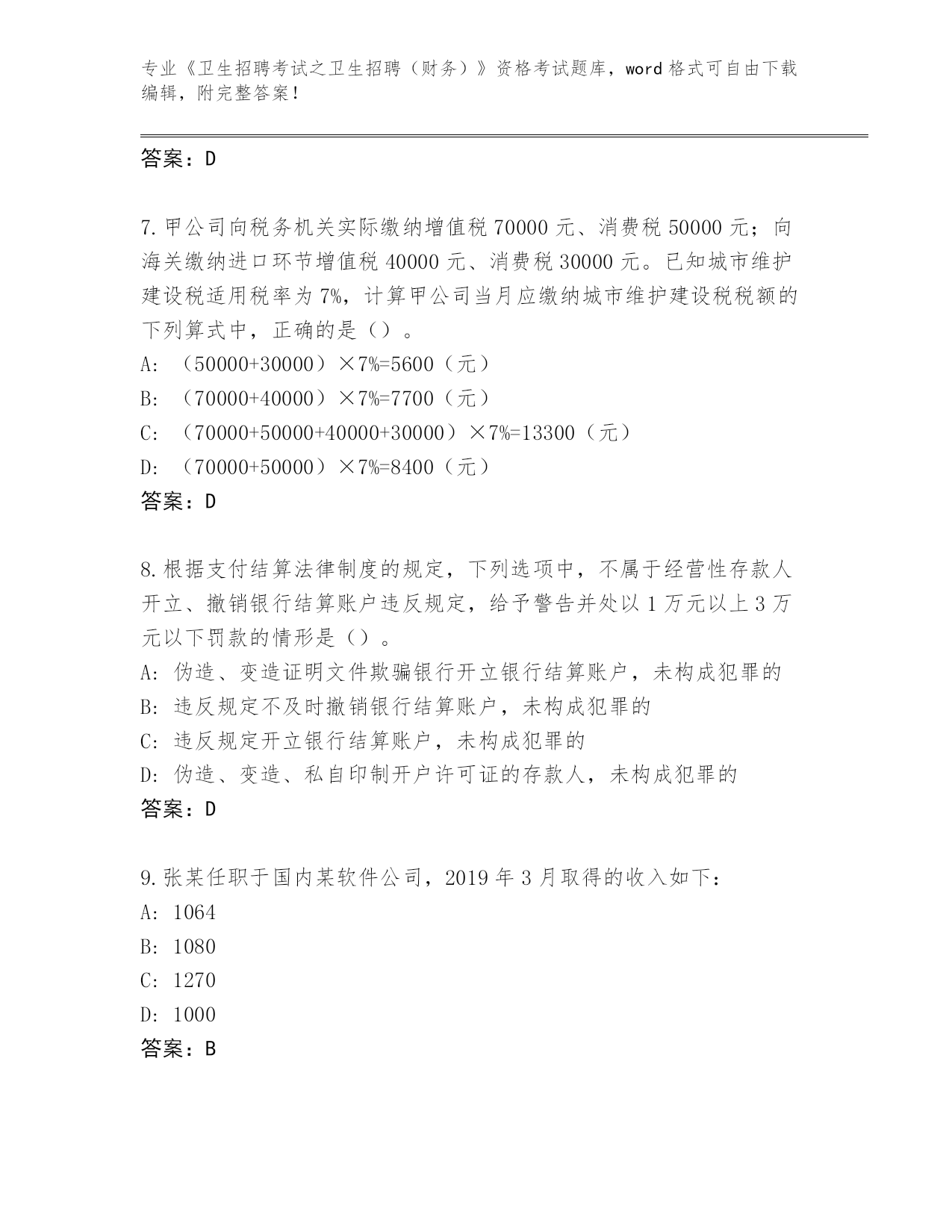 山东省《卫生招聘考试之卫生招聘(财务)》资格考试必背200题真题(考试直接用)