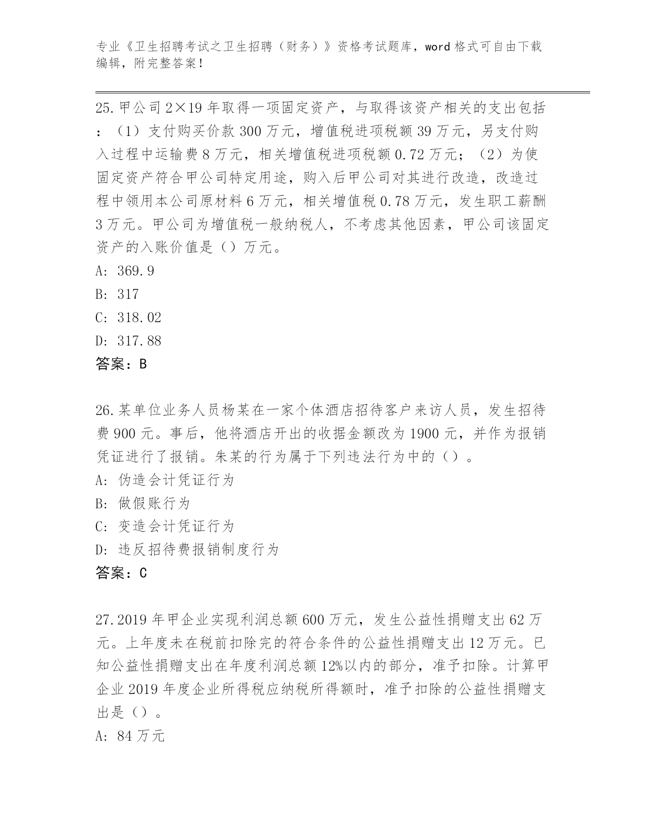 2024年江西省渝水区《卫生招聘考试之卫生招聘(财务)》资格考试【考试直接用】