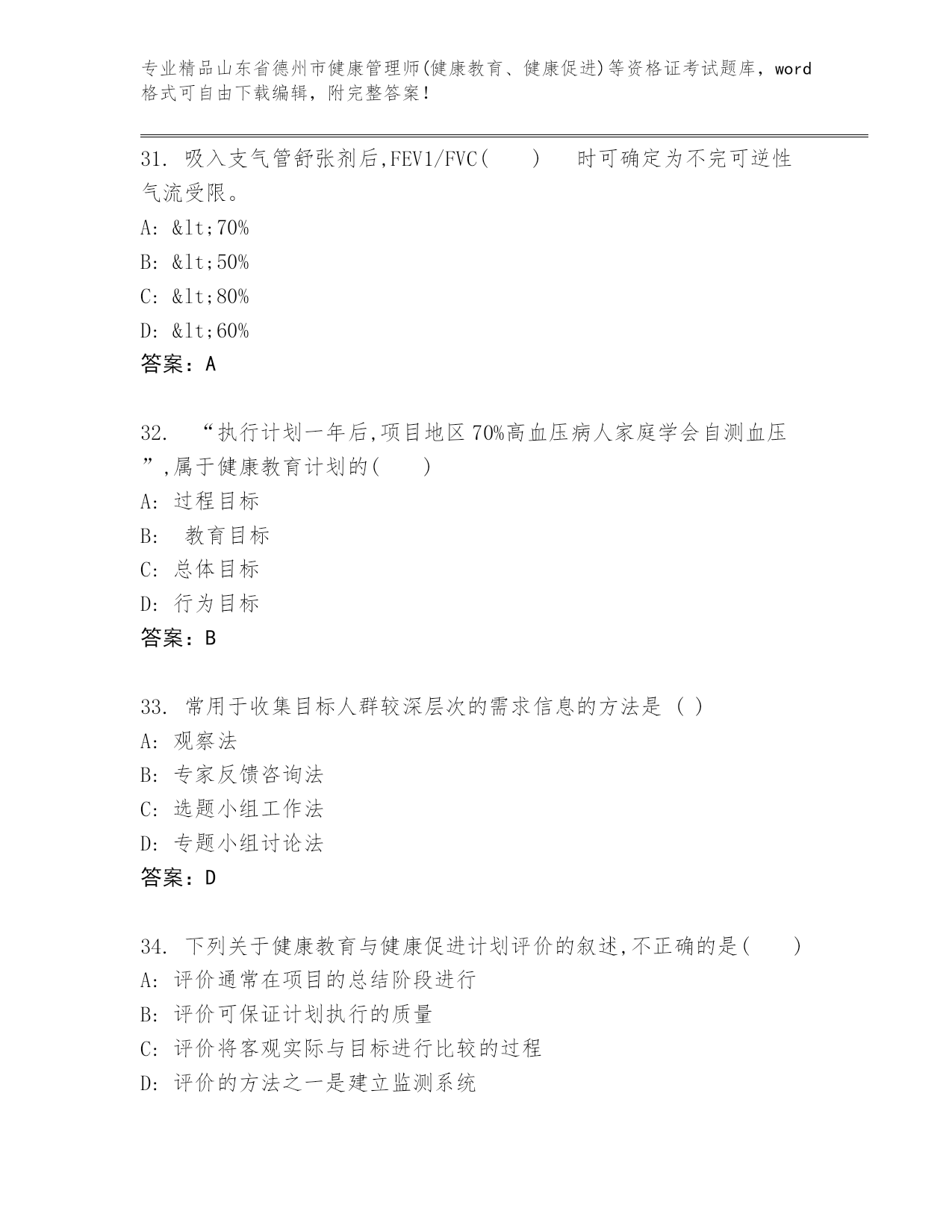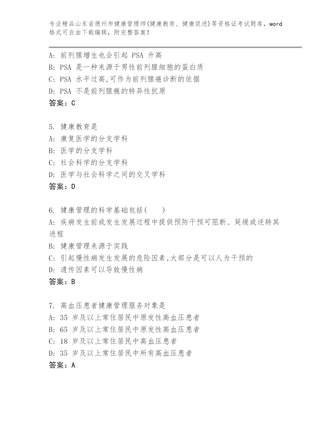完整版山东省德州市健康管理师(健康教育、健康促进)等资格证考试精品(巩固)