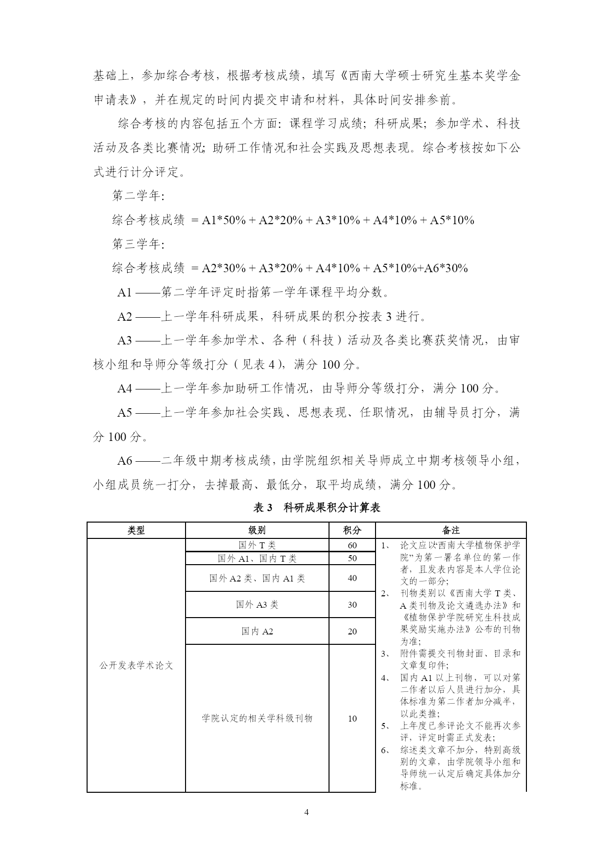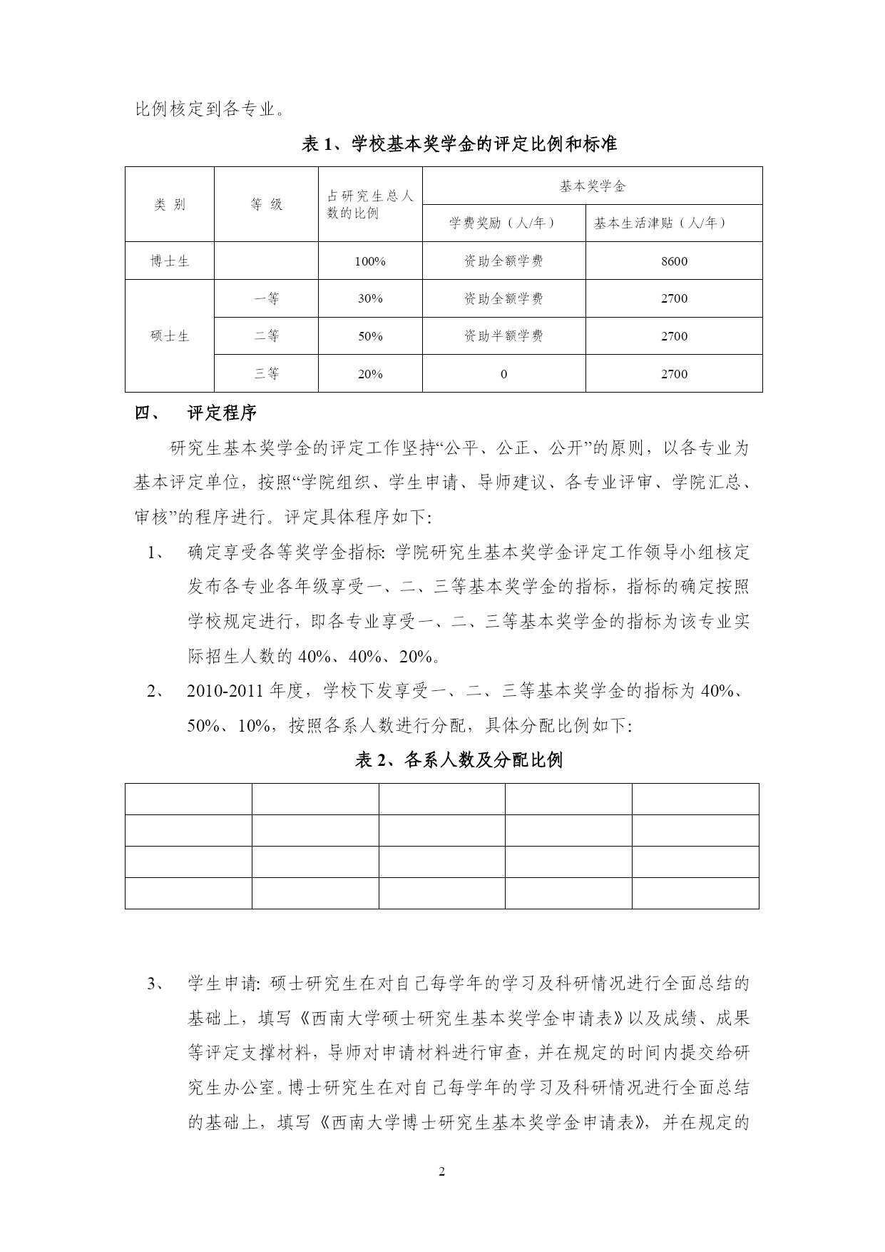 西南大学研究生基本奖学金评定实施办法(试行).doc