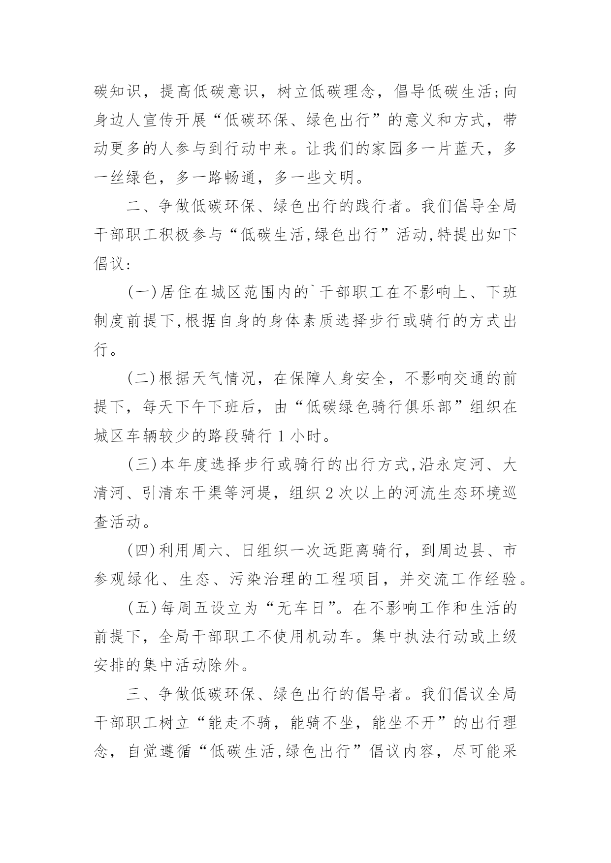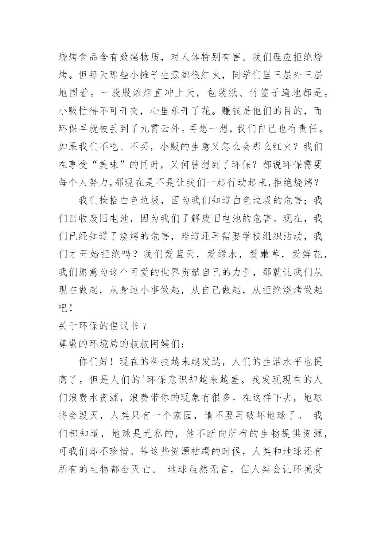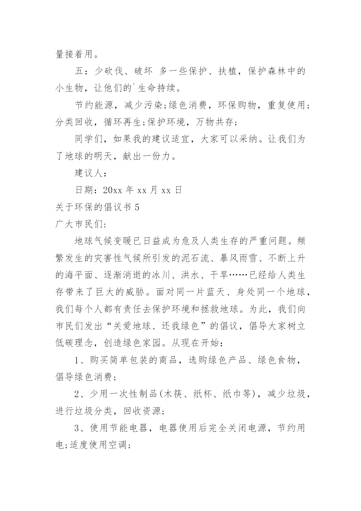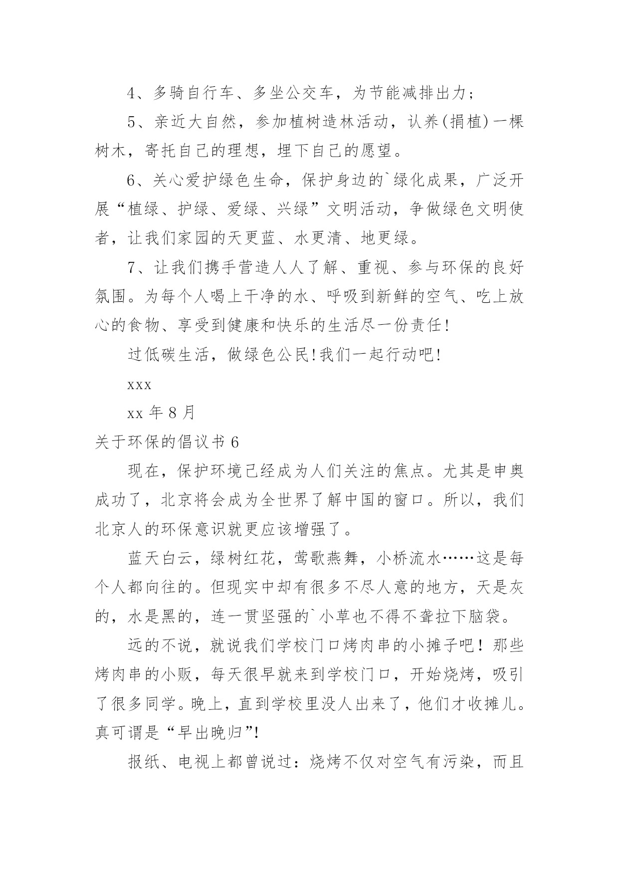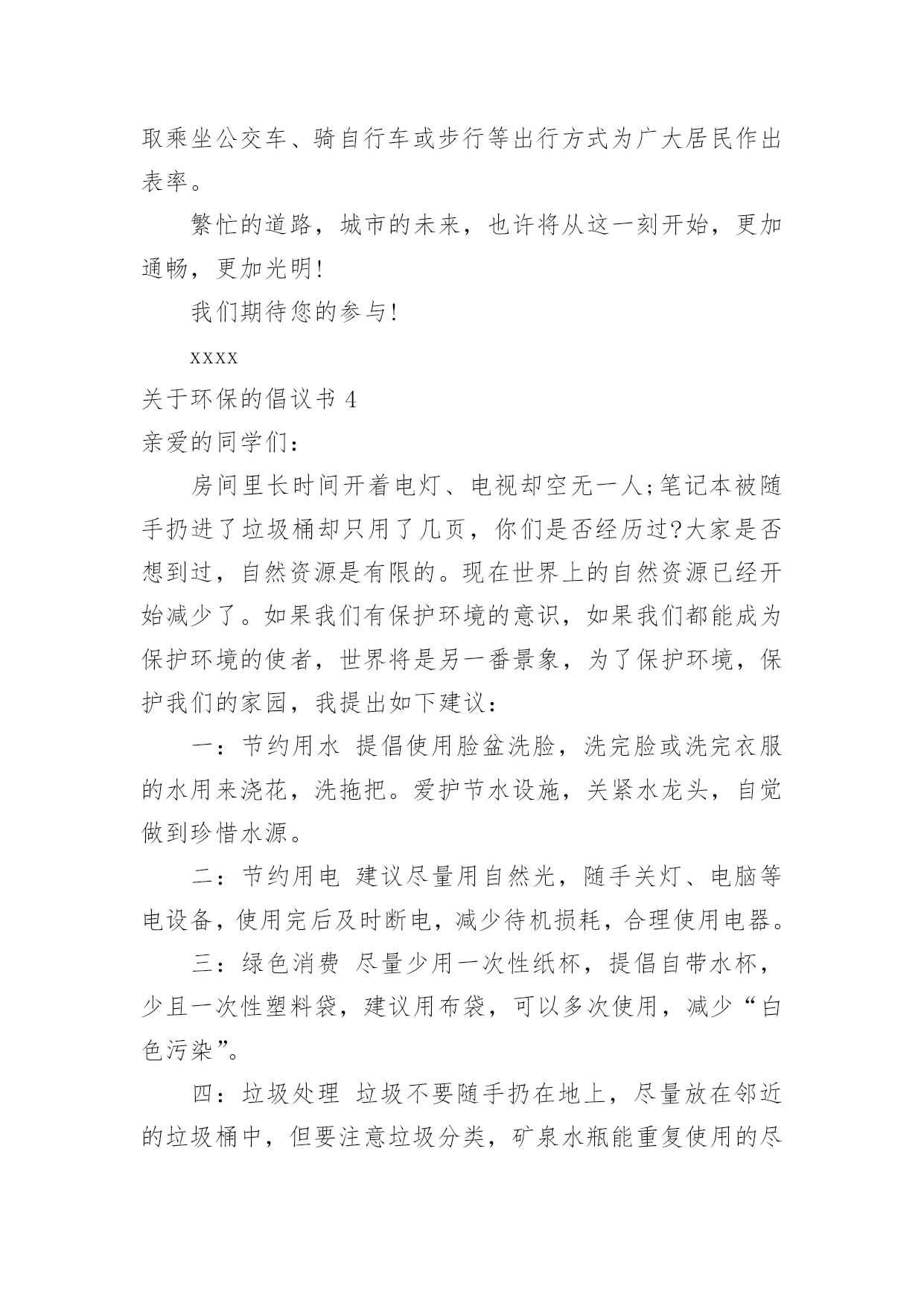 环保的倡议书关于环保的倡议书在不断进步的社会中,很多地方都会使用到倡议书,倡议书具有广泛的群众性的特征。那要怎么写好倡议书呢?以下是小编精心整理的关于环保的倡议书,仅供参考,欢迎大家阅读。关于环保的倡议书1各位同事:有效降低碳排放量,不仅仅仅是国际和国家的事情,为了我们的生存环境不再加速恶化,我们每一个地方、每一个部门、每一个人都就应用心行动起来,想尽一切办法减少碳排放量。长期以来的高碳排放,破坏了大气,破坏了自然生态系统,我们的`生存环境已经受到威胁。所以倡议大家:1.请尽量少乘电梯,多爬楼梯。员工平时工作去各楼层,请务必不乘电梯,使用楼梯,个性是相隔1、2个楼层的,步行上下楼梯,一方面锻炼身体,一方面节能环保。2.节约用电。员工下班请随手关掉各种电器电源;各独立办公室使用人离开时请及时关掉电灯和空调;冬、夏两个空调季节,出入办公区域请随手关门,减少电能的浪费;3.节约用纸。平时复印和打印请尽量使用二手纸,多用电邮、msn等即时通讯工具,最好少使用传真机和打印机;各级各部门尽量少使用纸质文件,只下发电子文档。各楼层的洗手间的擦手纸、卫生纸请务必合理使用,杜绝浪费,保护森林、保护环境;4.节约用水。在茶水间的水斗用完水,确保龙头完全关掉后离开;请大家用心响应倡议资料,从我做起,保护环境,节约资源,善待地球。华东总经办20xx年11月8日关于环保的倡议书2县长叔叔:您好!我是长庆一小的一名小学生,近几年来,全世界的生态环境不断恶化。就拿我们小区来说吧,几年前,在我们小区的清晨走到哪儿都可以听见鸟儿婉转的啼叫,花丛里的小树下面,每天都可以看见新鲜的鸟便,但是,几年过去,这样的景观却一天天的在消失,每天早上当你漫步在花丛旁边时,只能听见零星的几只鸟儿在啼叫了,树下的鸟便就更不用说了。几年前,在小区的凤园里,清澈的小湖一望见底,潺潺的流水声悄悄的溜进了你的耳畔。遥望湖水之中,一朵朵荷花在水上婷婷玉立,不时的`会从下面蹦上几条小鱼,但是现在再也看不到婷婷玉立的荷花和小鱼了,湖面上到是多了很多烟头和纸屑......真是不堪入目。这几年,随着人们生活水平的提高,人们的环保意识也不断淡化。人们为了图一时之利乱砍乱伐树木,使鸟儿无家可归,在公园的草坪中,湖水中乱扔垃圾使凤园环境恶化,这一桩桩,一件件由于环保意识所引发的自然灾害,难道还不能使人们反省吗?所以,我建议县长叔叔,多做一些关于环保的宣传,加强人们的环保意识,还要在公园内多贴一些标语,提醒那些环保意识差的人,最好可以在公园内多安放一些垃圾桶,这样才能使我们的家园变得更加美好!让地球更好的造福人类吧.签名:日期:关于环保的倡议书3各位市民朋友们:低碳环保、绿色出行,减少碳排放是节能、环保、绿色、生态、健康的一种生活方式,是改善我们的生活环境,享受美好人生的一种愿望。为了我们xxx更加靓丽,为了我们生活更加幸福、环境更加美好,我们向全局干部职工倡议:一、争做低碳环保、绿色出行的宣传者。低碳生活无处不在、无处不有。我们倡议全局干部职工学习掌握、宣传低碳知识,提高低碳意识,树立低碳理念,倡导低碳生活;向身边人宣传开展“低碳环保、绿色出行”的意义和方式,带动更多的人参与到行动中来。让我们的家园多一片蓝天,多一丝绿色,多一路畅通,多一些文明。二、争做低碳环保、绿色出行的践行者。我们倡导全局干部职工积极参与“低碳生活,绿色出行”活动,特提出如下倡议:(一)居住在城区范围内的`干部职工在不影响上、下班制度前提下,根据自身的身体素质选择步行或骑行的方式出行。(二)根据天气情况,在保障人身安全,不影响交通的前提下,每天下午下班后,由“低碳绿色骑行俱乐部”组织在城区车辆较少的路段骑行1小时。(三)本年度选择步行或骑行的出行方式,沿永定河、大清河、引清东干渠等河堤,组织2次以上的河流生态环境巡查活动。(四)利用周六、日组织一次远距离骑行,到周边县、市参观绿化、生态、污染治理的工程项目,并交流工作经验。(五)每周五设立为“无车日”。在不影响工作和生活的前提下,全局干部职工不使用机动车。集中执法行动或上级安排的集中活动除外。三、争做低碳环保、绿色出行的倡导者。我们倡议全局干部职工树立“能走不骑,能骑不坐,能坐不开”的出行理念,自觉遵循“低碳生活,绿色出行”倡议内容,尽可能采取乘坐公交车、骑自行车或步行等出行方式为广大居民作出表率。繁忙的道路,城市的未来,也许将从这一刻开始,更加通畅,更加光明!我们期待您的参与!xxxx关于环保的倡议书4亲爱的同学们:房间里长时间开着电灯、电视却空无一人;笔记本被随手扔进了垃圾桶却只用了几页,你们是否经历过?大家是否想到过,自然资源是有限的。现在世界上的自然资源已经开始减少了。如果我们有保护环境的意识,如果我们都能成为保护环境的使者,世界将是另一番景象,为了保护环境,保护我们的家