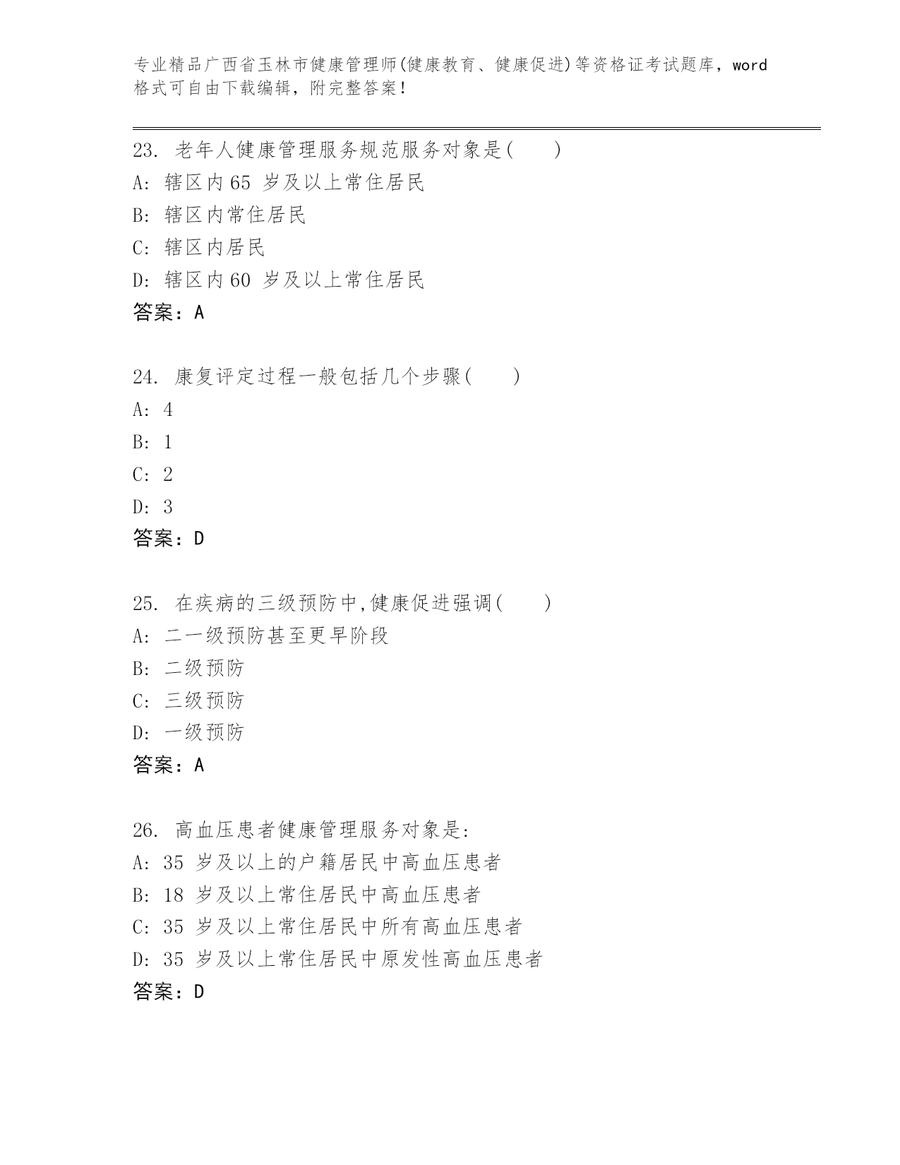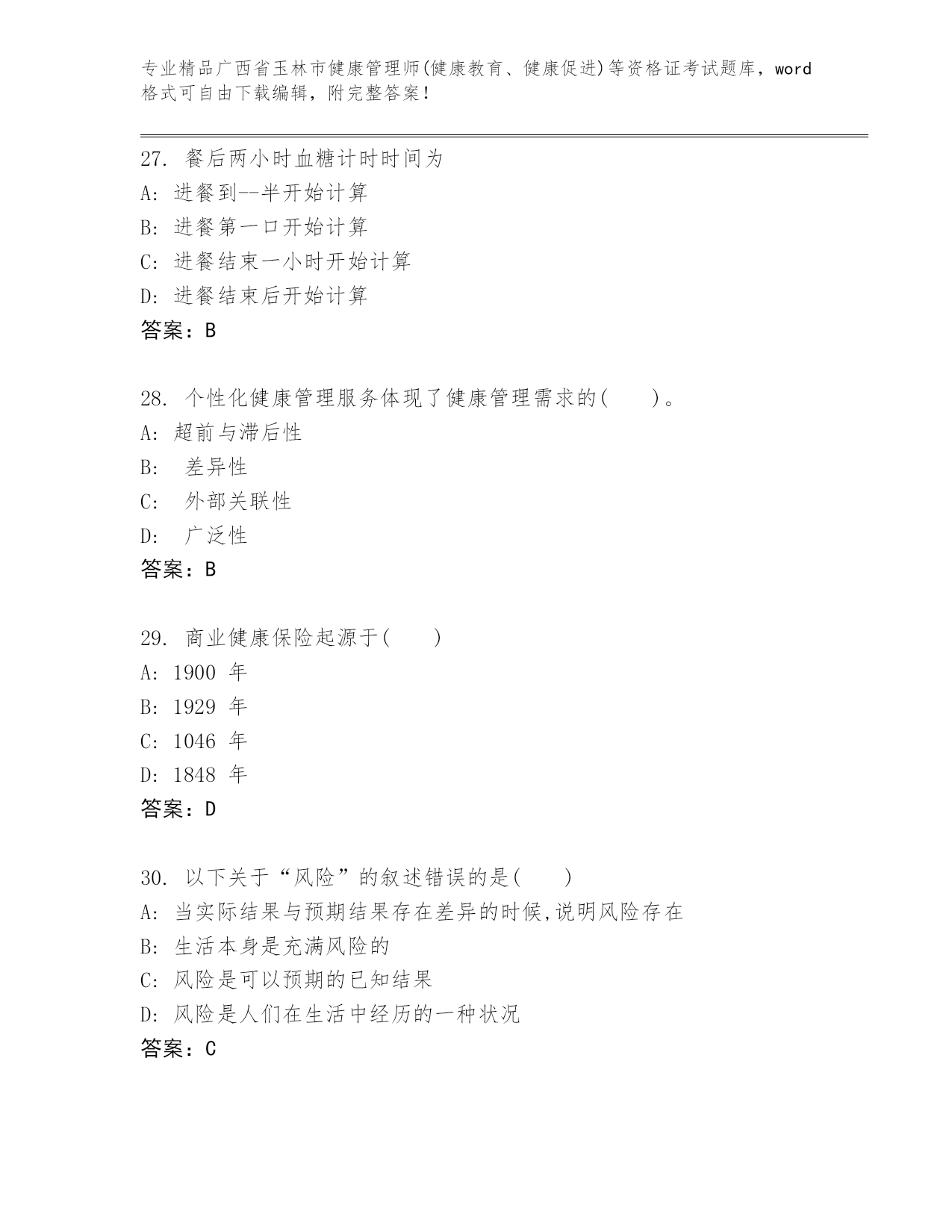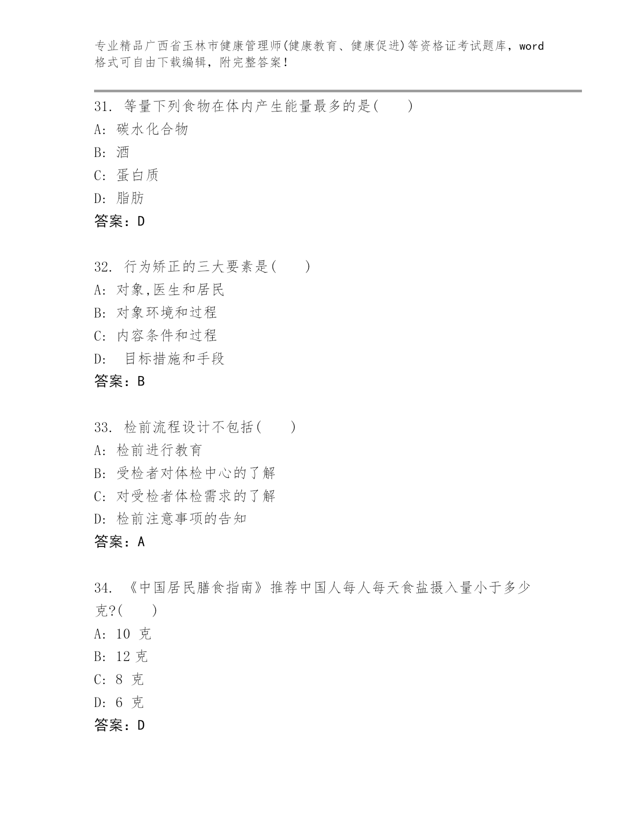 最新广西省玉林市健康管理师(健康教育、健康促进)等资格证考试含答案解析