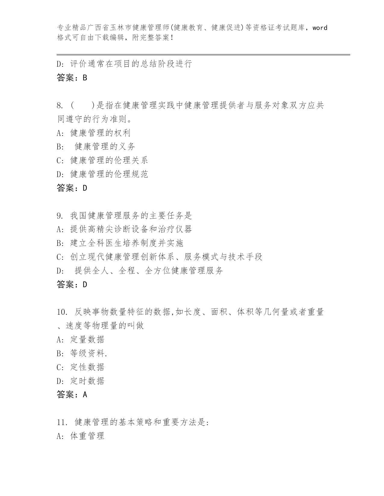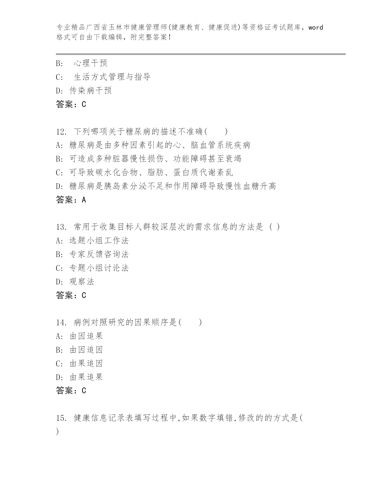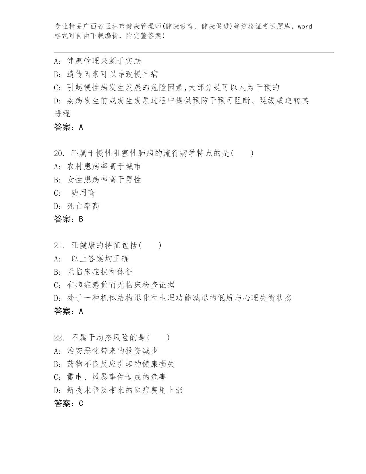 最新广西省玉林市健康管理师(健康教育、健康促进)等资格证考试含答案解析
