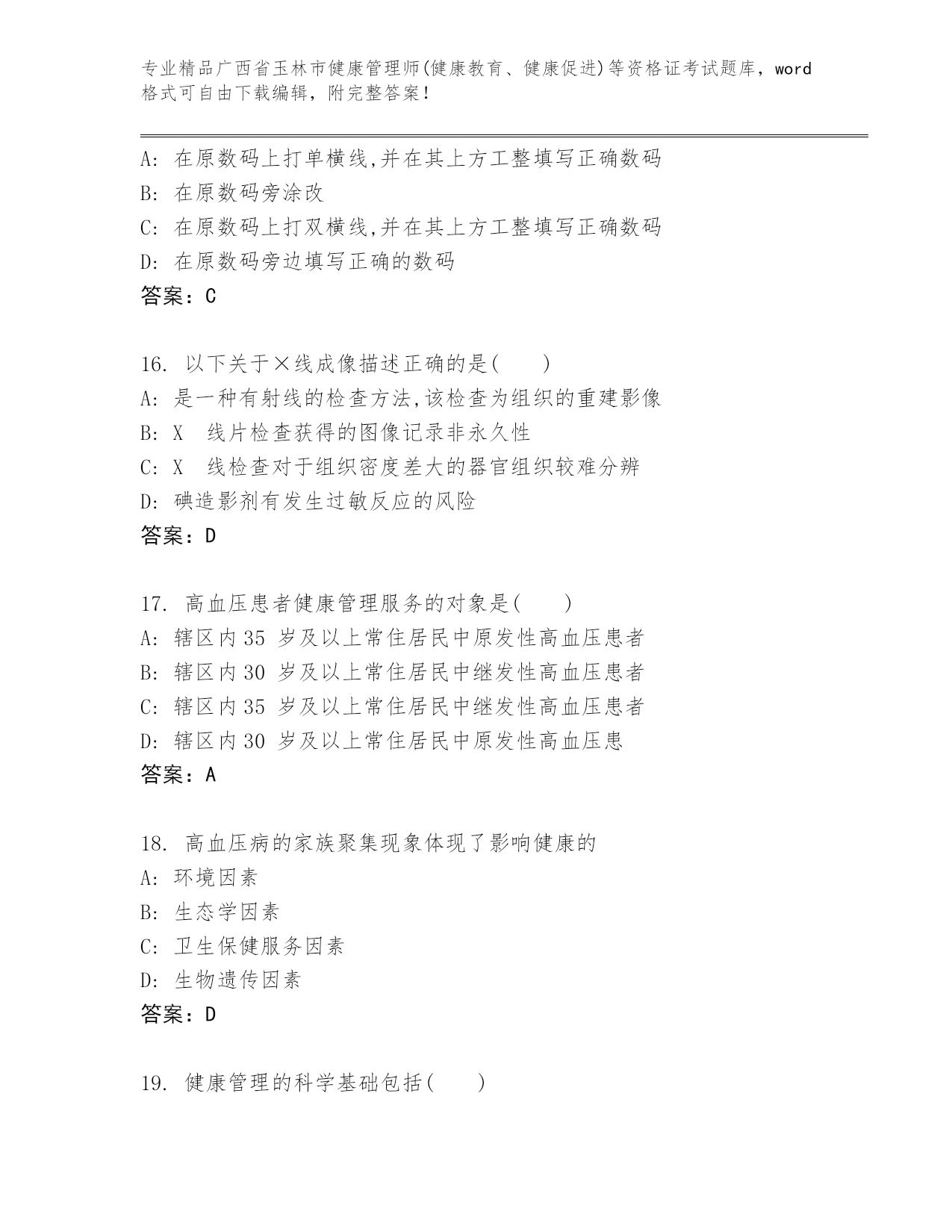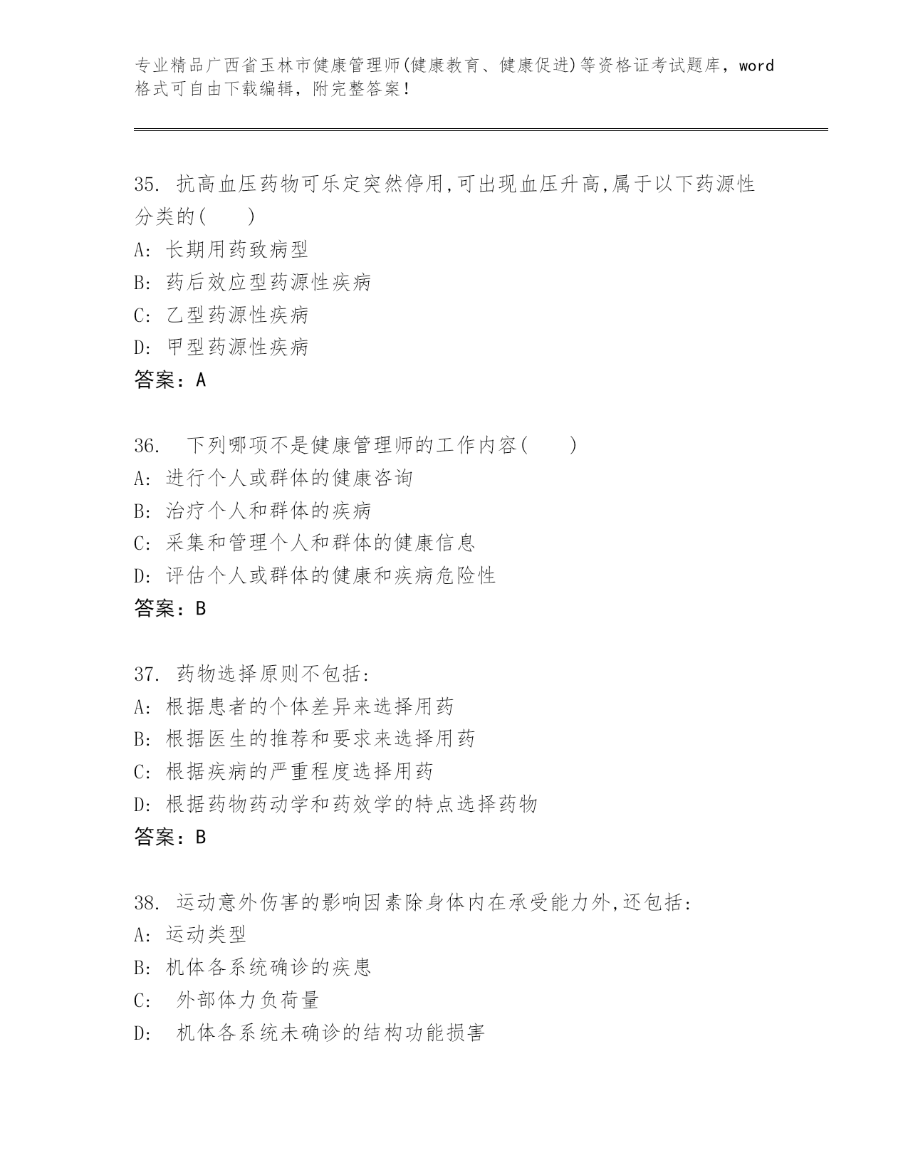 最新广西省玉林市健康管理师(健康教育、健康促进)等资格证考试含答案解析.docx
