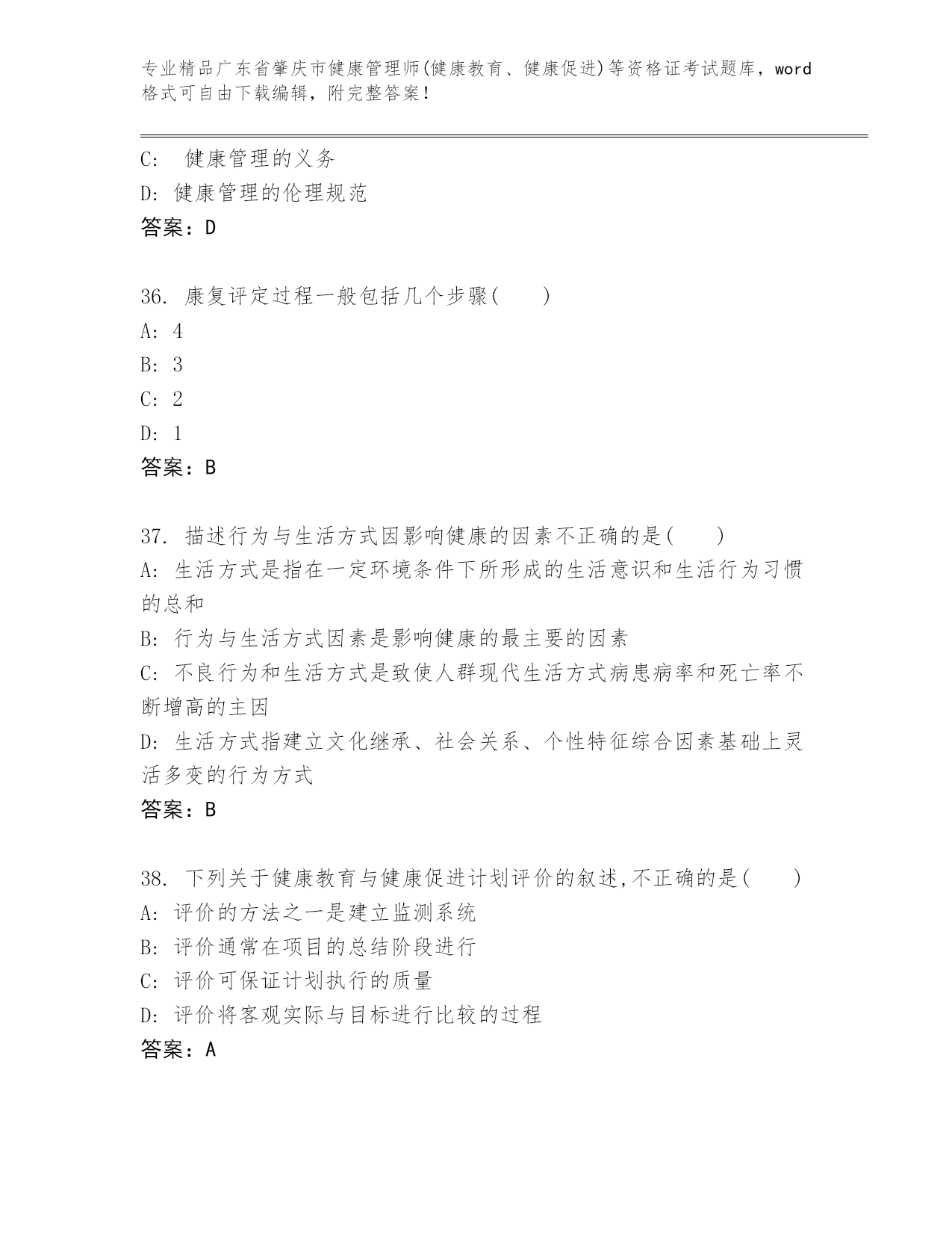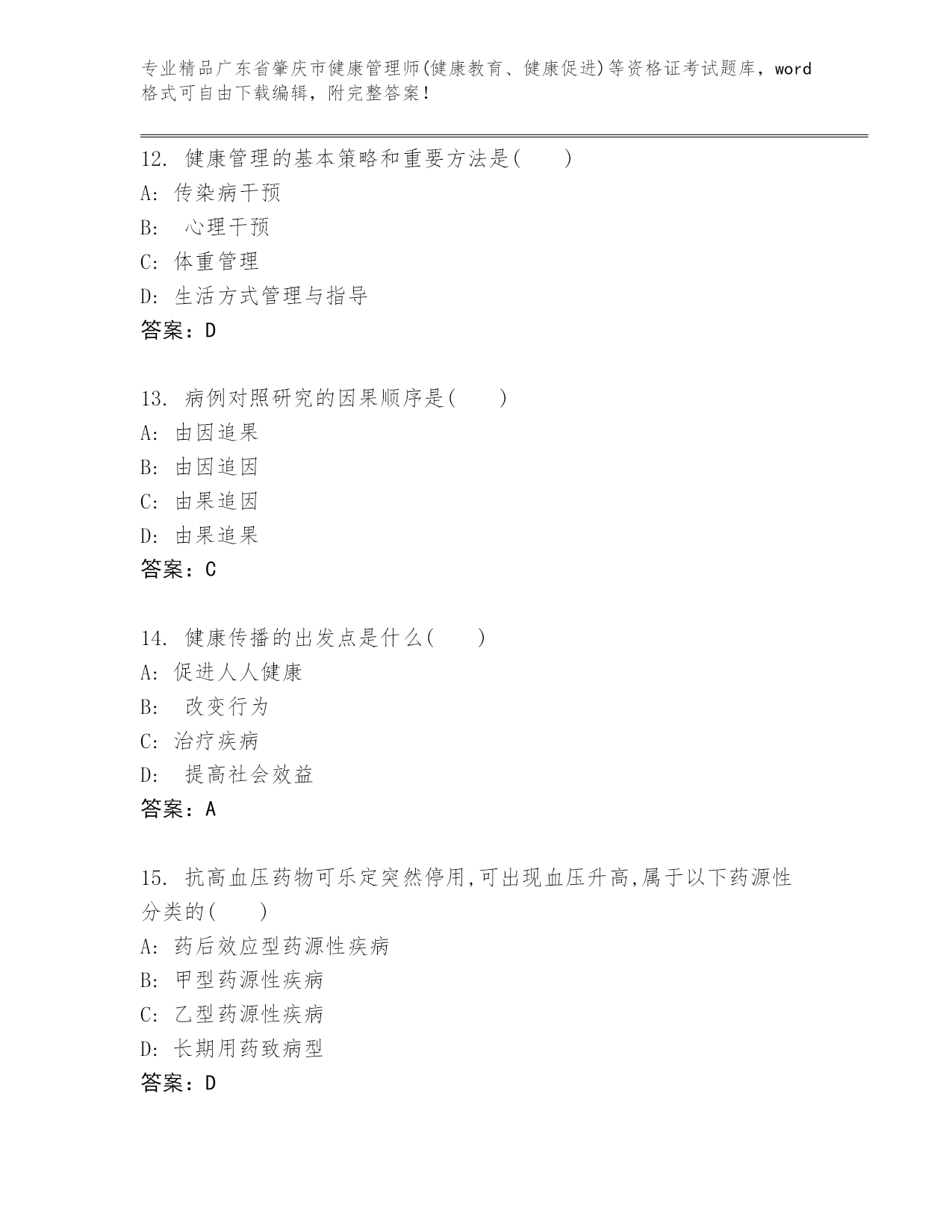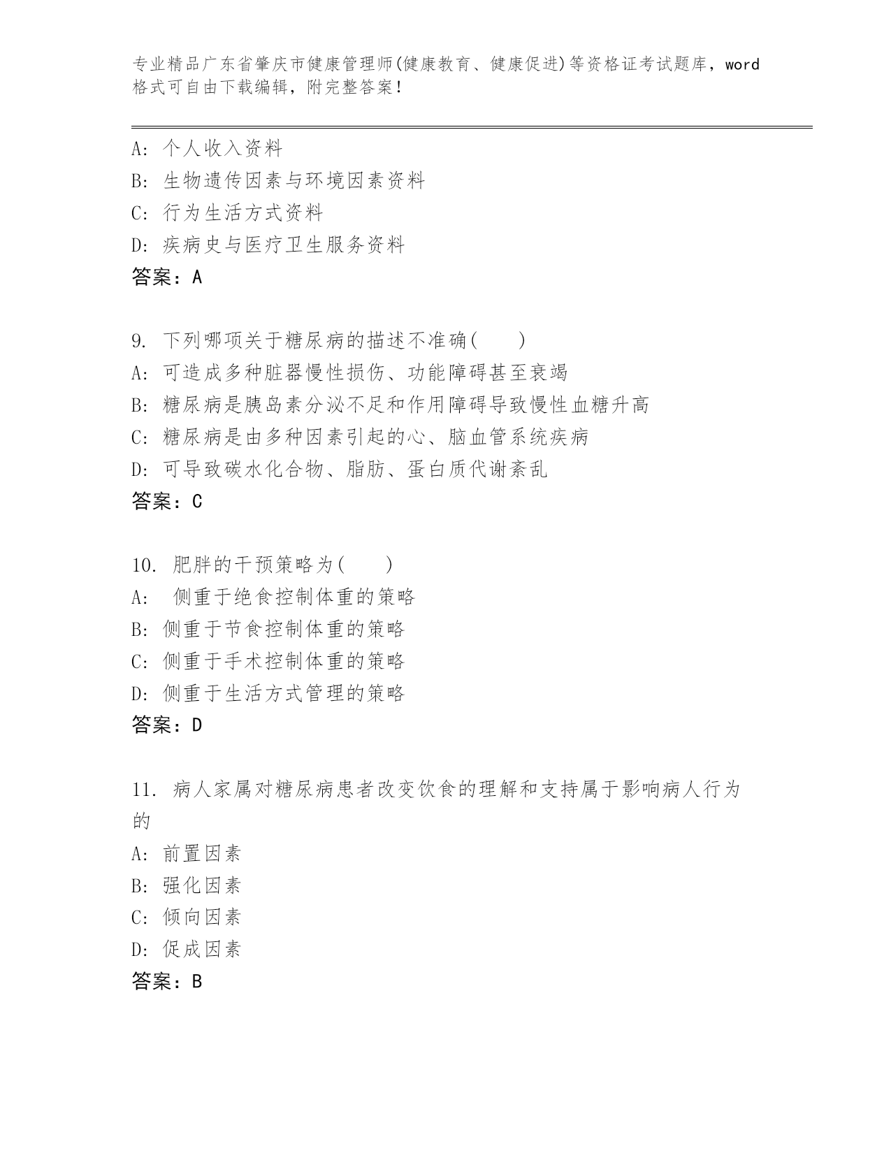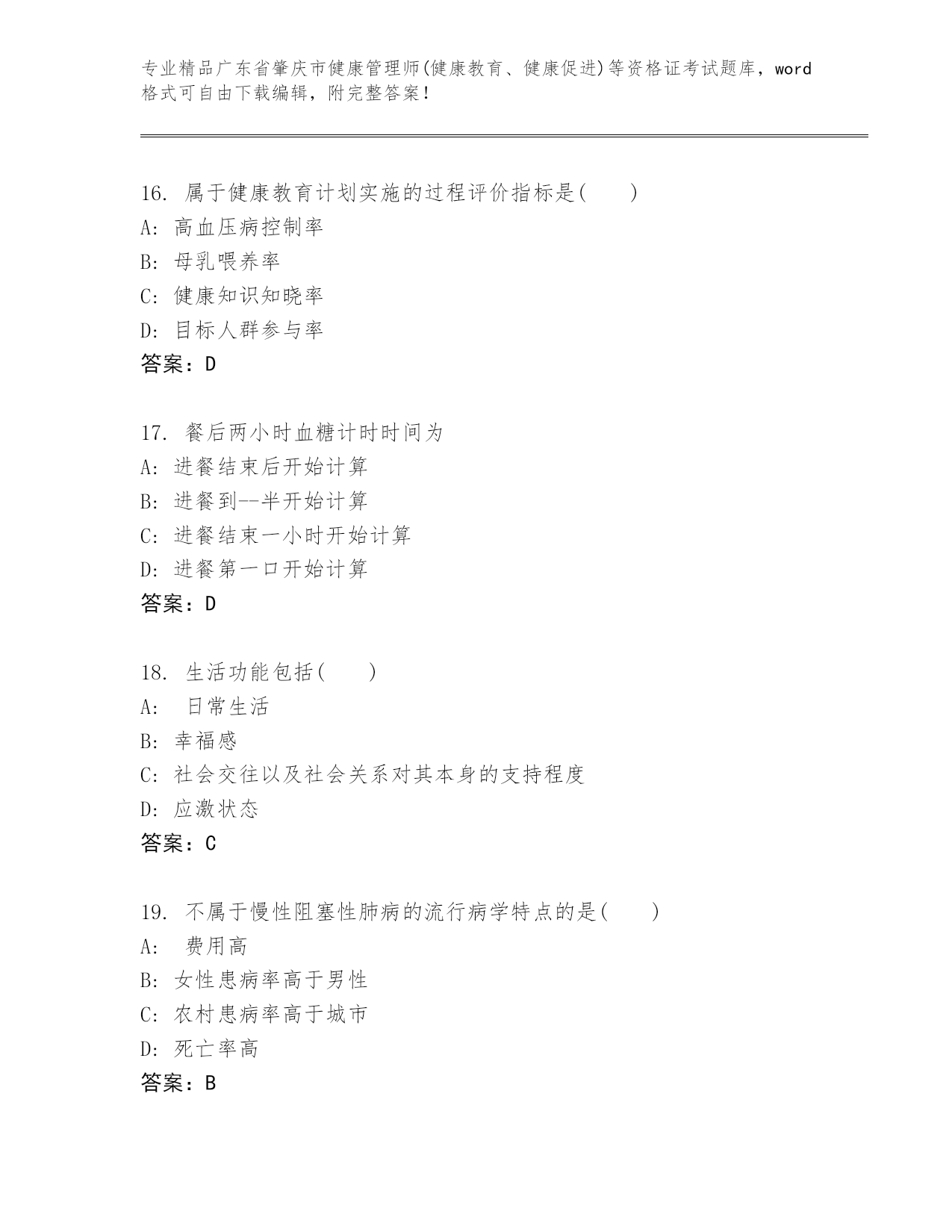 广东省肇庆市健康管理师(健康教育、健康促进)等资格证考试大全带答案(培优B卷).docx