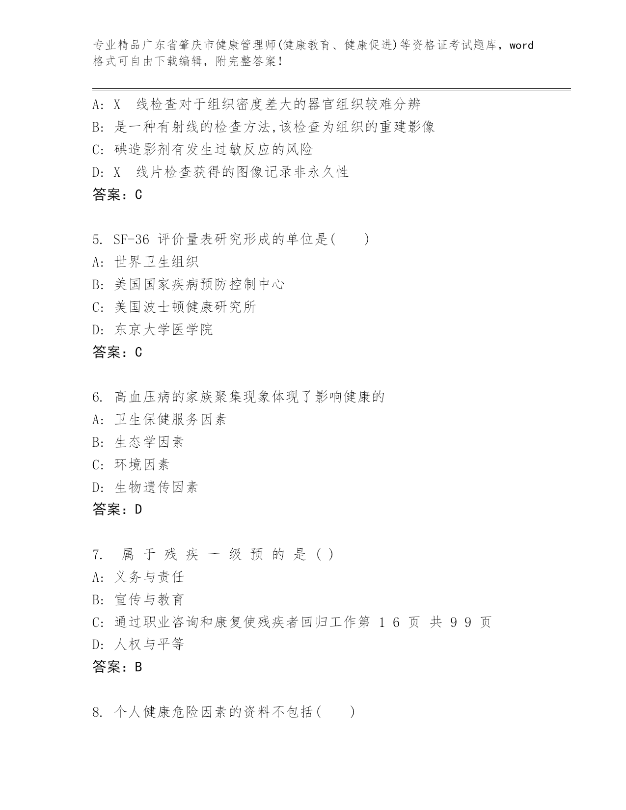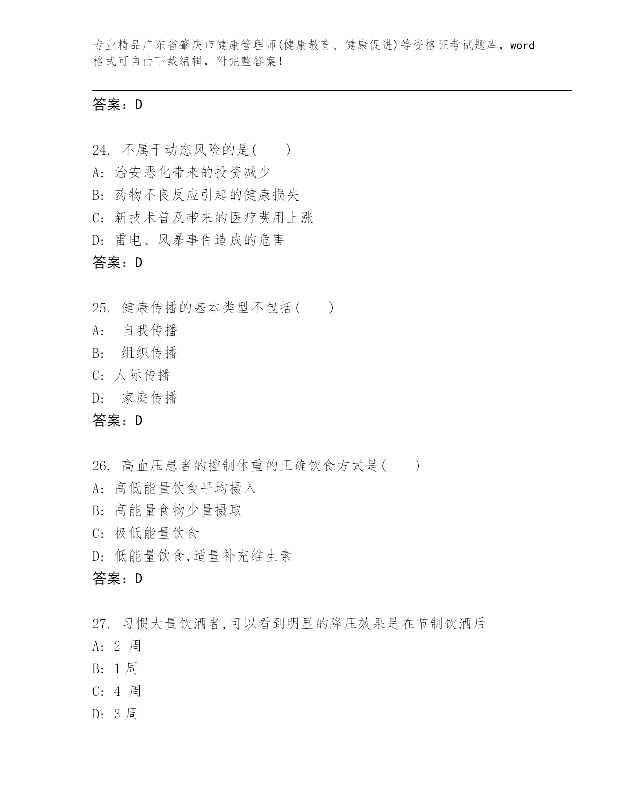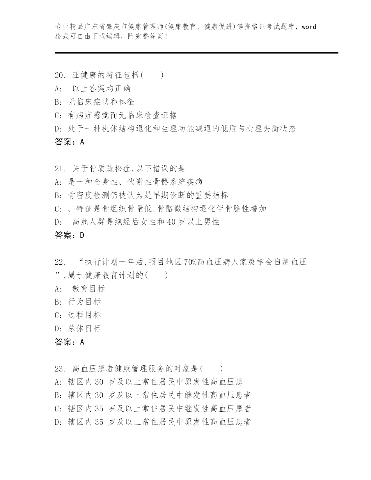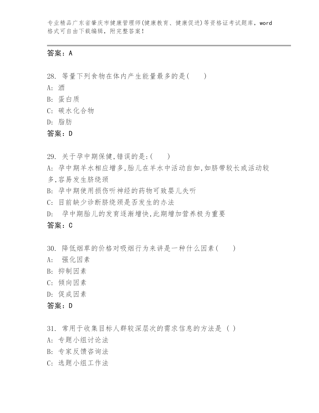 广东省肇庆市健康管理师(健康教育、健康促进)等资格证考试大全带答案(培优B卷).docx
