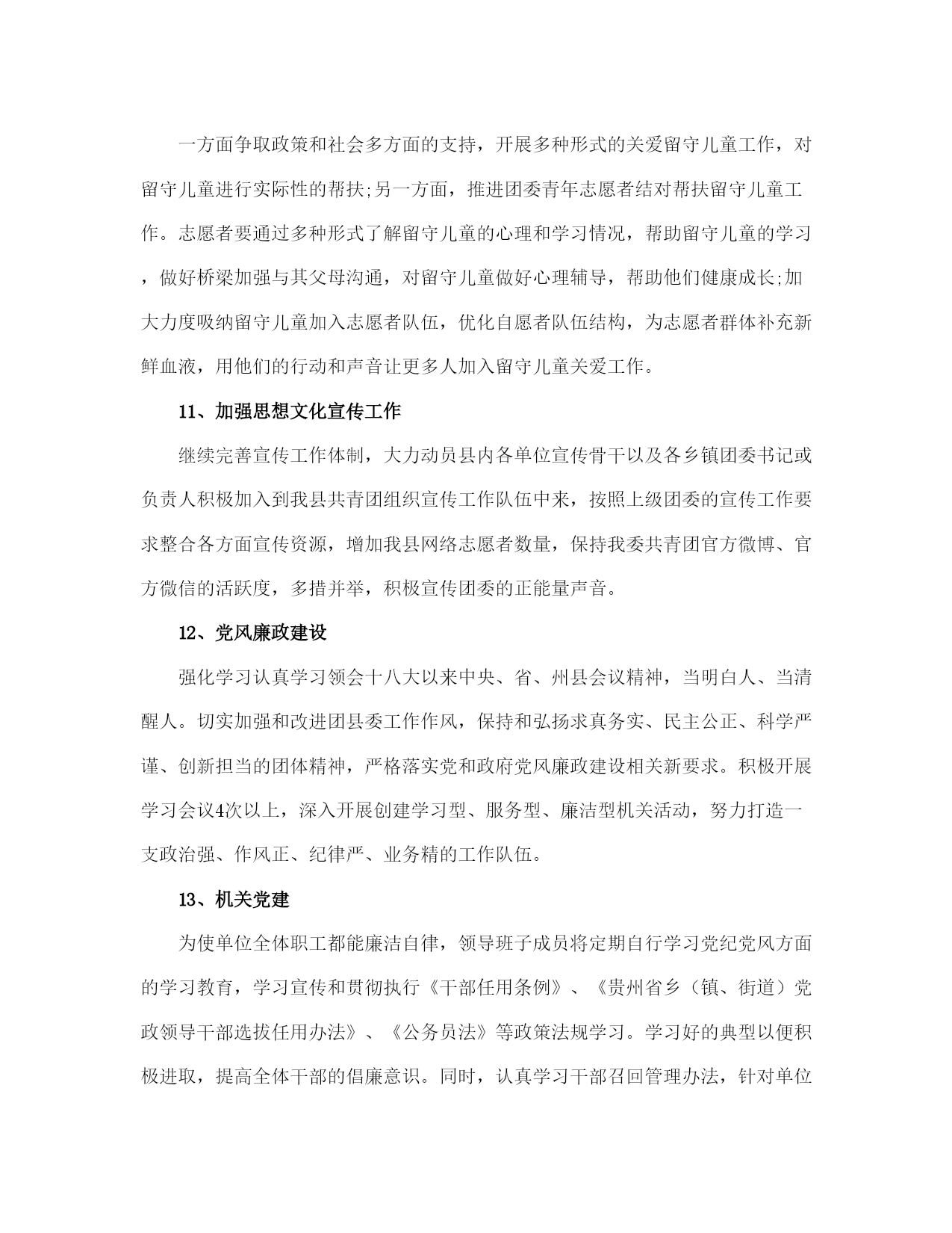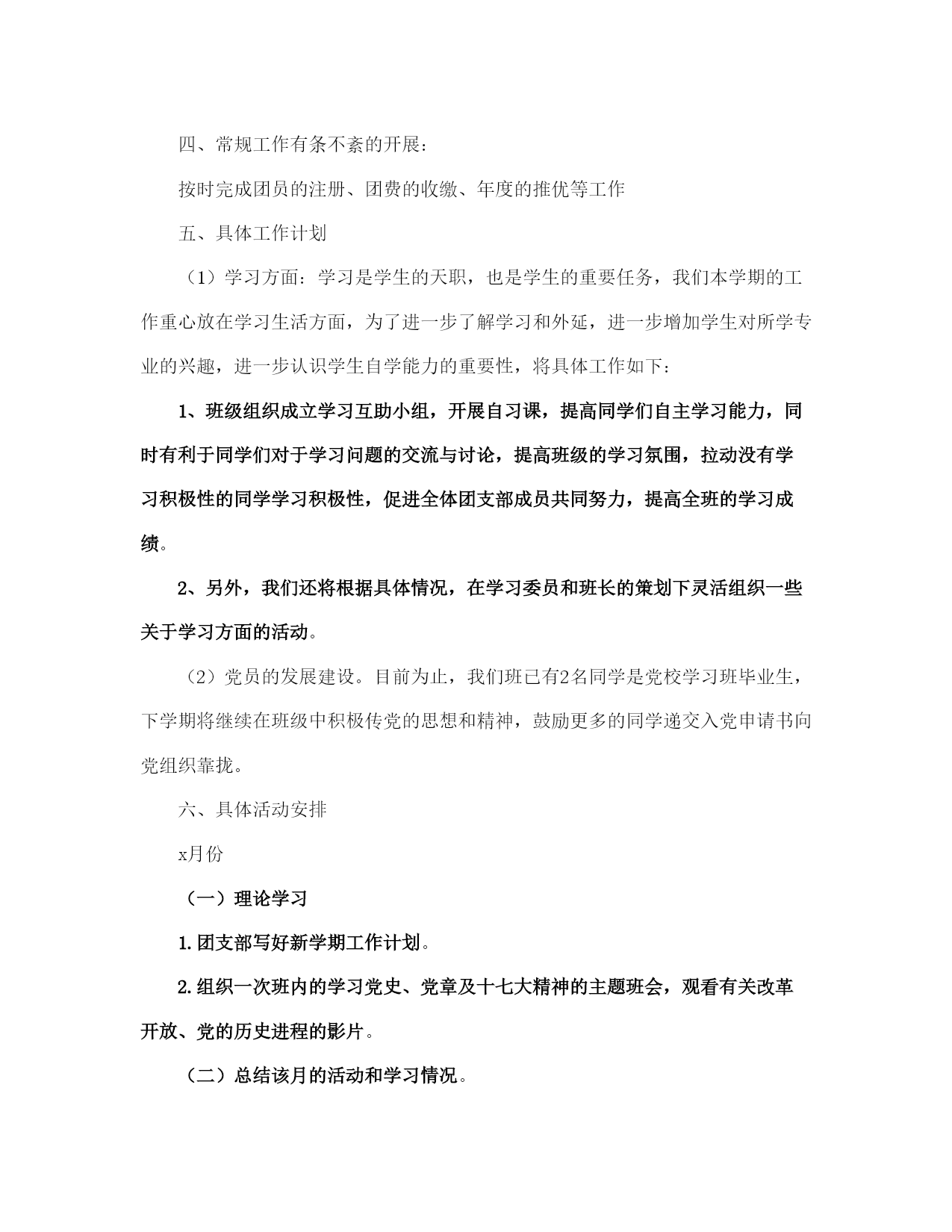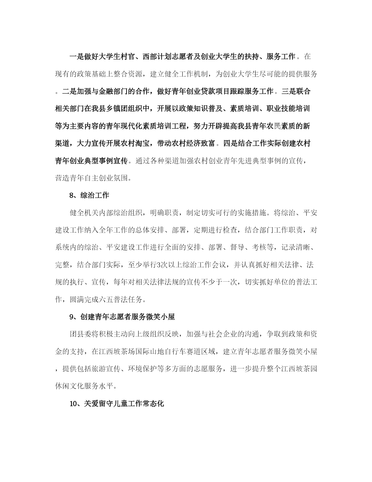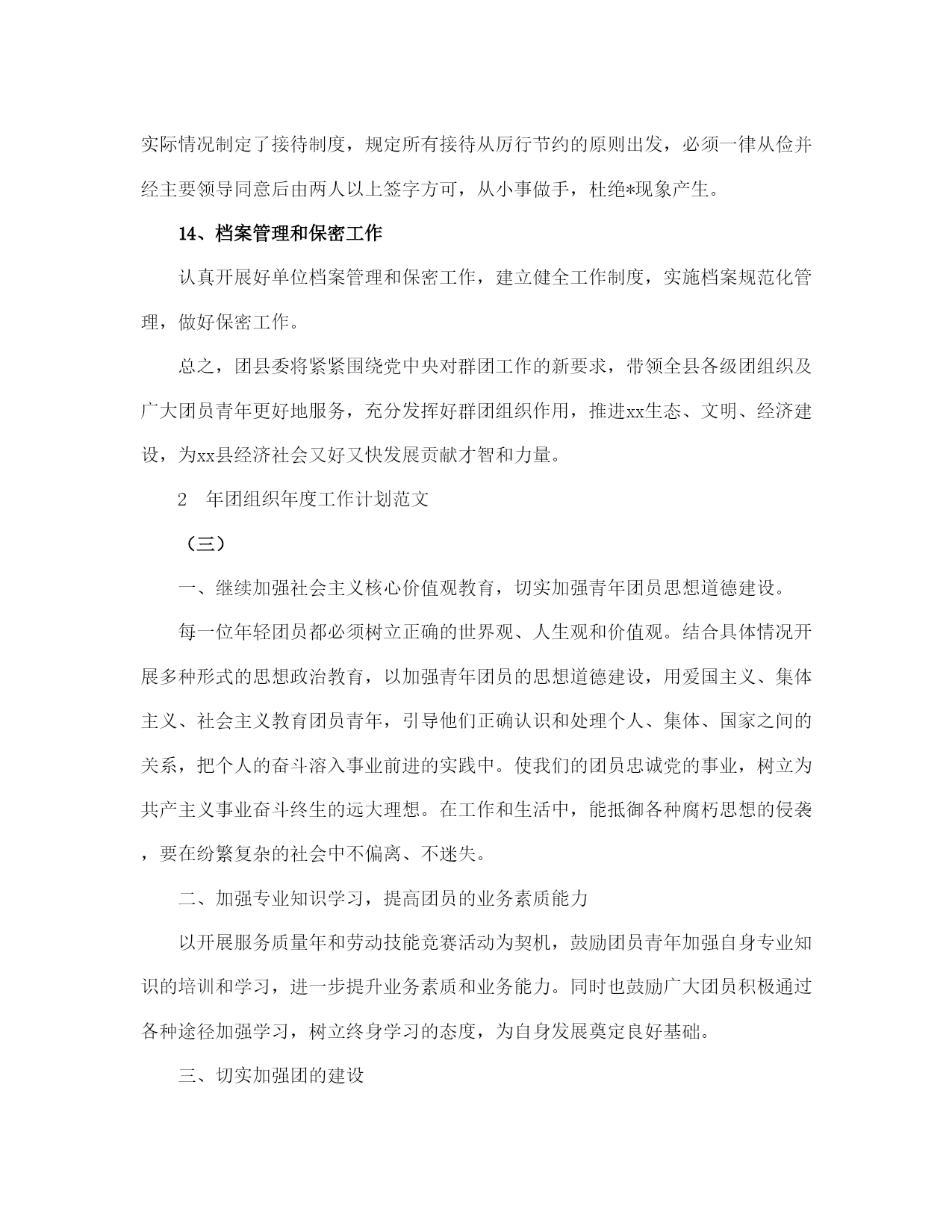 团组织度工作计划(完整版)文档资料可直接使用,可编辑,欢迎下载2年团组织年度工作计划范文大全2年团组织年度工作计划范文(一)春天,温暖、轻柔春风的到来,让我们班又踏入了新的学习和生活。在上级团委和我们班全体团员的帮助下,我班团支部的组织协调能力得到了进一步提高,活动的组织更有条理,这主要依靠全班广大团员青年对我工作的全力配合和大力支持。一、指导思想:在上级团委和学校党委的领导下,以素质教育为主线,以学校德育工作、教学工作为轴心,认真细致的开展团员工作,发展、挖掘自身的特点和优势,结合我班团员青年的特点,开展适合他们的各种团的学习和活动,积极探索共青团组织服务青少年的有效途径和手段,全心全意为广大青年服务,使他们更主动的靠拢团组织、党组织,提高我班共青团的战斗力,力争开创共青团工作的新局面。二、工作宗旨。作为一名团支书,把握着整个班级的思想方向的重要职责。故本学期以思想建设为抓手,在理论学习、活动和平常生活学习中时刻注意提高同学们的思想政治觉悟。以思想建设带动"三风"建设;以"三风"建设促进思想建设。两者互相促进,互相发展。并且要不断鼓励同学们积极向党组织靠拢,多多地在生活中学习党的知识,时时关心国家、国际时事,做有知识,有思想,有抱负的当代青年。三、工作目标。以学为本,在开展各项活动的基础之上,增强各位同学的集体荣誉感、增强集体凝聚力,培养主人翁意识,力求班级整体成绩更上一层楼;同时丰富课余文化生活,树立良好的班级形象、争创先进班级、团支部。四、常规工作有条不紊的开展:按时完成团员的注册、团费的收缴、年度的推优等工作五、具体工作计划(1)学习方面:学习是学生的天职,也是学生的重要任务,我们本学期的工作重心放在学习生活方面,为了进一步了解学习和外延,进一步增加学生对所学专业的兴趣,进一步认识学生自学能力的重要性,将具体工作如下:1、班级组织成立学习互助小组,开展自习课,提高同学们自主学习能力,同时有利于同学们对于学习问题的交流与讨论,提高班级的学习氛围,拉动没有学习积极性的同学学习积极性,促进全体团支部成员共同努力,提高全班的学习成绩。2、另外,我们还将根据具体情况,在学习委员和班长的策划下灵活组织一些关于学习方面的活动。(2)党员的发展建设。目前为止,我们班已有2名同学是党校学习班毕业生,下学期将继续在班级中积极传党的思想和精神,鼓励更多的同学递交入党申请书向党组织靠拢。六、具体活动安排x月份(一)理论学习1.团支部写好新学期工作计划。2.组织一次班内的学习党史、党章及十七大精神的主题班会,观看有关改革开放、党的历史进程的影片。(二)总结该月的活动和学习情况。x月份(一)理论学习组织团员学习共青团的发展历史以及其章程。(二)实践1.积极参加上级团委组织的主题团日活动。2.积极配合学校组织的运动会,组织团员报名参加。(三)总结该月的活动和学习情况。x月份(一)理论学习1.鼓励团员们将自己一学期以来对团的感悟和认识以书面的方式表达出来,装订成册用以同学间的相互交流、学习。2.督促团员们经常写思想汇报。(二):实践1.组织开展好元旦文艺会演。2.在公平、公正、公开的原则下开展班内的推优工作,保证给优秀的团员们充分发挥和进步的平台。(三)总结该月的活动和学习情况。x月份(一)理论学习带动班级的学习氛围,组织同学积极迎考。(二)实践1.做好本年度的各项评比工作。2.认真做好网上团支部的填写、申报和更新工作。3.回顾一学期的工作,及时进行整理、记录、检讨。(三)总结该月和该学期的活动和学习情况。七、结语。一个班级的思想建设工作定会影响到这个班的整体面貌,这给我以及团支部提出了更高的要求。但是我们不会胆怯,因为有老师、同学们的大力支持和鼓励,我有信心和班委把我班团支部建设成为"文化素质好,思想觉悟高,各方面综合素质优秀"的优秀团支部。我相信在下学期我们团支部会有更加喜人的成绩。2年团组织年度工作计划范文(二)1、评优宣传认真组织20xx年五四青年节活动,加强青年文明号、优秀团组织、优秀辅导员、优秀团干、优秀团员、优秀志愿者、青年创业基地的创建。积极组织团组织开展活动,并从中严格选拔出优秀,强化对优秀组织和个人事迹的宣传,扩大影响力,带动更多人加入团的工作中来。2、志愿服务深入开展志愿者行动,一方面,吸纳更多的人加入到志愿者队伍,优化志愿者队伍结构,扩大高素质志愿者和行业精英在志愿者中的比例。另一方面,丰富志愿活动。定期组织志愿活动,组织实施多种形式的志愿服务,积极配合县内开展工作,践行好志愿服务精神。3、做好未成年人保护工作一是进一步加大对青少年违法犯罪、未成年保护、青少年法制宣传教育力度,积极宣传未成年保*和预防青少年犯罪的相关法律