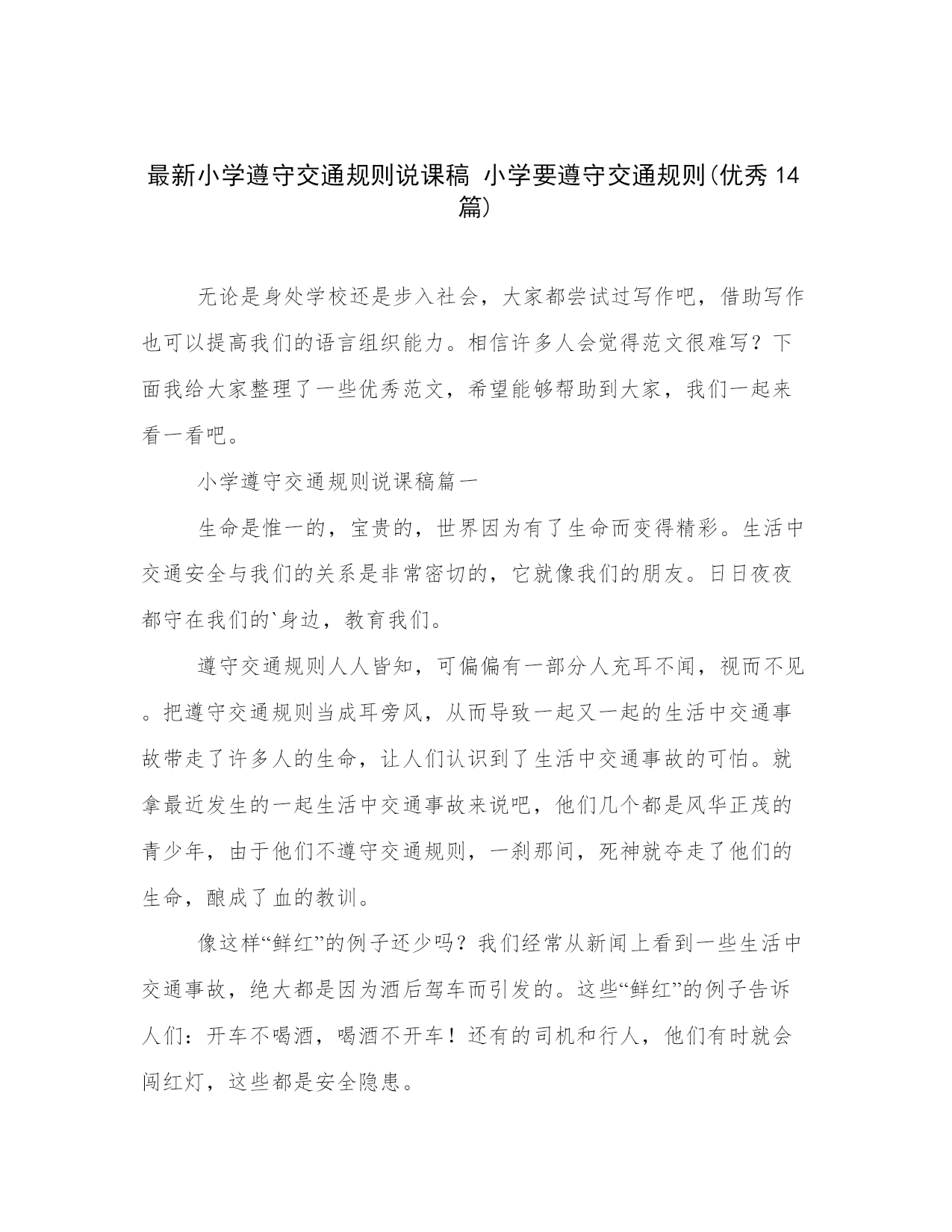 最新小学遵守交通规则说课稿 小学要遵守交通规则(优秀14篇).docx