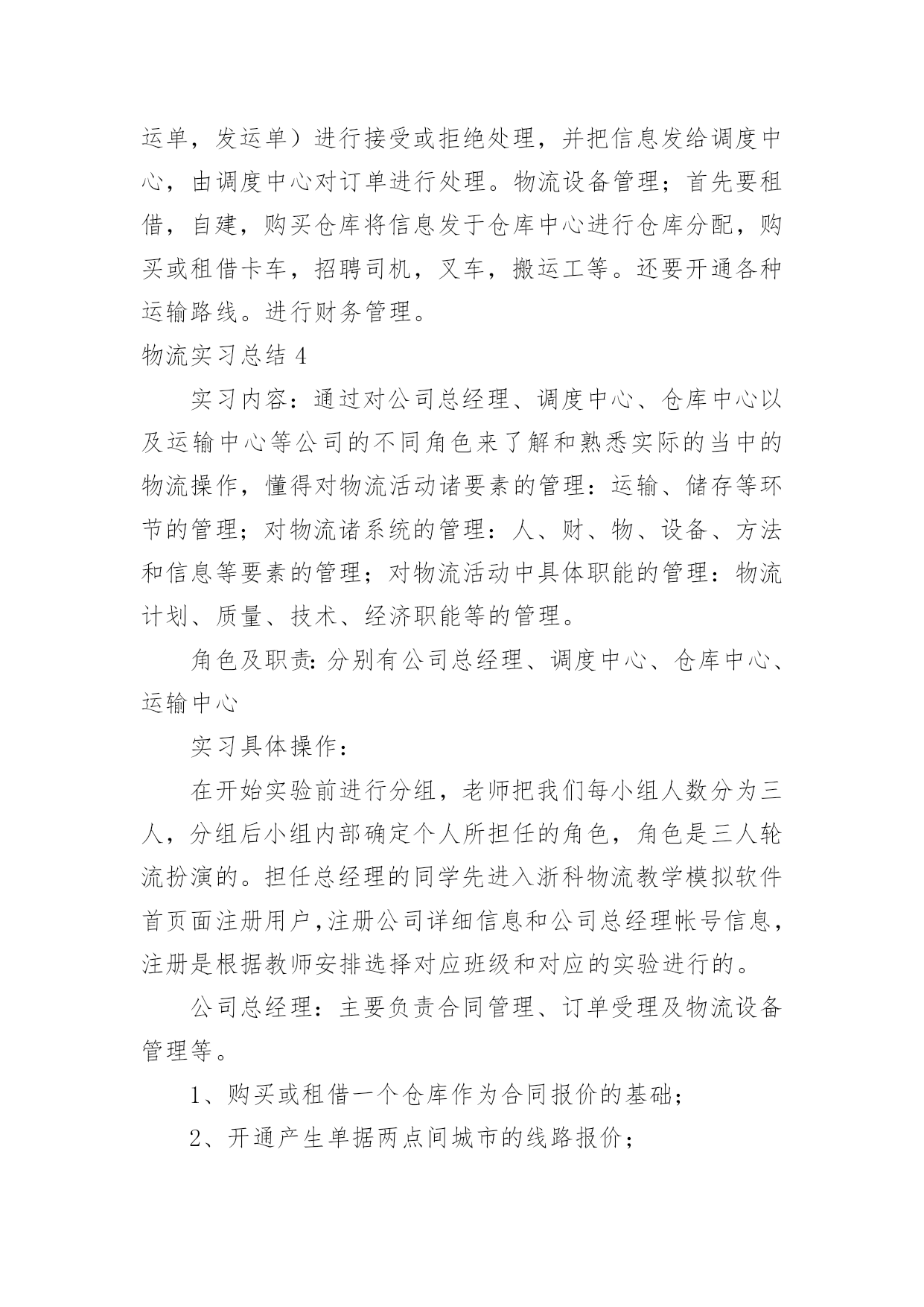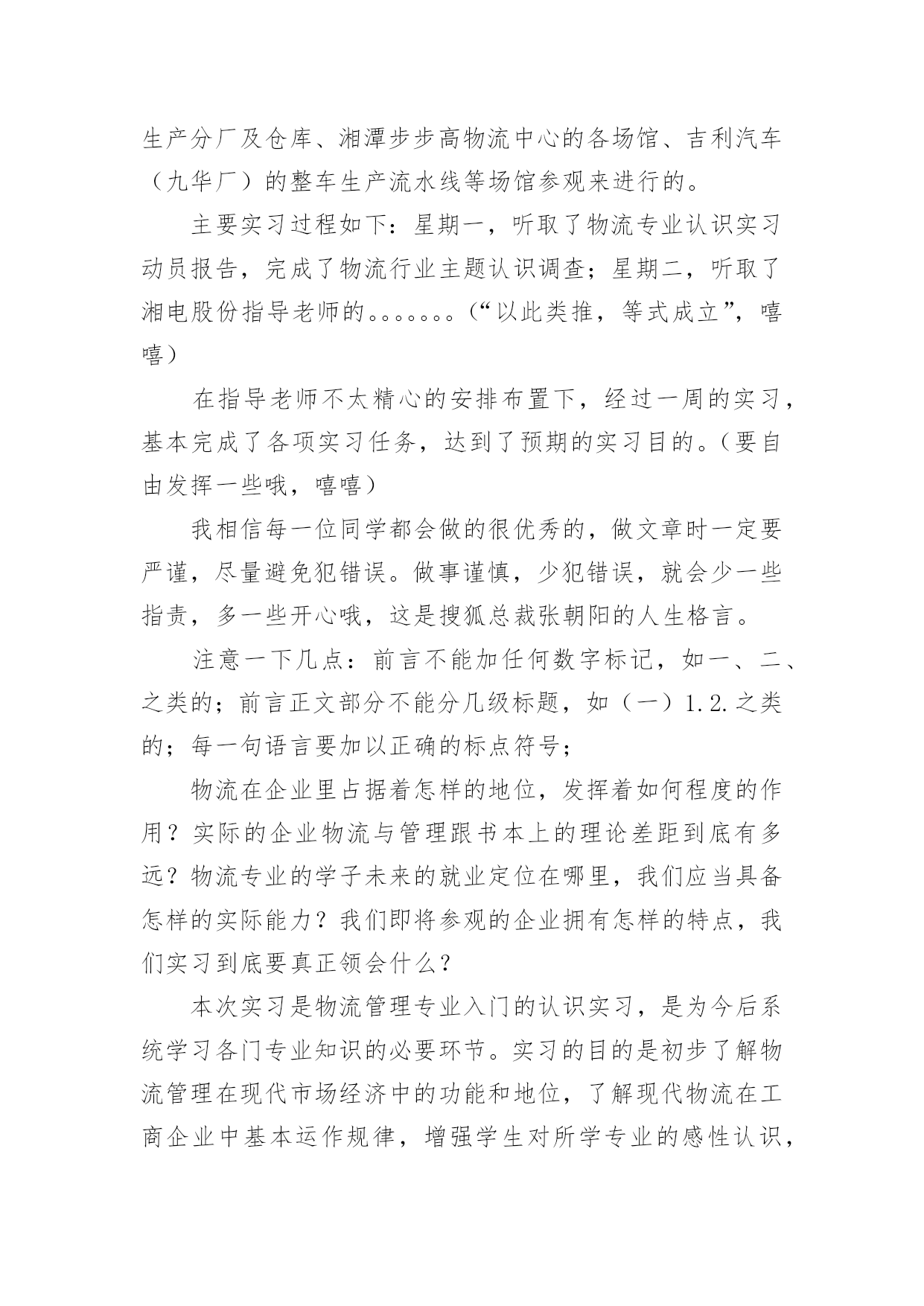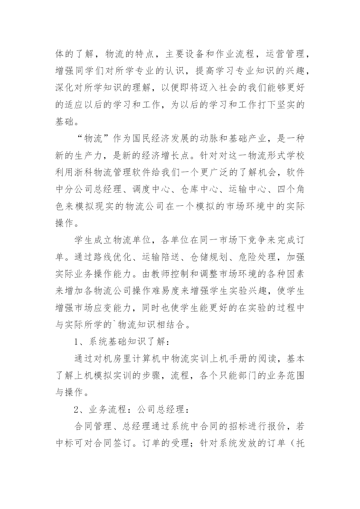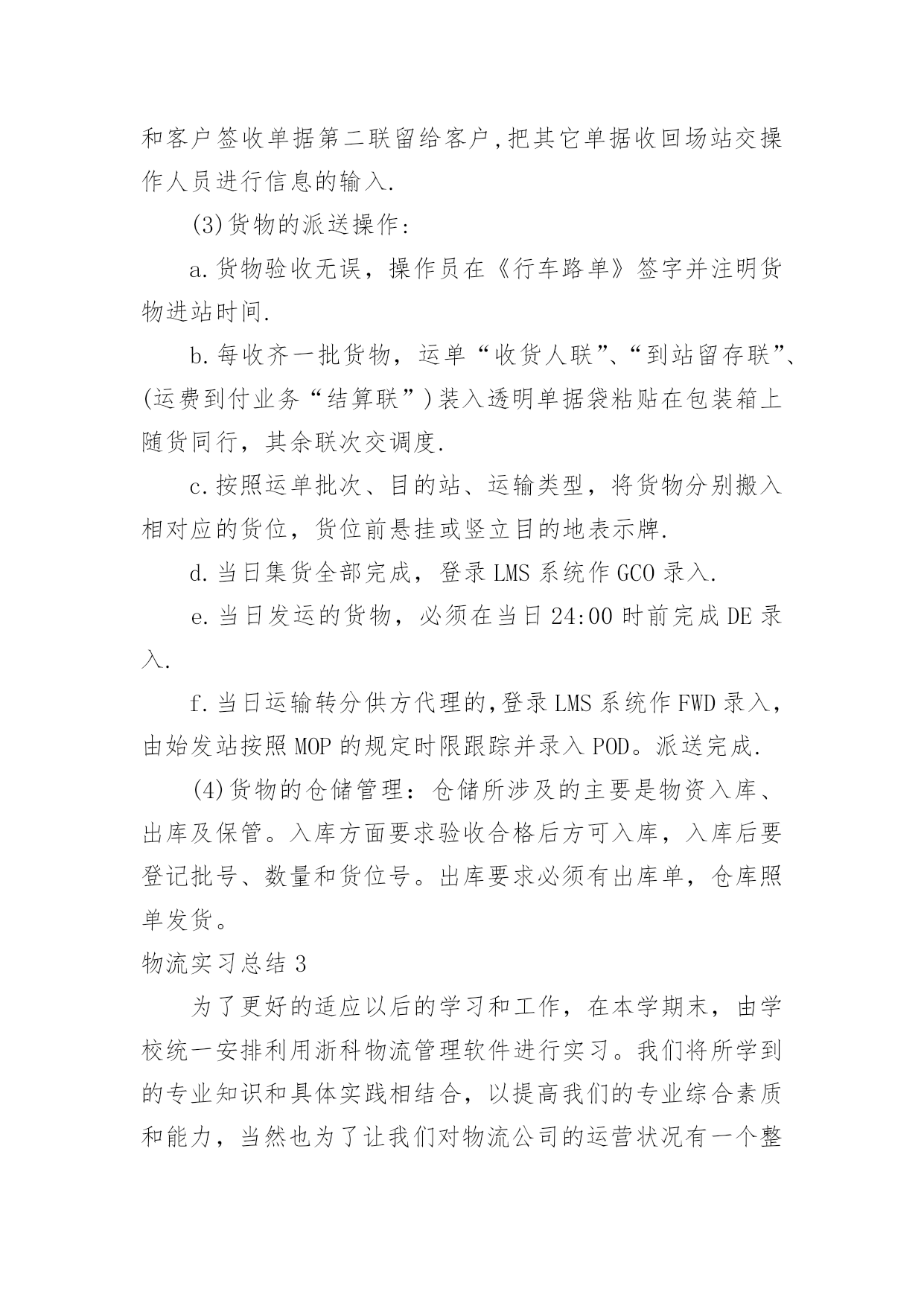 物流实习总结物流实习总结15篇总结是事后对某一时期、某一项目或某些工作进行回顾和分析,从而做出带有规律性的结论,它能帮我们理顺知识结构,突出重点,突破难点,是时候写一份总结了。你所见过的总结应该是什么样的?以下是小编精心整理的物流实习总结,仅供参考,大家一起来看看吧。物流实习总结1专业物流管理班级1002学号34(编外学生)学生姓名李智彬导师姓名孔夫子(编外没有老师,自己请的)完成日期前言(宋体、3号字、加粗、居中、段前段后各0.5)本次实习是物流管理专业入门的认识实习,实习的目的是初步了解物流管理在现代市场经济中的功能和地位,了解现代物流在工商企业中基本运作规律,参观了解物流场馆及设施装备,了解企业物流基本流程,增强对所学专业的感性认识,提高学习专业知识的兴趣,为后阶段深入学习物流管理专业所设置的各门专业课程打下良好的基础。本次实习时间为一周,即本学期第五周,实习内容主要是以多个物流主题认识调查为基础,结合企业指导老师的物流业务讲座和现场讲解,并对湘潭电机股份有限公司的部分生产分厂及仓库、湘潭步步高物流中心的各场馆、吉利汽车(九华厂)的整车生产流水线等场馆参观来进行的。主要实习过程如下:星期一,听取了物流专业认识实习动员报告,完成了物流行业主题认识调查;星期二,听取了湘电股份指导老师的。。。。。。。(“以此类推,等式成立”,嘻嘻)在指导老师不太精心的安排布置下,经过一周的实习,基本完成了各项实习任务,达到了预期的实习目的。(要自由发挥一些哦,嘻嘻)我相信每一位同学都会做的很优秀的,做文章时一定要严谨,尽量避免犯错误。做事谨慎,少犯错误,就会少一些指责,多一些开心哦,这是搜狐总裁张朝阳的人生格言。注意一下几点:前言不能加任何数字标记,如一、二、之类的;前言正文部分不能分几级标题,如(一)1.2.之类的;每一句语言要加以正确的标点符号;物流在企业里占据着怎样的地位,发挥着如何程度的作用?实际的企业物流与管理跟书本上的理论差距到底有多远?物流专业的学子未来的就业定位在哪里,我们应当具备怎样的实际能力?我们即将参观的企业拥有怎样的特点,我们实习到底要真正领会什么?本次实习是物流管理专业入门的认识实习,是为今后系统学习各门专业知识的必要环节。实习的目的是初步了解物流管理在现代市场经济中的功能和地位,了解现代物流在工商企业中基本运作规律,增强学生对所学专业的感性认识,提高学习专业知识的兴趣,为后阶段深入学习物流管理专业所设置的各门专业课程打下良好的基础。在这一周时间内,我们先后去了湘潭电机厂,步步高物流公司,吉利汽车公司,与此同时又听了一些工作了的学长们对物流的介绍以及就业方面的知识,使我们受益匪浅,让我们对物流专业有了更加全面的'认识,使我们对物流专业充满了更大的信心。(假的流汗,错的离谱。我们没有去吉利汽车公司吧?他们的公司远在杭州呢!我们去的是吉利汽车九华生产厂啊。另外,去年是请来了两位已经毕业了的学长回来做讲座报告,今年一场报告也没安排,没钱安排了啊,一场报告要给好几百大洋,还要请吃一餐饭,按现在的物价,又要差不多上千,远的还要路费,如果是行业内重量级人物出场,更是不敢奢望了,只能在怀旧中。)(一)实习具体安排流程(前言分体式出现了!)9月26日实习动员以及实习资料调查。(一句简单的话,就是一个段落,这是神马文章?你见过吗?不管你是不是见过,反正我见到了,嘻嘻。)9月27日去湘潭电机厂,了解制造企业采购与物流业务,参观制造企业物流现场、生产车间。9月28日去湘潭步步高物流公司,了解商业连锁企业物流(写到这里,后面的东东干脆连句号也省了,算是文章的“裸奔一族”吧,我也想这样萌一下,可惜不敢啊,嘻嘻。)9月29日去吉利汽车公司,参观汽车生产车间和生产流水线9月30日进行物流调查、资料查取收集10月1日~2日整理报告(二)实习单位湘潭电机厂、步步高物流公司、吉利汽车公司(一个这么大的二级标题,就只有一句连句号也木有话,额的神,算是宇宙超级无敌体吧!I服了you!)(三)实习内容1.熟悉物流公司的仓储情况。如仓库及其结构,仓库的布局和仓储规划,仓库的基本设施;自动化仓库的基本知识。仓库保管的入库、理货、堆存、保管、出库、装卸搬运等整个作业过程、操作方法、作业要求、管理方式和要求等。(这次去了专业的物流公司吗?去年到是请来了顺丰速运的人员做讲座,这次实习只有一周的时间和经费,怎么可能做这些项目啊?)2.了解仓储经营情况。3.了解物流配送情况。如配送中心的基本作业流程和一般作业项目,配送中心模式和类型,配送中心管理的主要内容和一般岗位设置等。4.了解物流配送组织情况。如配送作业组织方法,协同配送作业,开展配送服务,配送服务质量管理的要素等。5.了解物流配送商务情况。如配送经营的模式,配送商务的组织和管理内容,配送合同,配送成本分析及配送