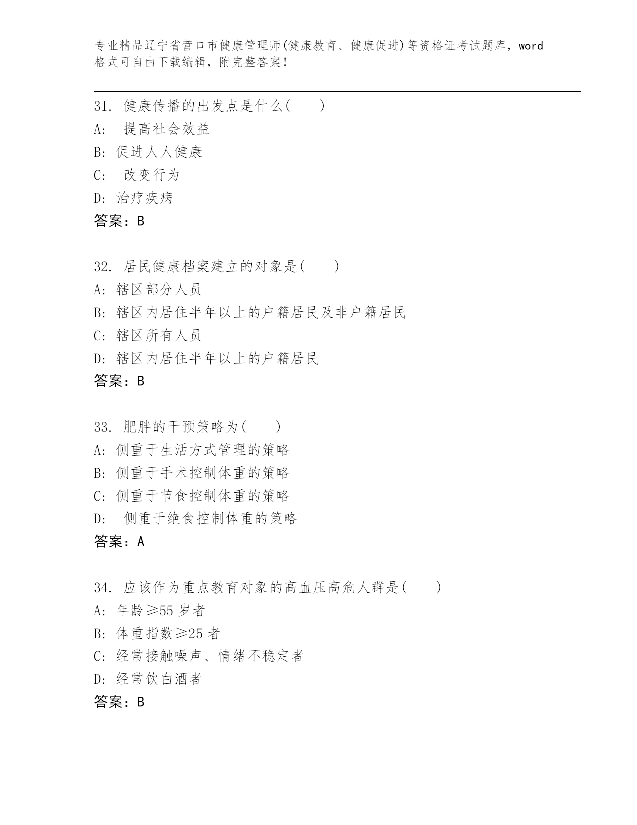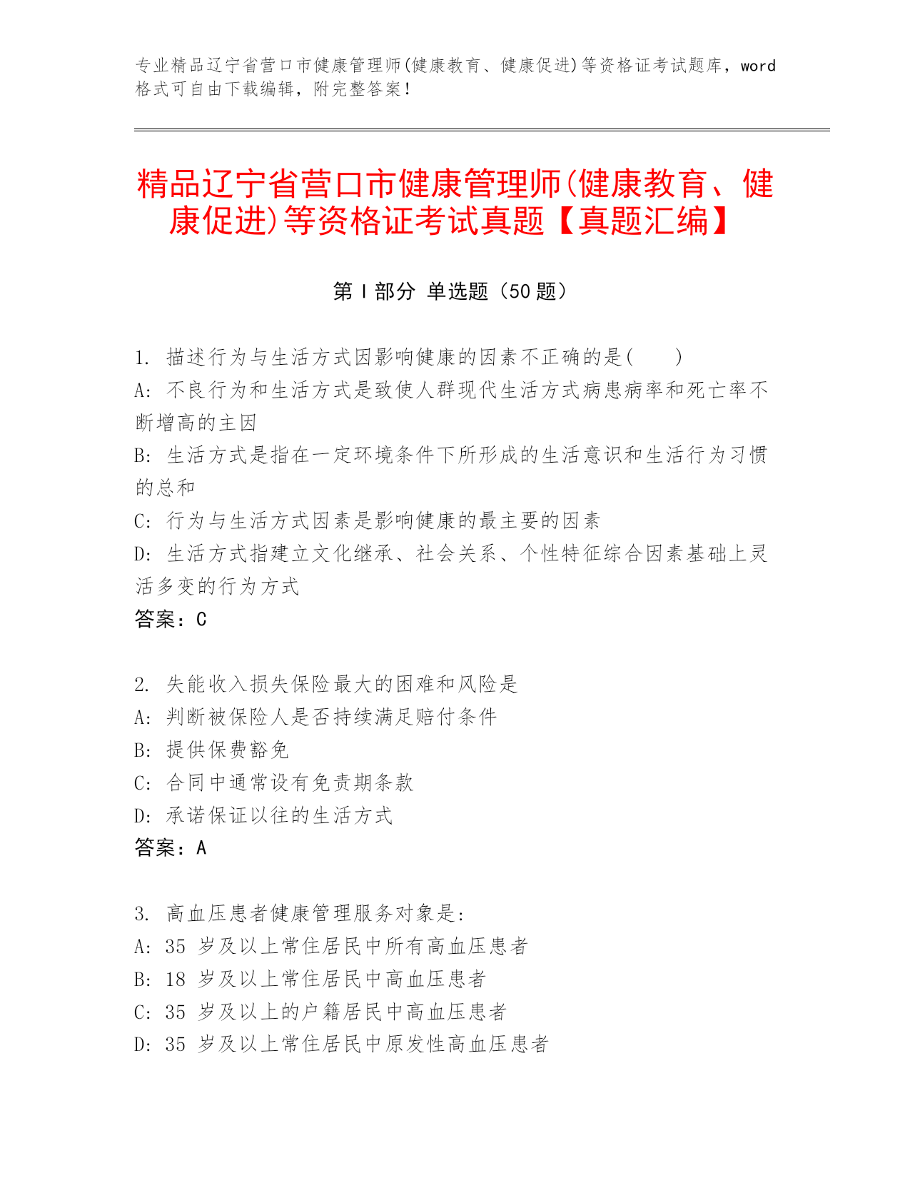 精品辽宁省营口市健康管理师(健康教育、健康促进)等资格证考试真题【真题汇编】