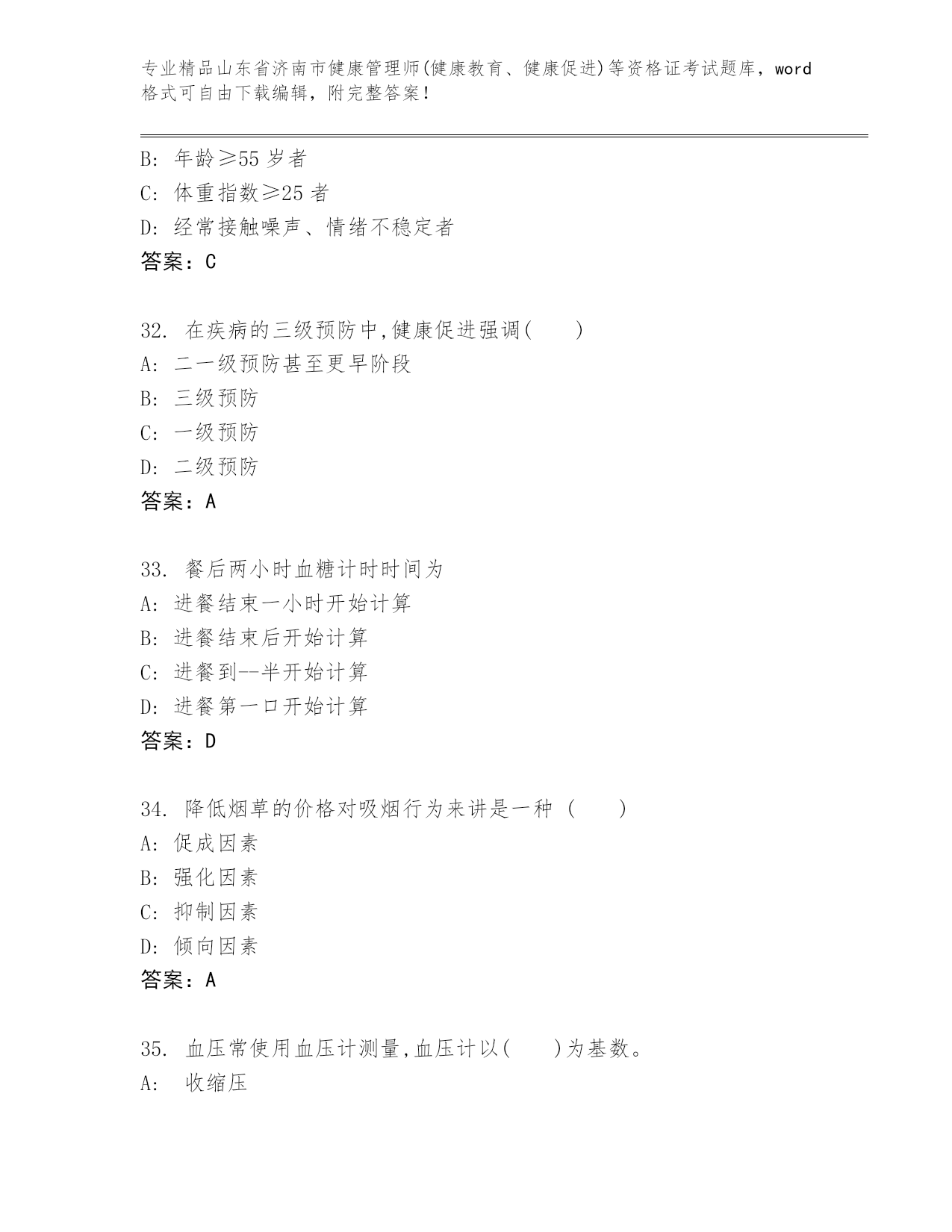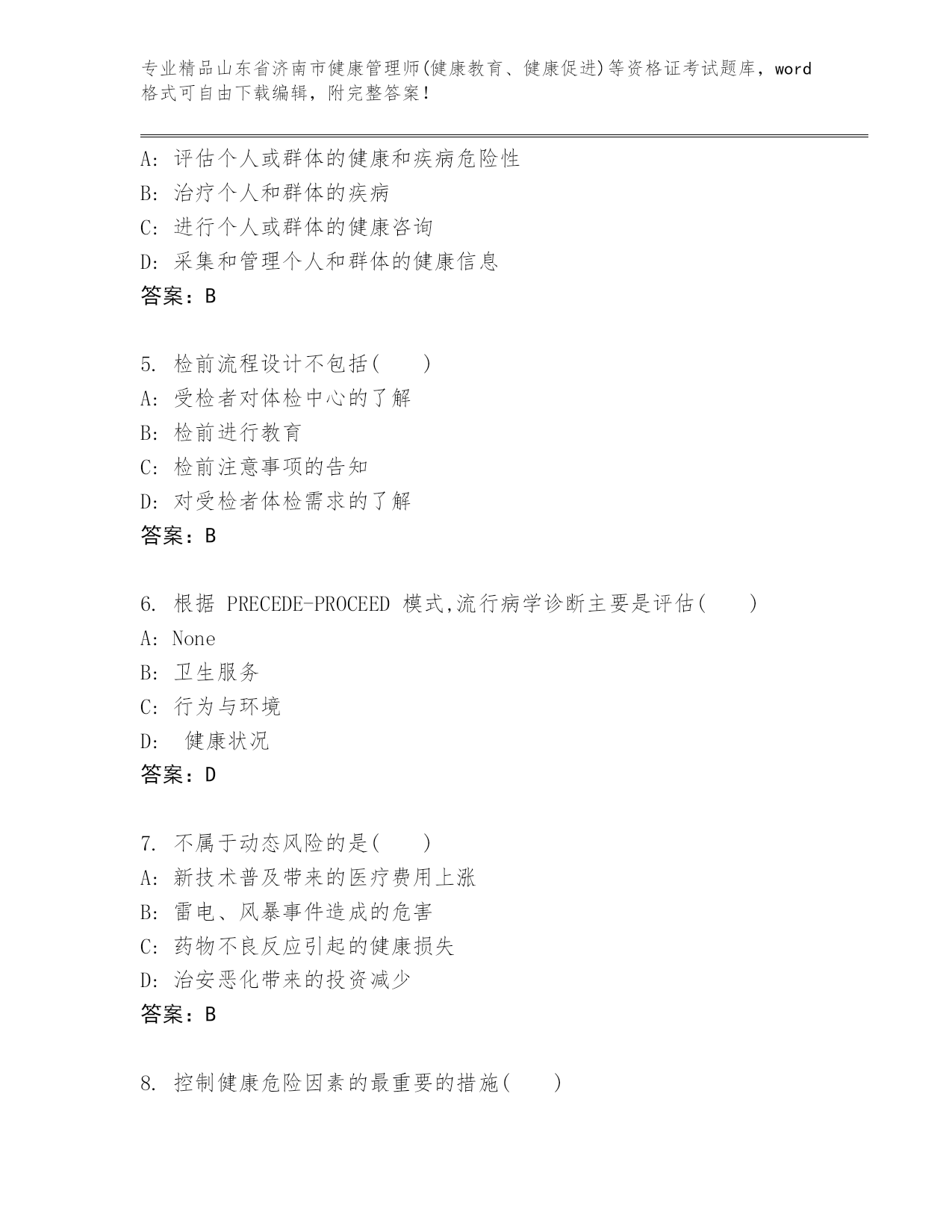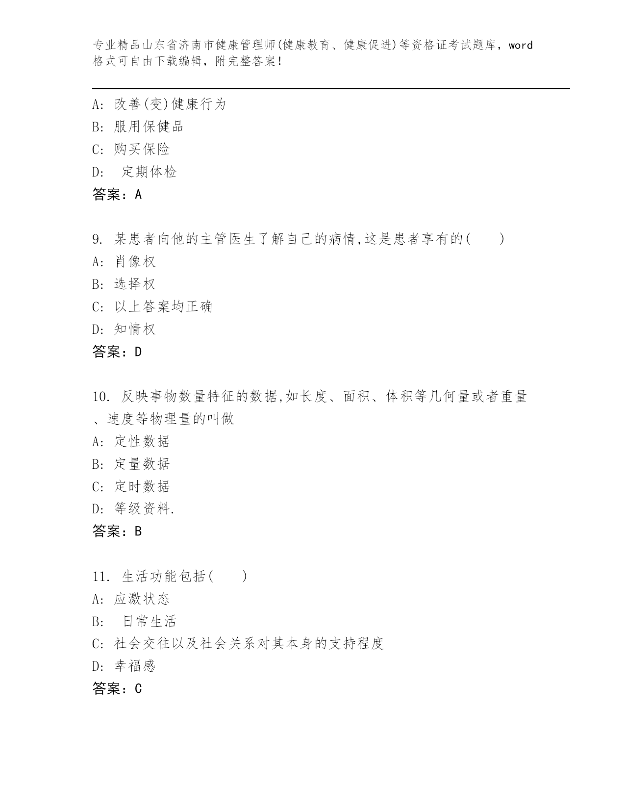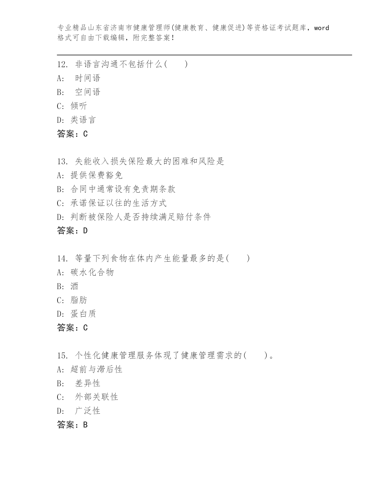 山东省济南市健康管理师(健康教育、健康促进)等资格证考试真题题库(综合卷).docx