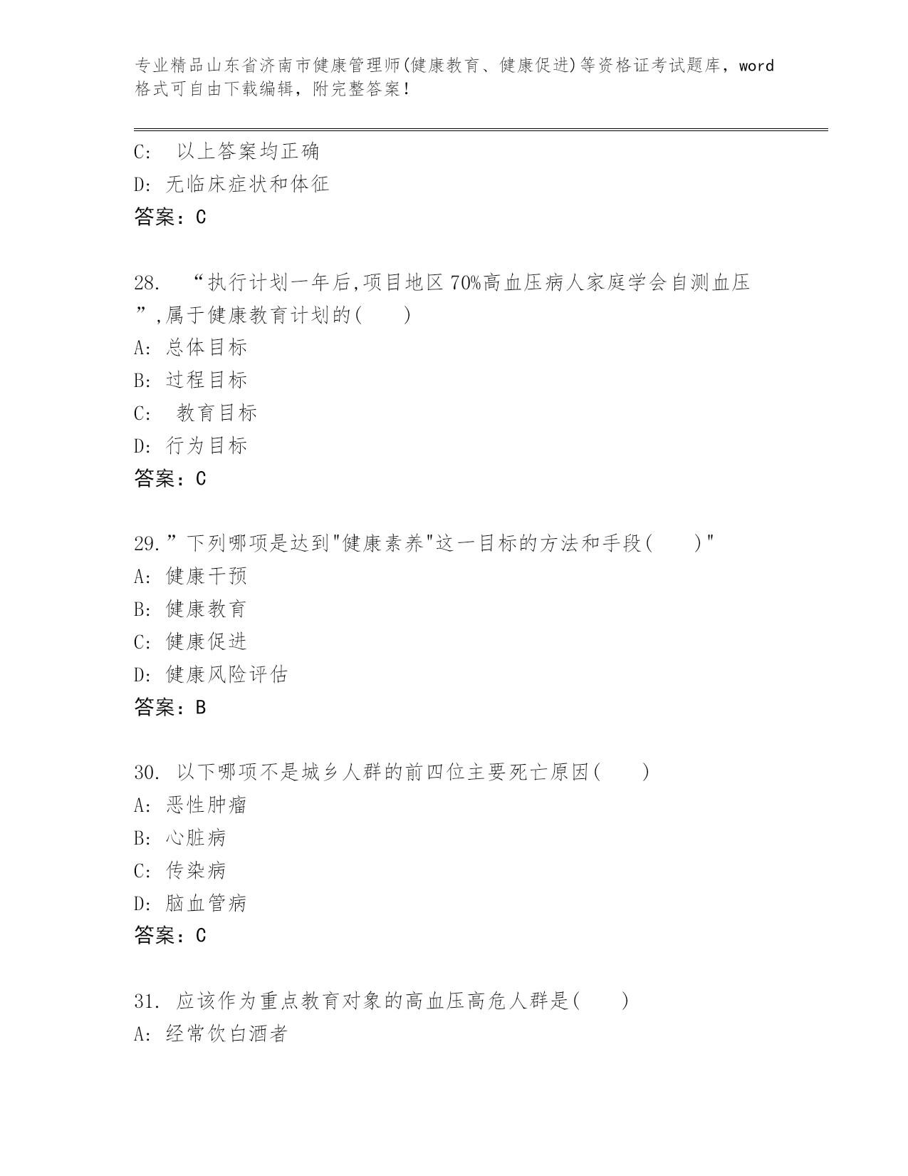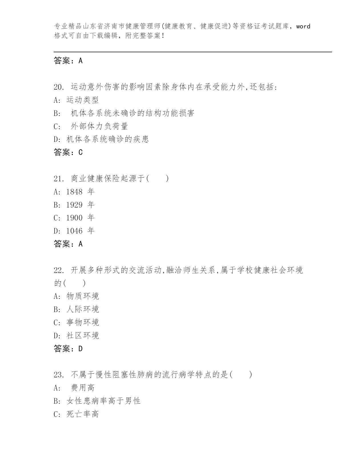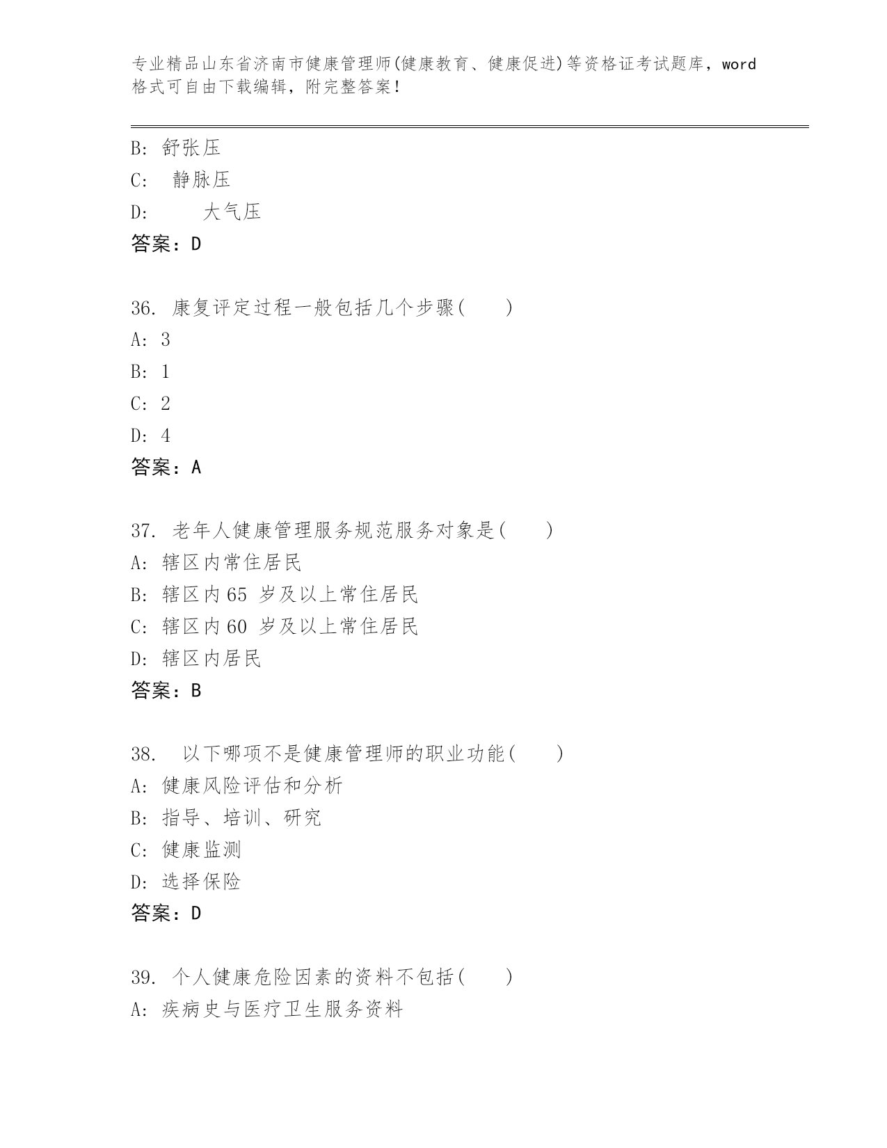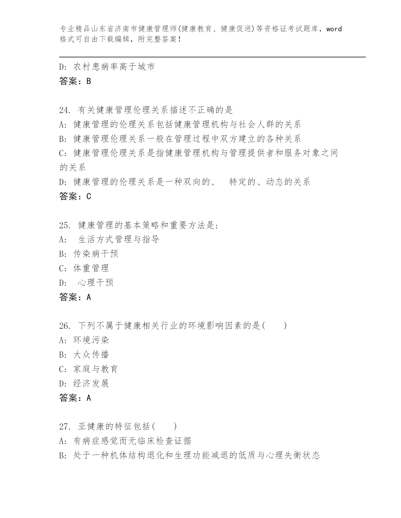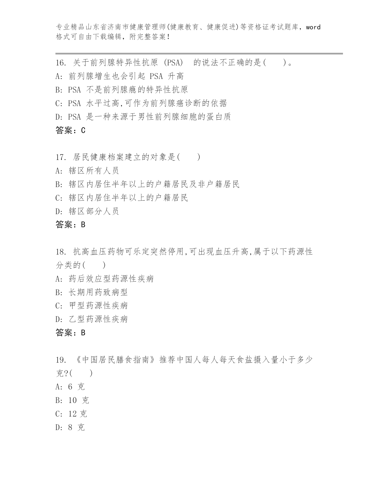 山东省济南市健康管理师(健康教育、健康促进)等资格证考试真题题库(综合卷).docx