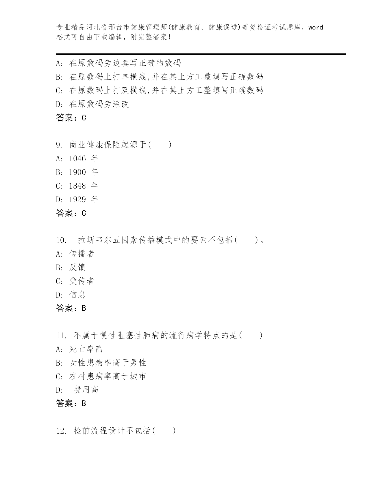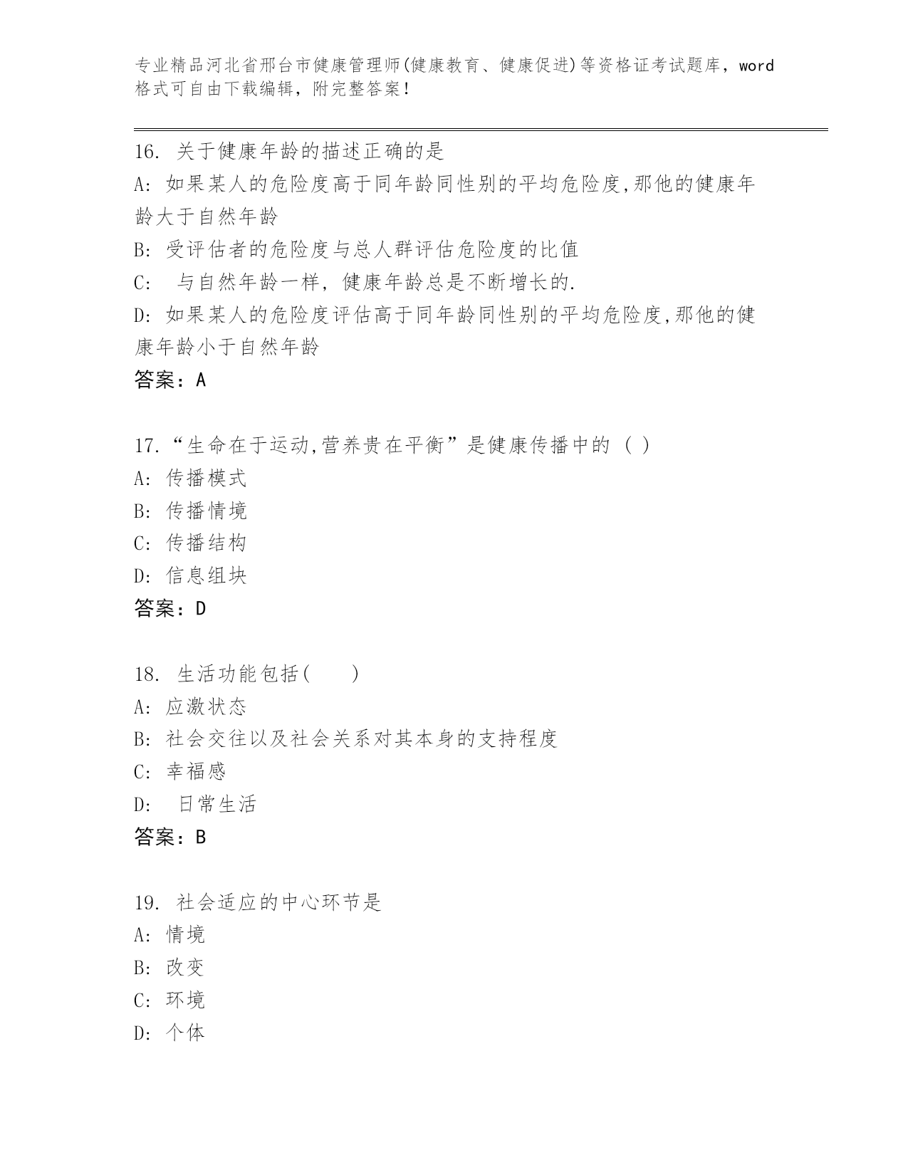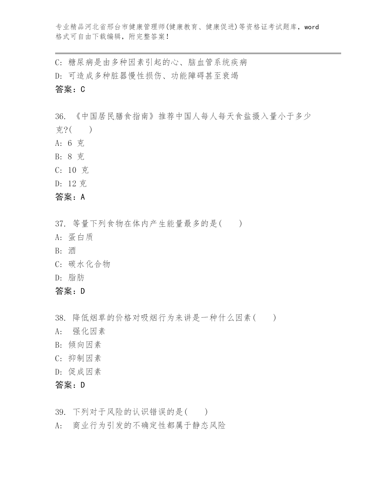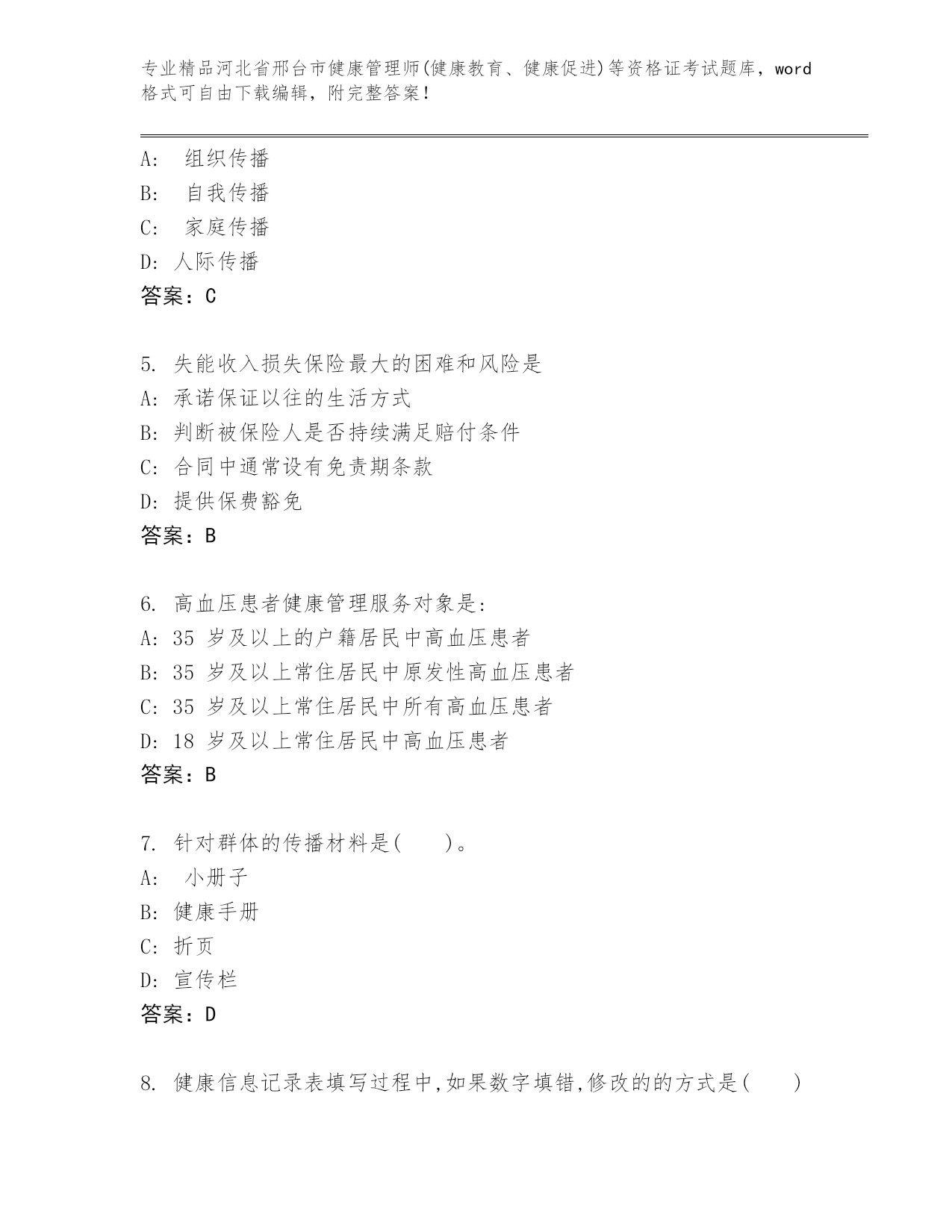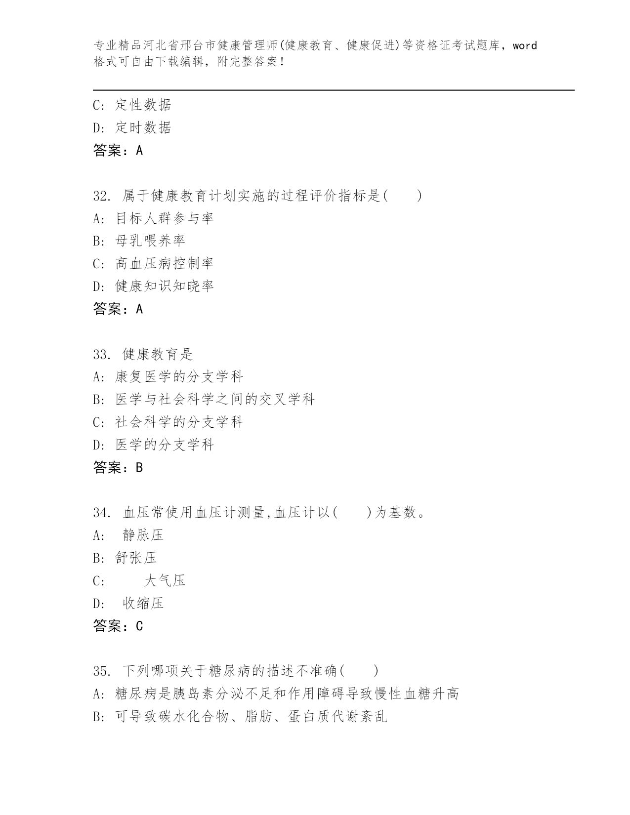 2024年河北省邢台市健康管理师(健康教育、健康促进)等资格证考试精品(达标题)