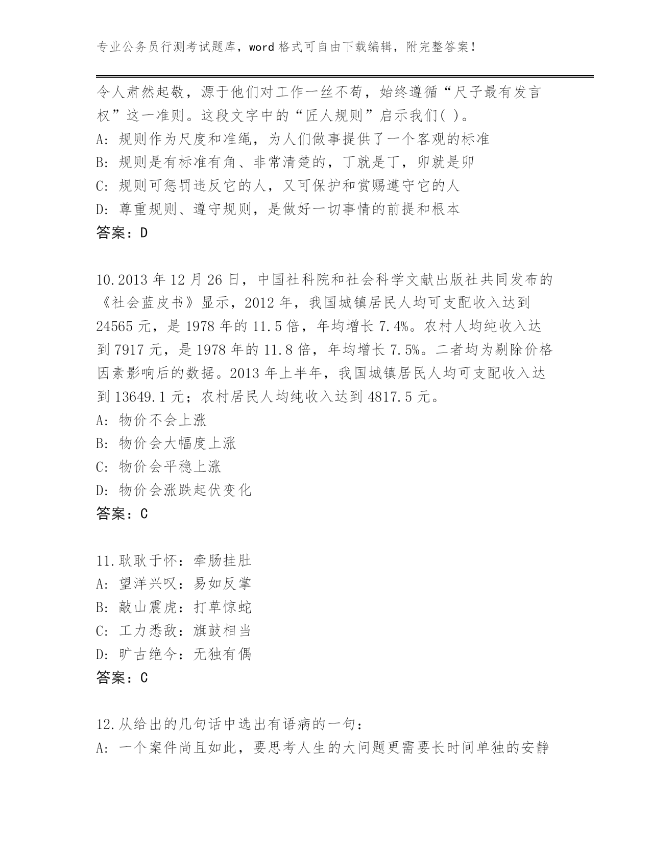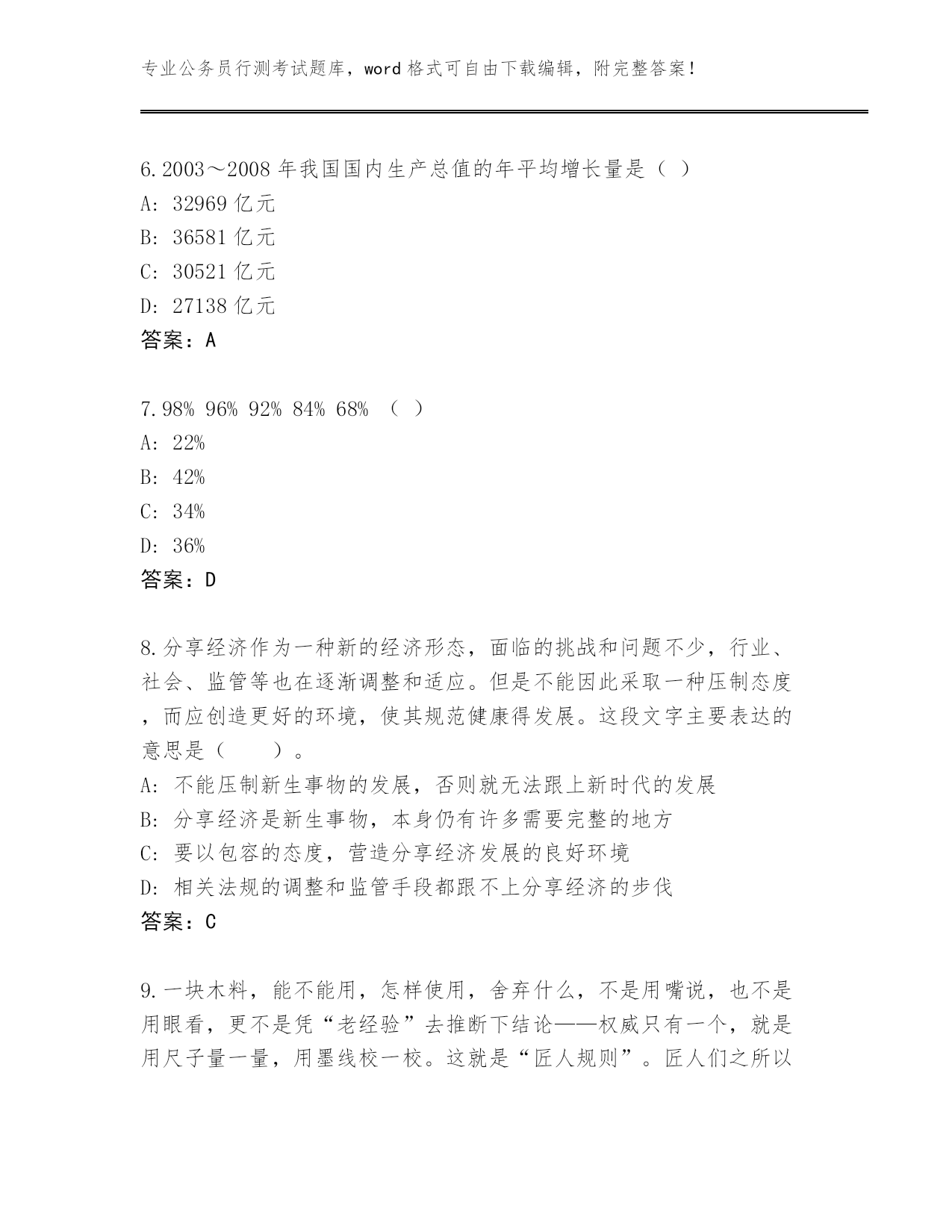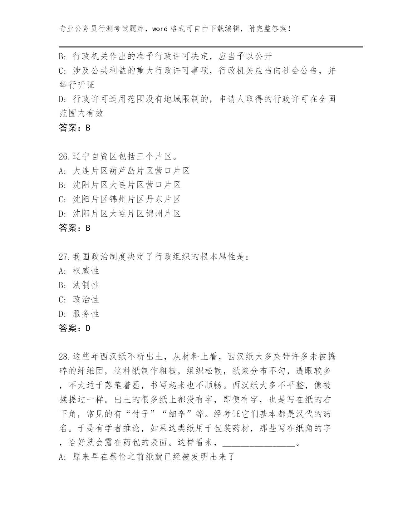 甘肃省礼县2024年公务员行测考试真题题库含答案(培优)