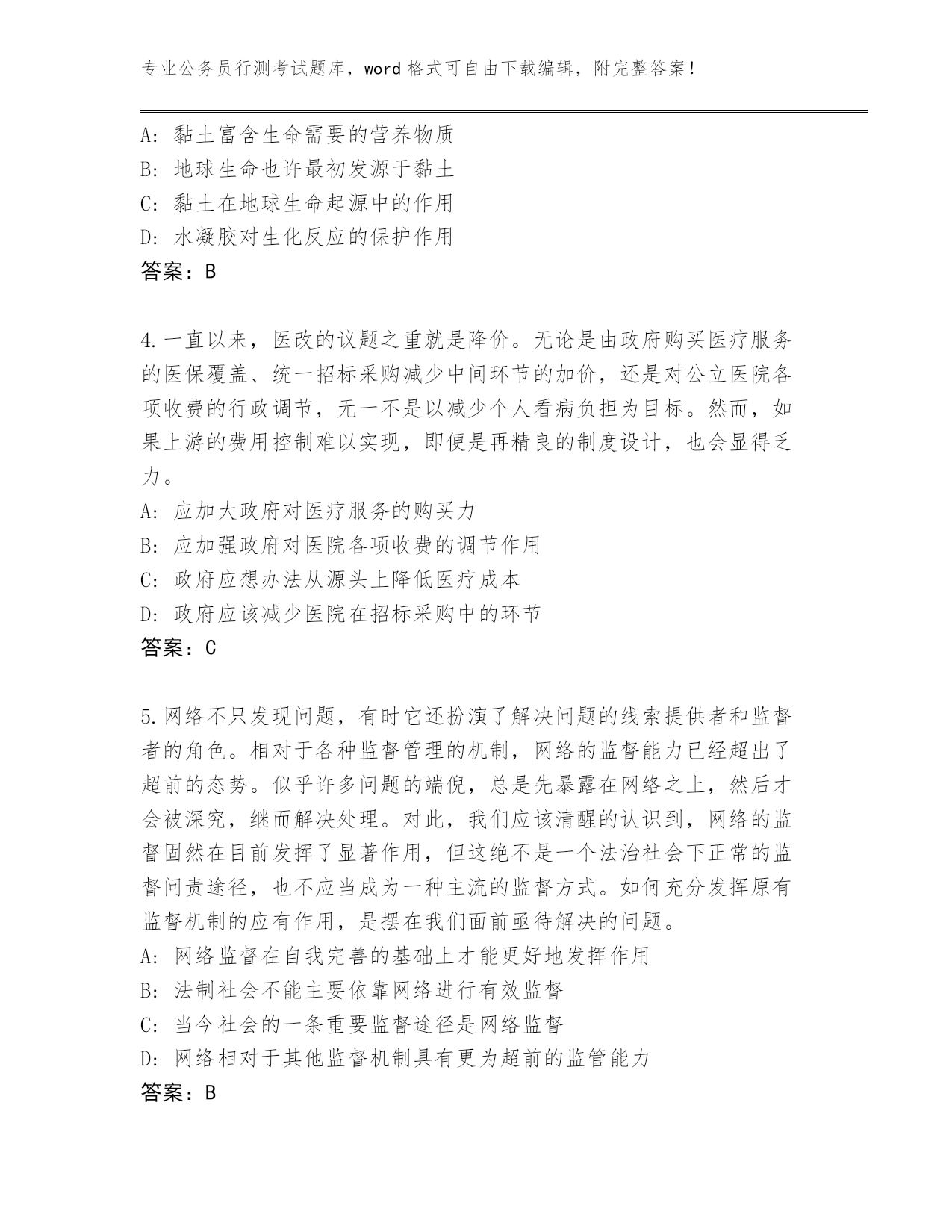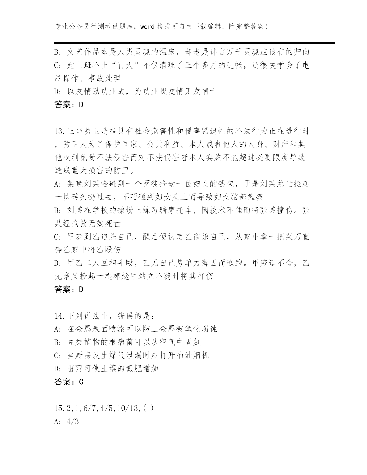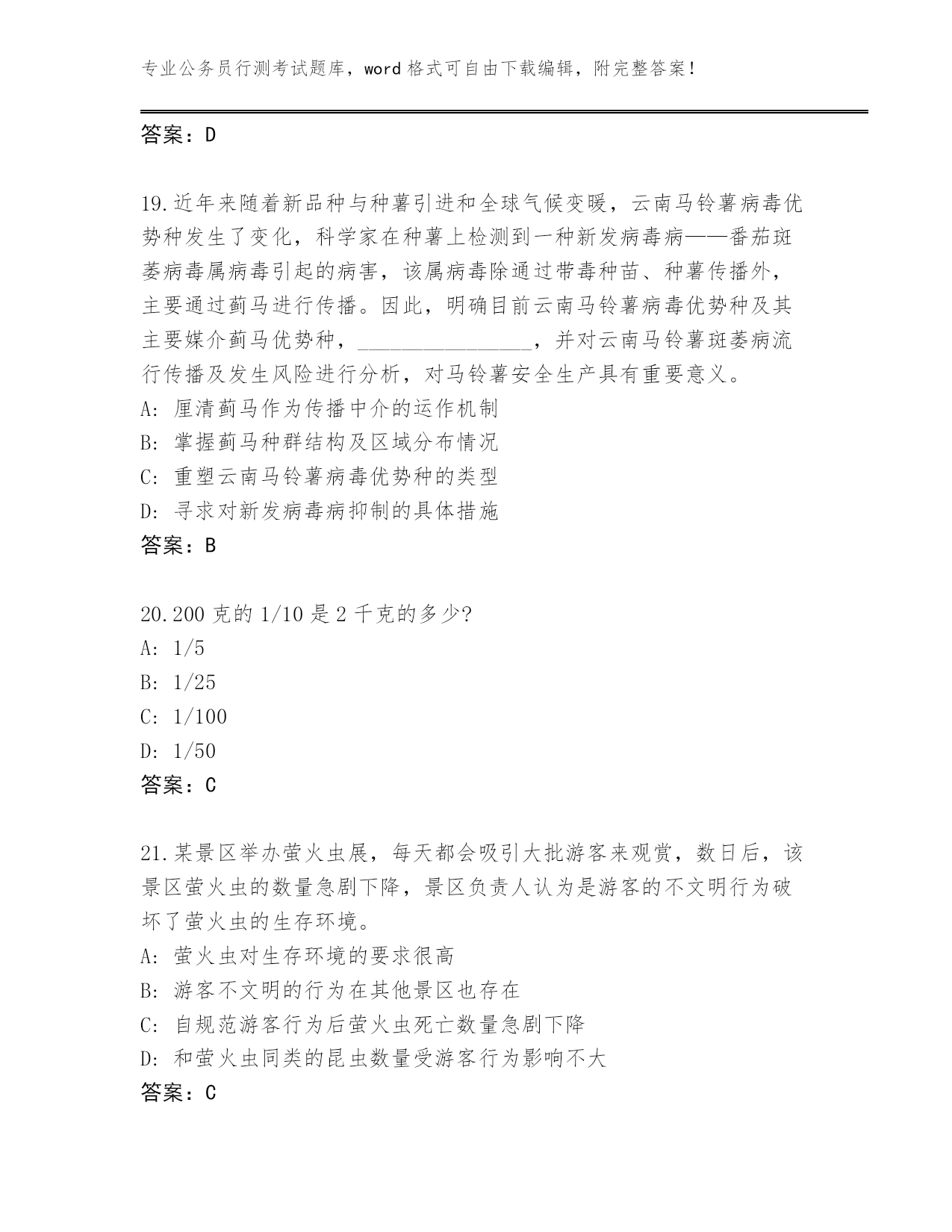 甘肃省礼县2024年公务员行测考试真题题库含答案(培优)