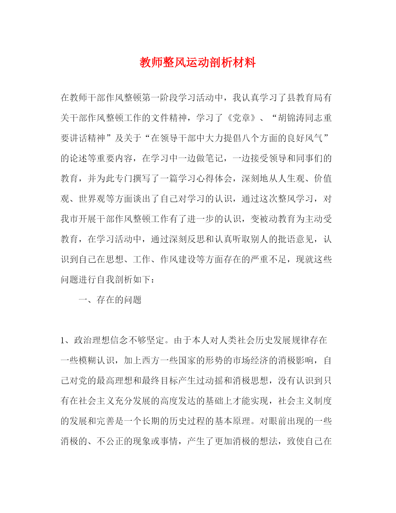 PAGE此资料由网络收集而来,如有侵权请告知上传者立即删除。资料共分享,我们负责传递知识。教师整风运动剖析材料在教师干部作风整顿第一阶段学习活动中,我认真学习了县教育局有关干部作风整顿工作的文件精神,学习了《党章》、“胡锦涛同志重要讲话精神”及关于“在领导干部中大力提倡八个方面的良好风气”的论述等重要内容,在学习中一边做笔记,一边接受领导和同事们的教育,并为此专门撰写了一篇学习心得体会,深刻地从人生观、价值观、世界观等方面谈出了自己对学习的认识,通过这次整风学习,对我市开展干部作风整顿工作有了进一步的认识,变被动教育为主动受教育,在学习活动中,通过深刻反思和认真听取别人的批语意见,认识到自己在思想、工作、作风建设等方面存在的严重不足,现就这些问题进行自我剖析如下:一、存在的问题1、政治理想信念不够坚定。由于本人对人类社会历史发展规律存在一些模糊认识,加上西方一些国家的形势的市场经济的消极影响,自己对党的最高理想和最终目标产生过动摇和消极思想,没有认识到只有在社会主义充分发展的高度发达的基础上才能实现,社会主义制度的发展和完善是一个长期的历史过程的基本原理。对眼前出现的一些消极的、不公正的现象或事情,产生了更加消极的想法,致使自己在思想上,行动上出现了不应该出现的问题。2、政策理论水平不高。对党的路线、方针、政策的理解只停留在一般水平上,没有进行深刻的研究和掌握。对先进文化的理解,不够深刻,对教育工作方面的法律、法规、政策掌握的比较少,也比较肤浅。3、自身建设要求不严。没有严格按照一个品德高尚的人民教师的标准要求自己,廉洁自律意识不强。个人主义、享乐主义、攀比思想经常在头脑中存在,艰苦奋斗作风和过紧日子的思想淡化,有个人名利思想。4、对工作责任心不强。在工作中,不严格要求自己,组织观念落后,集体思想不强,对原则性的东西,思想不敏感,听不得人说好话。5、联系群众不够紧密。坚持全心全意为人民服务和群众利益无小事原则做得不够,没有真正同群众打成一片,特别是在扶贫助残,捐次救困、助学等方面,没有完全尽到自己力所能及的事情,没有做到时刻为群众之所想,急群众之所急。二、存在问题的原因1、理论学习不够。对马克思、列宁主义、毛泽东思想和xxx理论、“三个代表”重要思想、胡锦涛同志关于“八荣八耻”等重要论述学习不够深入,对其科学的观点理解得不深透,对建设社会主义和谐社会和落实科学发展观的基本思想没有完整的认识,平时学习只是流于形式,掌握的也只是只言片语,学习缺乏深刻的思考,没有做到真正用马克思列宁主义的立场、观点和方法观察事物,研究新情况、处理新问题。思想和工作存在有主观性、局限性和片面性,站的不高,想的不远。2、集体主义思想不强。没有真正理解和掌握群众观点是马克思辩证唯物主义的一个基本观点。在牢固树立群众观点,把群众利益放在第一位,坚持群众利益无小事原则方面没有做到想群众所想,对待集体利益考虑得不周全,很多时候未完全把集体利益当作是自己应该很好保护的,总是认为个人在集体中的重要作用,为了个人利益,损害一点集体利益没关系,因此对认识上存在很大的差距,行动上表现出来了一定的有损集体利益的事。3、原则意识不强。总是错误的认识,只要是自己做了好事,就应该对得起别人,对得对学校,往往在做好事的同时,也是做着着有损原则的坏事。在对待什么是好事,什么是坏事上,自己没有一个原则性的思考,想当然,好人主义思想严重,导致事出了一些有损单位形象,有损集体利益的事。4、主动意识不够。工作中只注重对自己份内的事情的考虑,没有站在更的立场想问题。总是认识自己的工作能完成,不拖学校的后腿就行,不会积极主动的去为学校着想,不会主动地为别人着想,干点工作就会想到报酬,或者就是得过且过,不思进取,不精益求精。