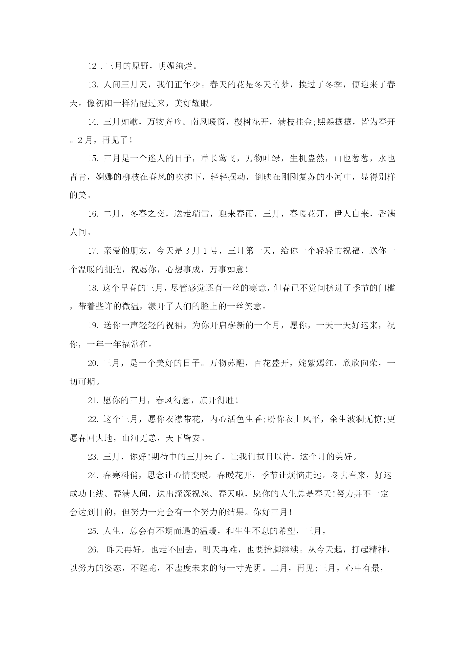 三月春天的板报文案春天来了,真美啊!冰化了,花开了,鸟儿在叫,春风在吹,啊!美极了!我爱你啊,美丽的春天!百花齐放的春天!春天早就来了,只是人们没有察觉到。这,最像少年的初恋,当隐隐约约朦朦胧胧有些说不清感觉的时候,在茫然寻求爱的时候,恰不知爱已经在身边,而且这爱是最真实最宝贵的爱。春天就是这样,并不是在那花草萌发的时刻萌发,也不在那烟雨朦胧里朦胧,不会那样滋生,不会那样迟缓,那样拖拉,而是在萧寒谢落中凝聚,在万物的复苏里绽发。所以,春天不仅仅是鸟语花香,不仅仅是阳光明媚,更多的是醒悟,是成长,是变幻,是要改变所有的以往。这样说来,春天来得就很早了。小燕子匆匆忙忙的从南方飞来,它们的到来为春天增添了许多生机。春天的景色太美丽了我非常的喜欢这美丽的春天!随着春姑娘轻快的步伐,青青的小草,破土而出,偷偷的从土里钻出来,嫩嫩的,绿绿的。在公园里,到处都可以看见这一些生命力顽强的小草。也是一拱彰显着生命神奇的画廊。含着春的气息的南风,吹着他的头发,报春的燕子往来梭巡,空中充满了它们的呢喃的繁音,新生的绿草,笑迷迷地软瘫在地上,象是正和低着头的蒲公英的小黄花在绵绵情话;杨柳的柔条很苦闷似的聊为摇摆,它显然是因为看见身边的桃树还只有小嫩芽?,觉得太寂寞了。春天在哪里?春天在那青翠的万年青上,你瞧!在密密麻麻的叶子里,冒出几颗绿豆大的小嫩芽,多么像竹笋呀!万年青换上了新装,再也不穿墨绿色的老制服了,而是穿上了浅绿色的T恤衫。找到了,春天在这里!有没有那么一个世界,永远不天黑,星星太阳万物都听我的指挥,月亮不忙着圆缺,春天不远走。春风吹,青蛙从洞里爬出来了。拥抱春雨窗外频敲细雨声,为谁送得许多情?小草早早钻出地面,带着泥土的气息,在春风中舒展着身子,春雨把她打扮得更加漂亮.妩媚……三月如期你好春天。愿时光能缓,故人不散,愿你的身后总用力量,独闯的日子里不孤单,愿你有诗有梦,有坦荡也远方,愿你有孤独烈酒,也有清风和自由。12.三月的原野,明媚绚烂。人间三月天,我们正年少。春天的花是冬天的梦,挨过了冬季,便迎来了春天。像初阳一样清醒过来,美好耀眼。三月如歌,万物齐吟。南风暖窗,樱树花开,满枝挂金;熙熙攘攘,皆为春开。2月,再见了!三月是一个迷人的日子,草长莺飞,万物吐绿,生机盎然,山也葱葱,水也青青,婀娜的柳枝在春风的吹拂下,轻轻摆动,倒映在刚刚复苏的小河中,显得别样的美。二月,冬春之交,送走瑞雪,迎来春雨,三月,春暖花开,伊人自来,香满人间。亲爱的朋友,今天是3月1号,三月第一天,给你一个轻轻的祝福,送你一个温暖的拥抱,祝愿你,心想事成,万事如意!这个早春的三月,尽管感觉还有一丝的寒意,但春已不觉间挤进了季节的门槛,带着些许的微温,漾开了人们的脸上的一丝笑意。送你一声轻轻的祝福,为你开启崭新的一个月,愿你,一天一天好运来,祝你,一年一年福常在。三月,是一个美好的日子。万物苏醒,百花盛开,姹紫嫣红,欣欣向荣,一切可期。愿你的三月,春风得意,旗开得胜!这个三月,愿你衣襟带花,内心活色生香;盼你衣上风平,余生波澜无惊;更愿春回大地,山河无恙,天下皆安。三月,你好!期待中的三月来了,让我们拭目以待,这个月的美好。春寒料俏,思念让心情变暖。春暖花开,季节让烦恼走远。冬去春来,好运成功上线。春满人间,送出深深祝愿。春天啦,愿你的人生总是春天!努力并不一定会达到目的,但努力一定会有一个努力的结果。你好三月!人生,总会有不期而遇的温暖,和生生不息的希望,三月,昨天再好,也走不回去,明天再难,也要抬脚继续。从今天起,打起精神,以努力的姿态,不蹉跎,不虚度未来的每一寸光阴。二月,再见;三月,心中有景,便春暖花开,愿你所有美好如约而至!