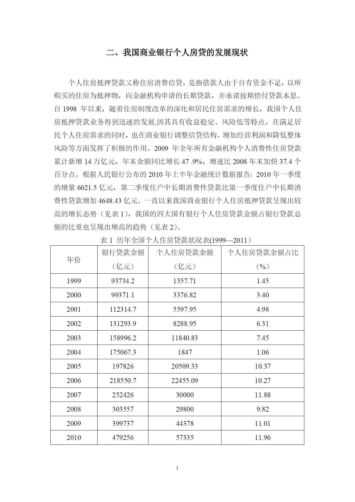 PAGE1内容摘要近几年,随着城市化进程的加快和居民收入的提高,我国居民对住房的需求日趋旺盛,居民个人住房消费市场非常活跃。个人住房抵押贷款已经成为促进消费、拉动经济增长的重要力量,对房地产金融的稳定发展也起着至关重要的作用,同时,商业银行也将个人贷款视作一项优质资产和重要的利润增长点。然而近年来银行实际运作情况表明:个人住房贷款业务的安全性不容乐观,贷款风险正在日益增加。随着我国房地产市场的持续火爆,国家采取了一系列的宏观调控措施,抑制房地产市场的过度投机,面对新环境、新问题,本文对当前我国商业银行个人房贷业务的风险状况进行了分析,并提出了风险防范的对策。关键词:个人住房贷款商业银行风险防范对策目录TOC\o"1-3"\h\uHYPERLINK\l_Toc1796一、个人住房贷款的含义、特点PAGEREF_Toc17961HYPERLINK\l_Toc24474(一)个人房贷的含义PAGEREF_Toc244741HYPERLINK\l_Toc31556(二)个人房贷的特点PAGEREF_Toc315561HYPERLINK\l_Toc15923二、我国商业银行个人房贷的发展现状PAGEREF_Toc159232HYPERLINK\l_Toc24849三、商业银行个人房贷的风险分析PAGEREF_Toc248492HYPERLINK\l_Toc27944(一)市场风险PAGEREF_Toc279442HYPERLINK\l_Toc9581.利率的风险PAGEREF_Toc9582HYPERLINK\l_Toc11762.流动性风险PAGEREF_Toc11763HYPERLINK\l_Toc5282(二)信用风险PAGEREF_Toc52823HYPERLINK\l_Toc193091.来自贷款人PAGEREF_Toc193093HYPERLINK\l_Toc220842.来自房地产开发商PAGEREF_Toc220844HYPERLINK\l_Toc154343.社会信用环境和信用体系不健全的风险PAGEREF_Toc154344HYPERLINK\l_Toc31240(三)银行风险PAGEREF_Toc312404HYPERLINK\l_Toc99931.银行内部人员的操作风险和道德风险PAGEREF_Toc99934HYPERLINK\l_Toc31412.银行同业间恶性竞争的风险PAGEREF_Toc31415HYPERLINK\l_Toc31492四、商业银行个人住房贷款风险的防范对策PAGEREF_Toc314925HYPERLINK\l_Toc27102(一)风险认知策略PAGEREF_Toc271025HYPERLINK\l_Toc26810(二)风险规避策略PAGEREF_Toc268105HYPERLINK\l_Toc21465(三)风险降低策略PAGEREF_Toc214656HYPERLINK\l_Toc15763(四)风险化解策略PAGEREF_Toc157636HYPERLINK\l_Toc6287参考文献PAGEREF_Toc62876PAGE8商业银行个人房贷的风险分析与对策住房是人们的基本生活保障.改善住房条件关系到人们生活质量的提高.因此发展住房金融成为真正启动消费信贷的关键问题,而商业银行个人住房贷款作为住房金融重点支柱部分一直是社会各界关注的热点话题。伴随个人住房贷款的快速增长,房贷不良贷款率也开始有所上升。2011年以来,针对房价迅速攀升、炒房现象日益严重的问题,以“国十条”为代表的房产新政陆续出台,政府对房市的调控力度越来越强,未来中国房地产市场的价格走势众说纷纭,由此进一步增加了商业银行个人住房贷款的风险性和不确定性。个人住房贷款的含义、特点(一)个人房贷的含义个人住房贷款是指银行向借款人发放的用于购买自用普通住房的贷款,借款人申请住房贷款时必须提供担保。目前,个人住房贷款主要有委托贷款、自营贷款和组合贷款三种类型。个人住房委托贷款是指住房公积金管理中心运用住房公积金委托商业银行发放的个人住房贷款,也称公积金贷款;住房公积金贷款是政策性个人住房贷款.一方面其利率低;另一方面其主要是为中低收入的公积金缴存职工提供;个人住房自营贷款是以银行信贷资金为来源向购房者发放的贷款,也称商业性个人住房贷款;个人