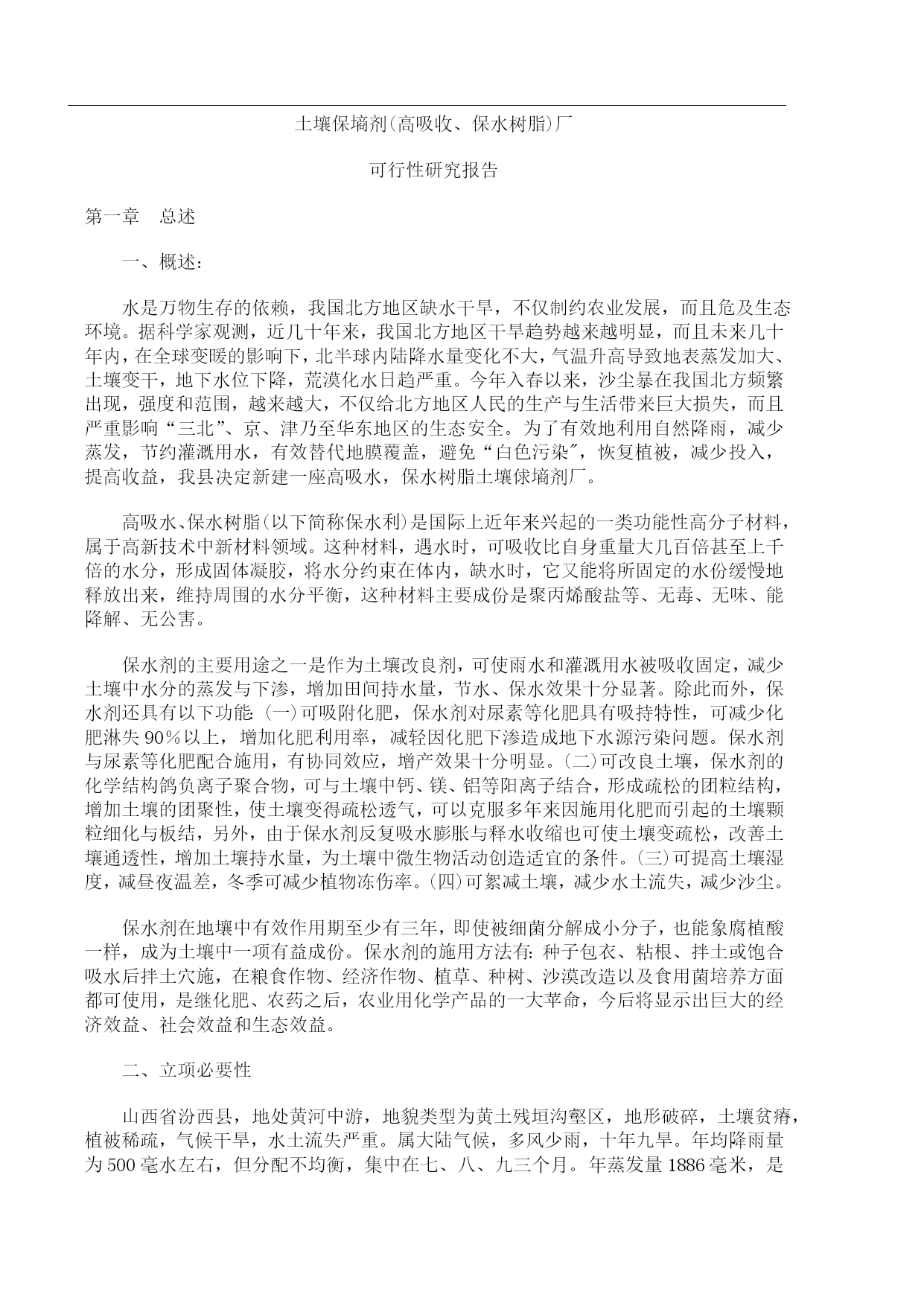 最新土壤保墒剂(高吸收、保水树脂)厂-经典通用.doc