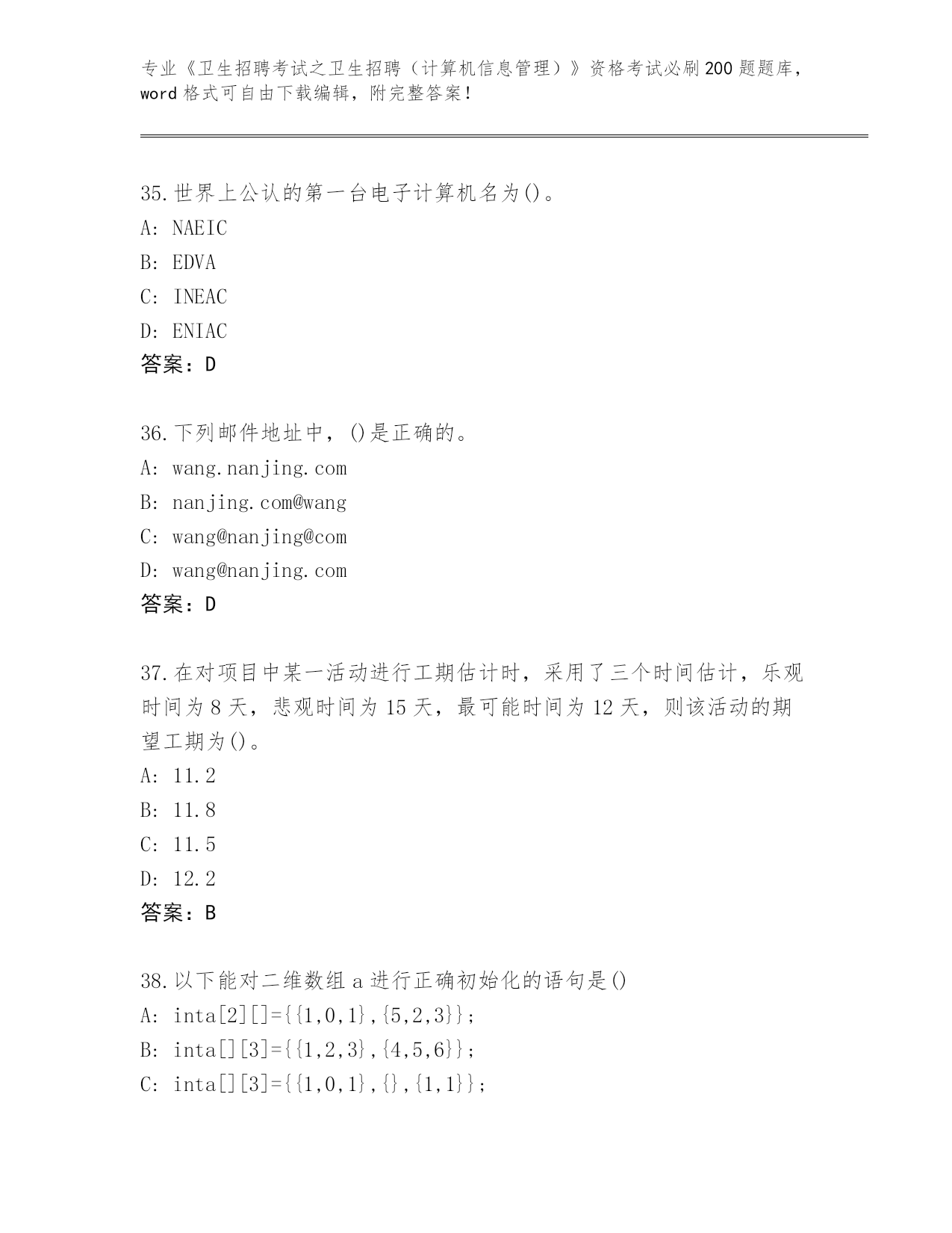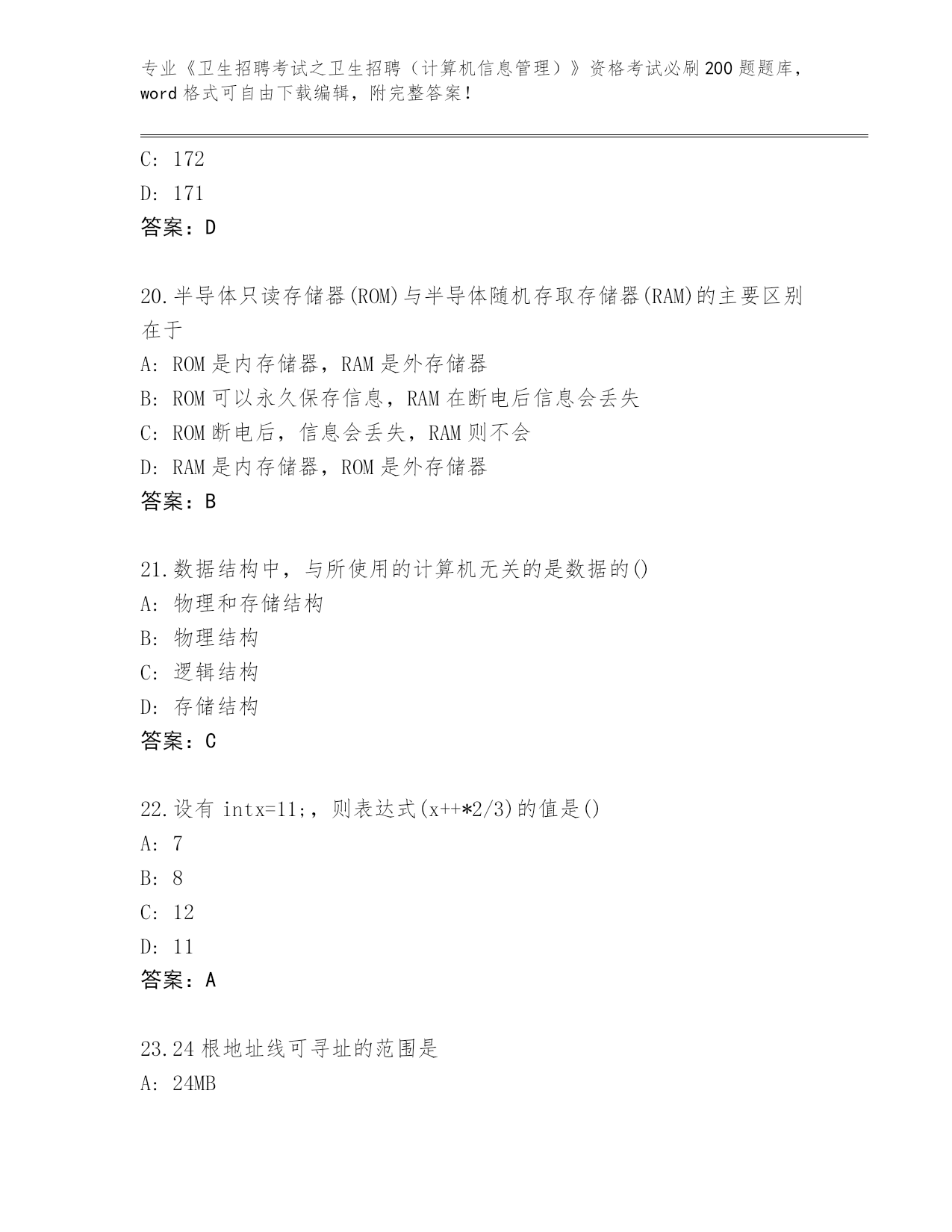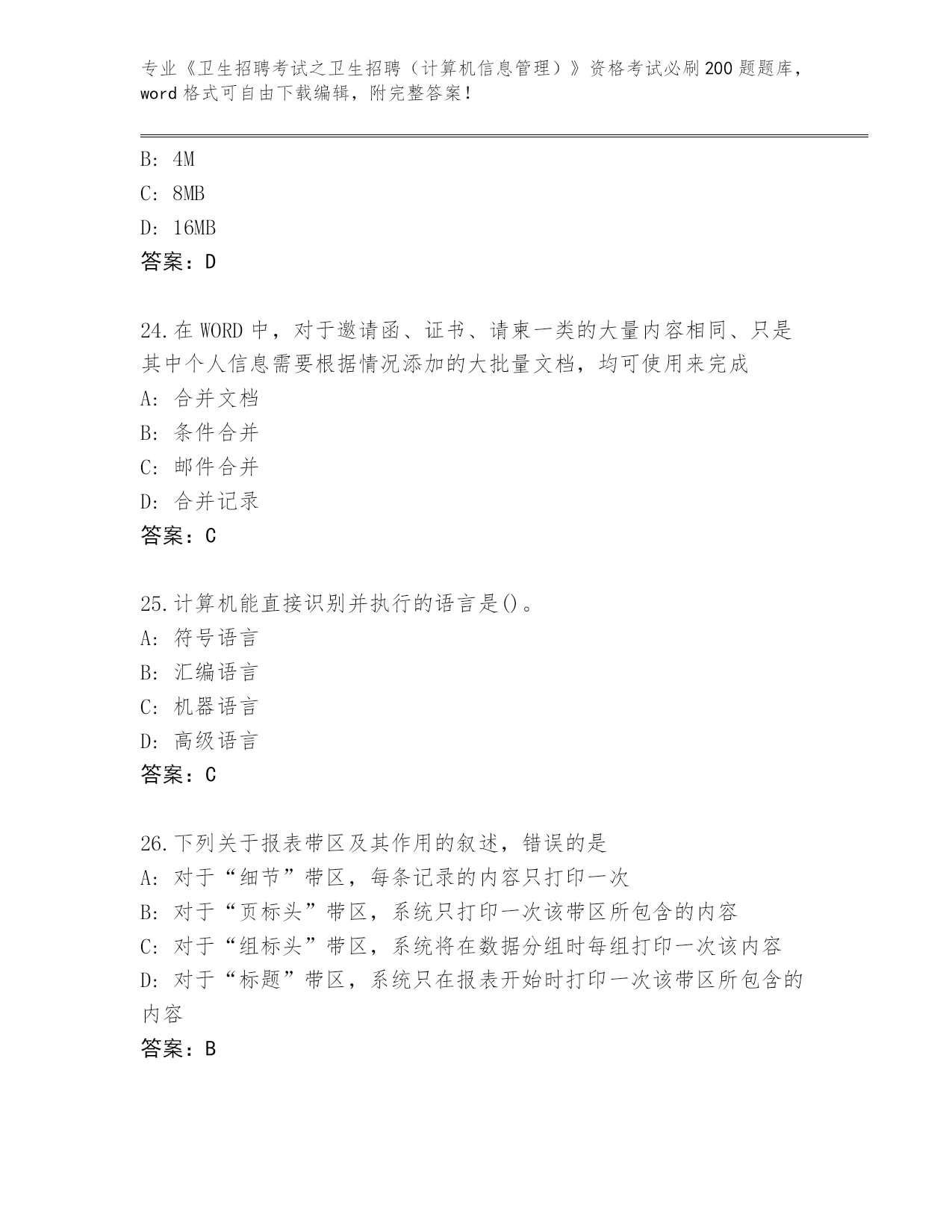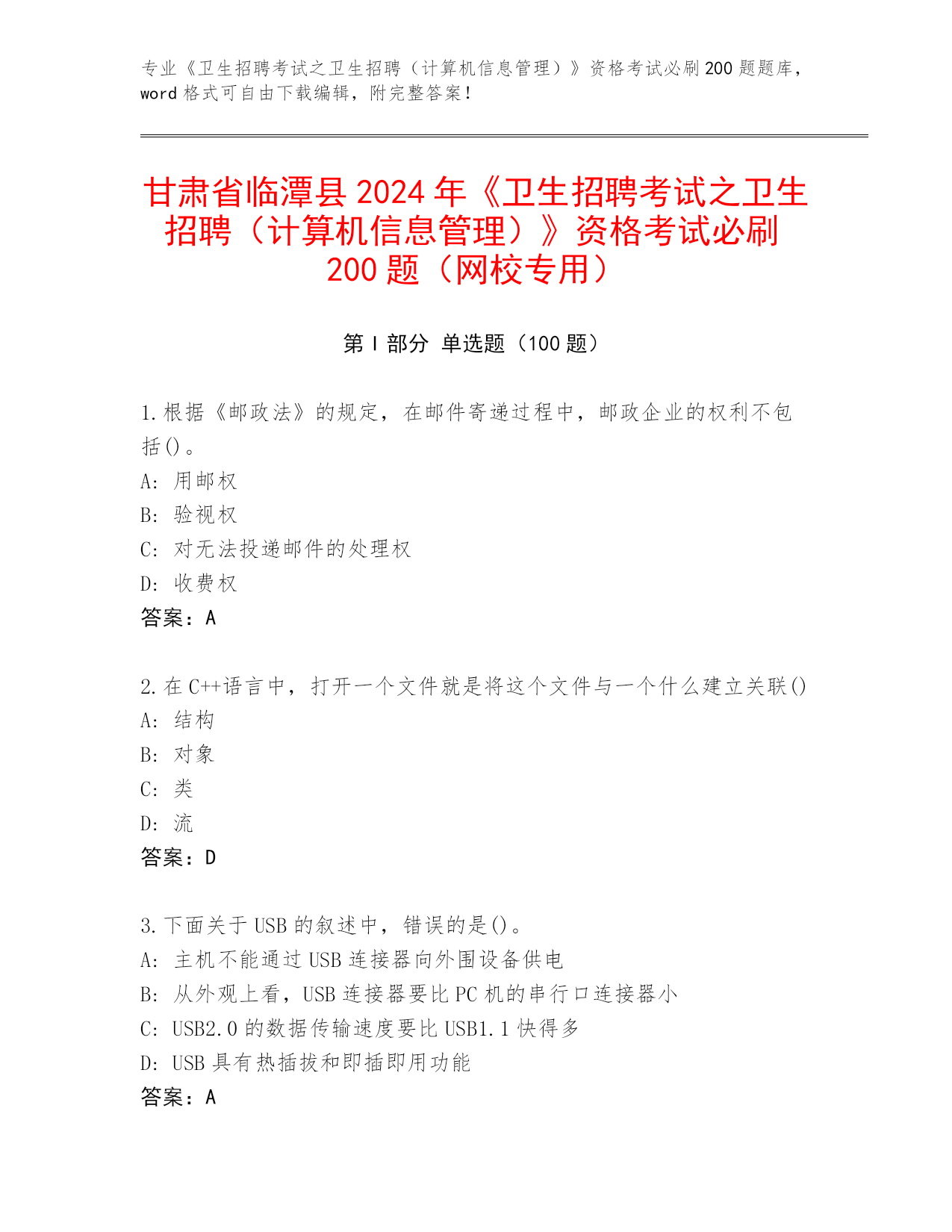 甘肃省临潭县2024年《卫生招聘考试之卫生招聘(计算机信息管理)》资格考试必刷200题(网校专用)