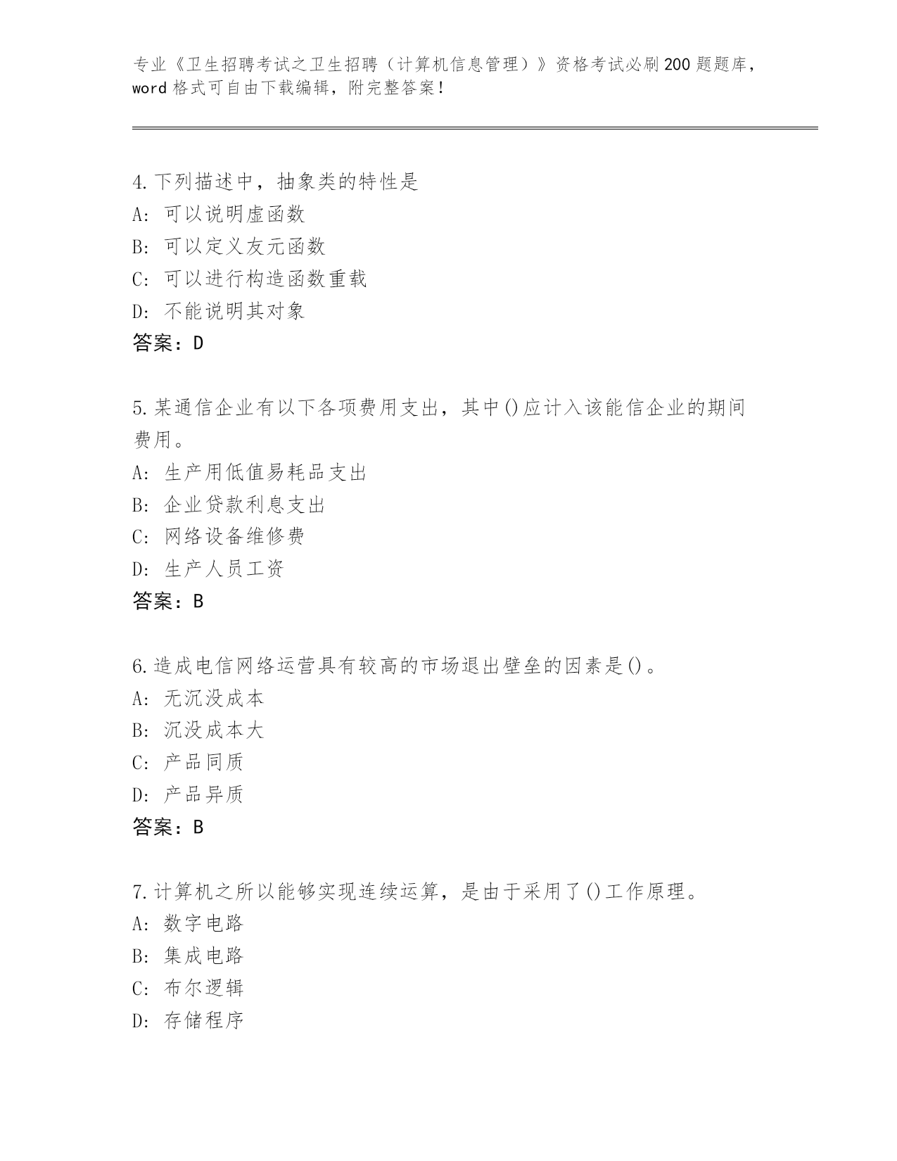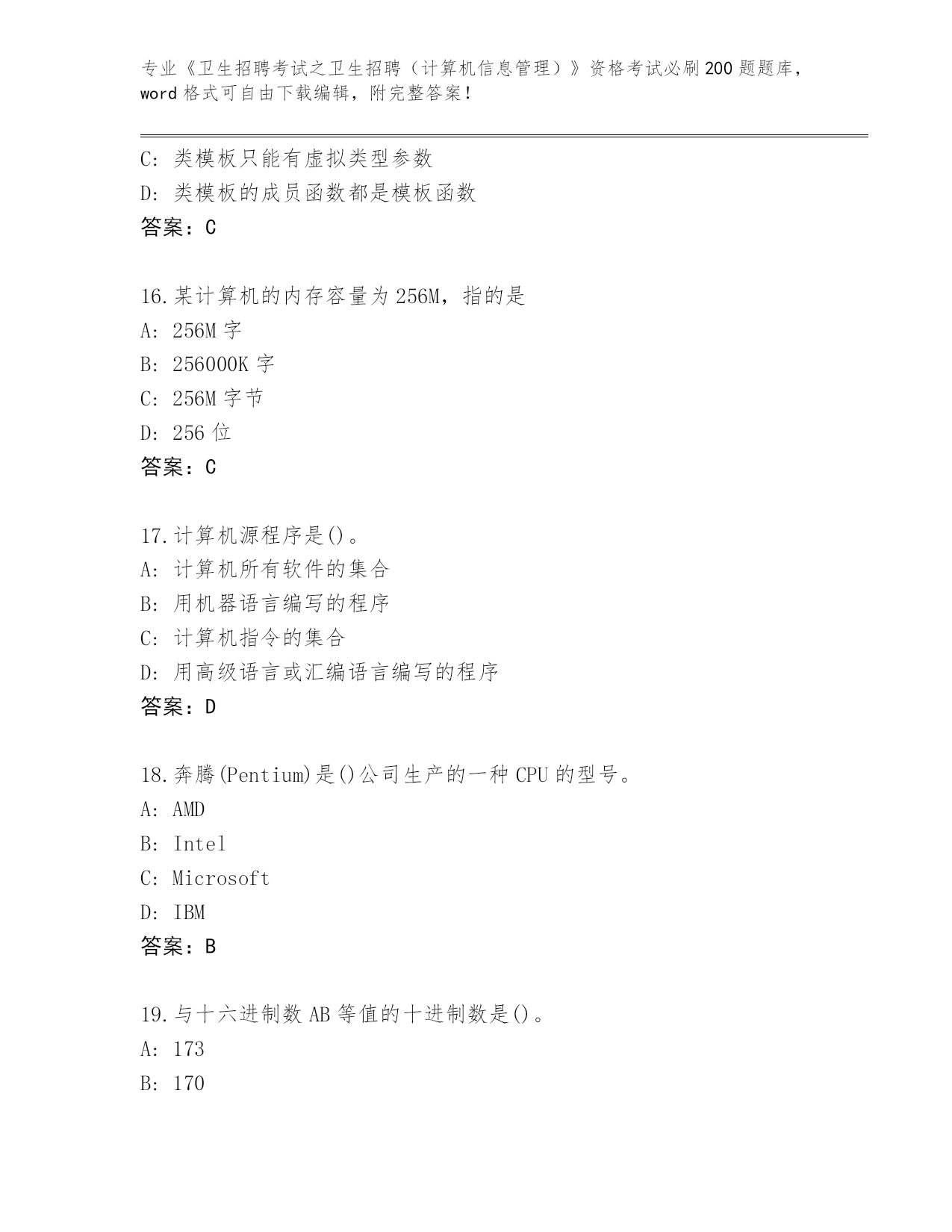 2024甘肃省《卫生招聘考试之卫生招聘(计算机信息管理)》考试必背200题王牌题库(网校专用)