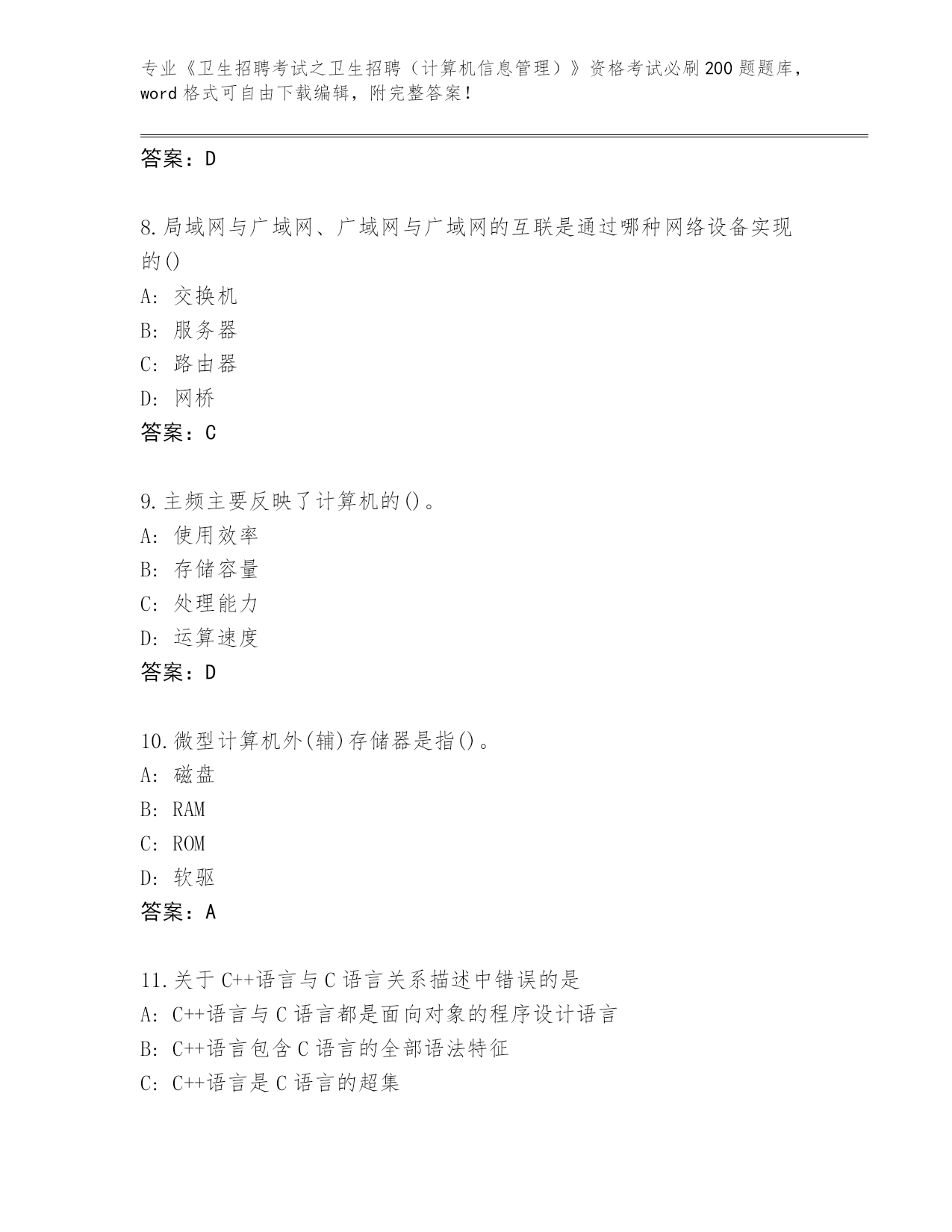 广东省《卫生招聘考试之卫生招聘(计算机信息管理)》考试必刷200题题库及答案【网校专用】
