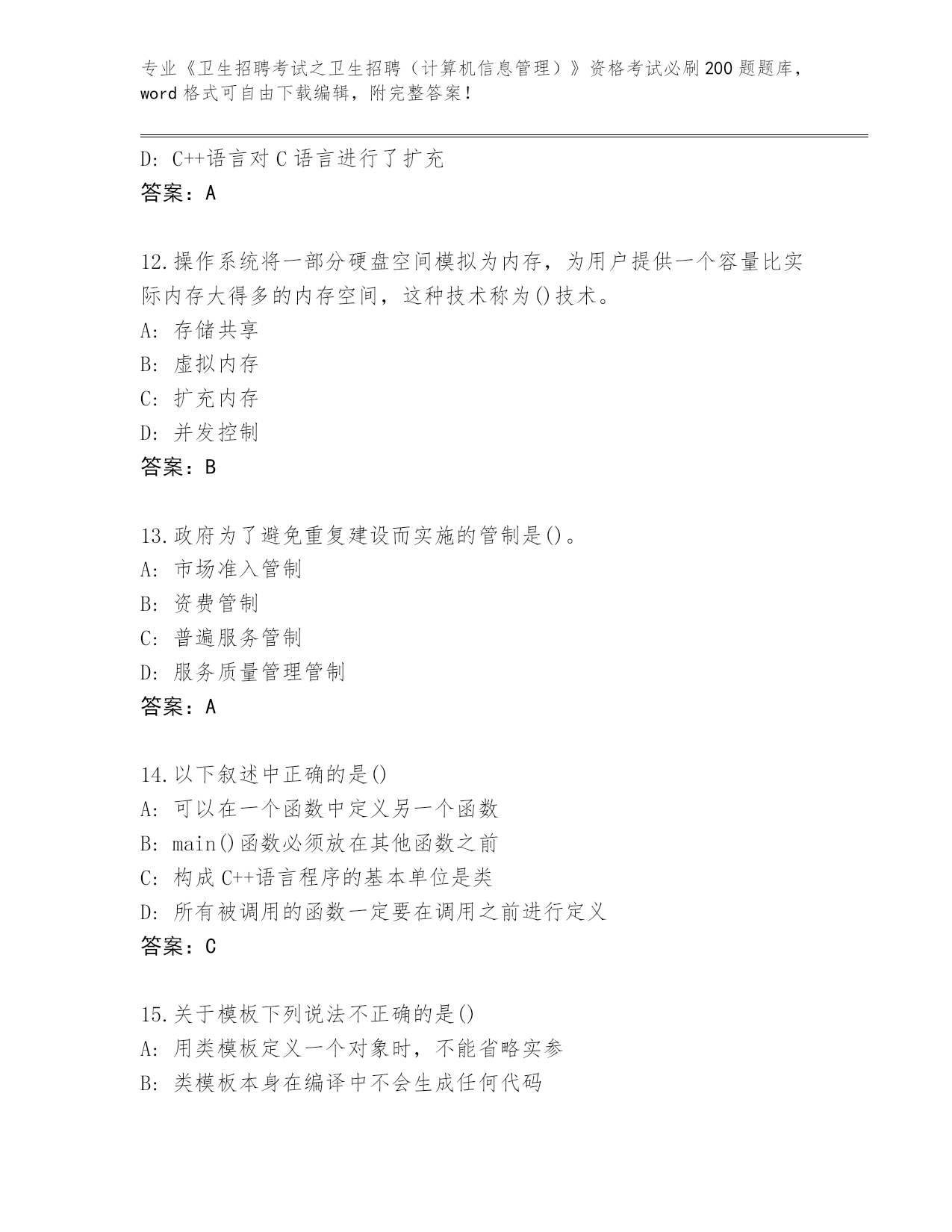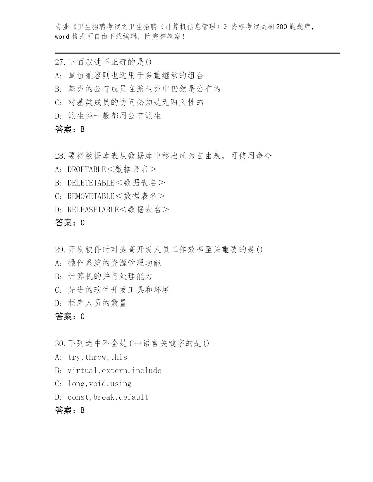 甘肃省甘州区《卫生招聘考试之卫生招聘(计算机信息管理)》考试必刷200题内部题库及答案【网校专用】