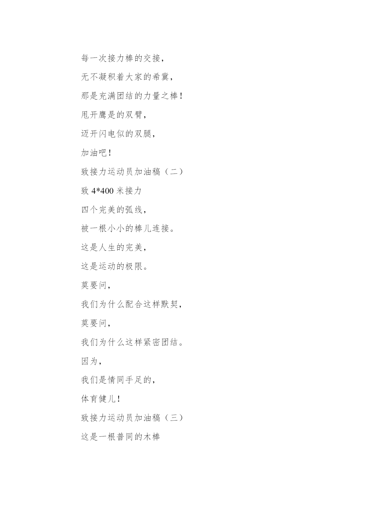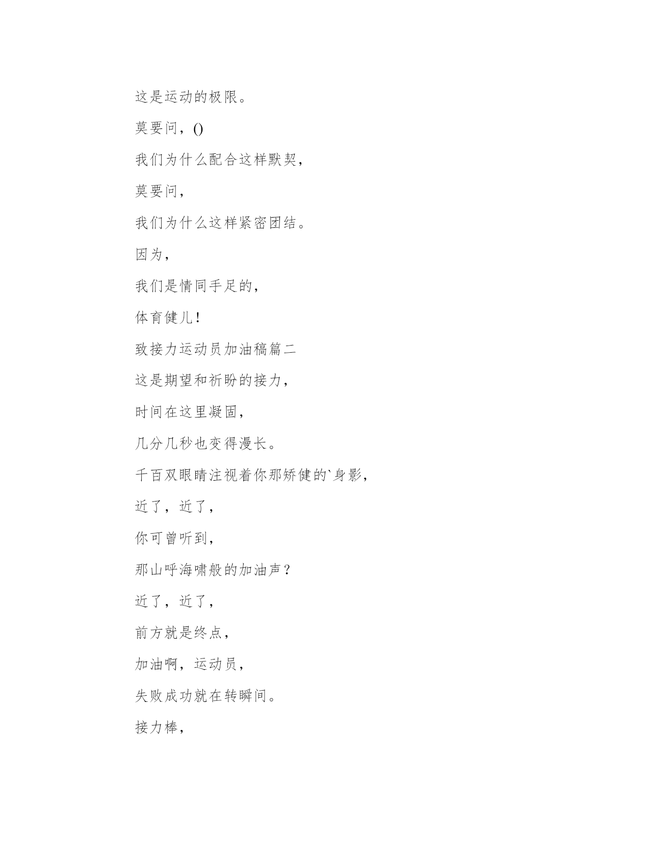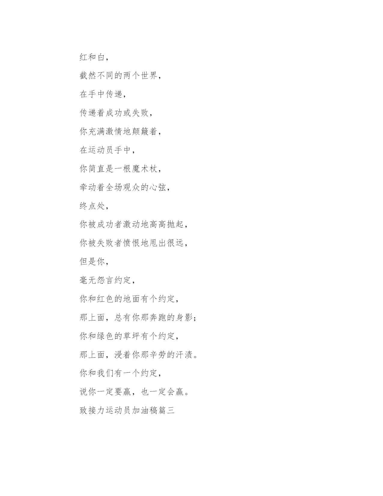 最新致接力运动员加油稿 接力运动员加油稿(通用12篇).docx