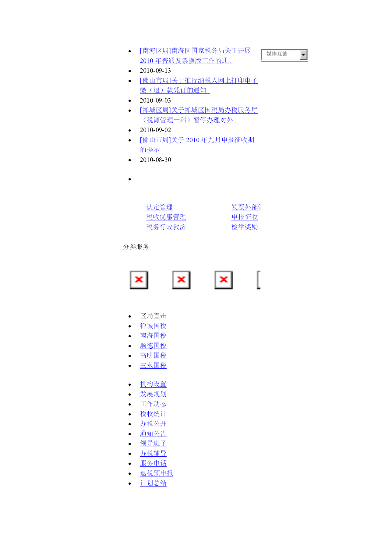 HYPERLINK"http://www.gd-n-tax.gov.cn"\t"_blank"广东省国家税务局HYPERLINK"http://www.foshan.gov.cn/"\t"_blank"佛山市政府网HYPERLINK"http://www.foshan.gov.cn"\t"_blank"HYPERLINK""中文版|HYPERLINK""繁体版|HYPERLINK""英文版今天是2010年11月23日星期二HYPERLINK"index.jsp"首页HYPERLINK"/portal/site/site/portal/fsntaxIV/zwgk.portal?categoryId=3IAUXSY2Q5JR4KKU1ILHGIS4SFRAP8O8"\t"_self"政务公开HYPERLINK"/portal/site/site/portal/fsntaxIV/zwgk_blue1.portal?categoryId=D57BB6Z2FHY082YQLJO4P9V8EYOJ0USL"\t"_self"公开制度HYPERLINK"/portal/site/site/portal/fsntaxIV/zwgk_blue2.portal?categoryId=LAFAVAQW5R8XC6LGUVEBNM2N1UCFOCCH"\t"_self"公开规定HYPERLINK"/portal/site/site/portal/fsntaxIV/zwgk_blue2.portal?categoryId=IXN45I77CABJO71VWL5UVYLOMDY6BQ4N"\t"_self"公开指南HYPERLINK"/portal/site/site/portal/fsntaxIV/zwgk_blue2.portal?categoryId=1TMGBBVVWEC7RJ63YM8JB7T0SRID6T2W"\t"_self"依申请公开HYPERLINK"/portal/site/site/portal/fsntaxIV/zwgkml.portal?categoryId=FH6OWRWWBQ3DTV7V486JGU1Z9O5NHY3L"\t"_self"政务公开目录HYPERLINK"http://www.foshan.gov.cn/fspubgov/ssdw/0620/?ClassInfoId=2775"\t"_blank"部门信息公开目录HYPERLINK"/portal/site/site/portal/fsntaxIV/zcfg.portal?categoryId=HPYNCBY8OGW2F53757MOYSWOYEOUP4IB"\t"_self"政策法规HYPERLINK"http://portal.gd-n-tax.gov.cn/policy/jsp/index.jsp"\t"_self"法规库HYPERLINK"/portal/site/site/portal/fsntaxIV/zwgk_blue2.portal?categoryId=Z8I0ZC73R9KPCR2N3KLYVENGGNNIF4O"\t"_self"政策解读HYPERLINK"http://www.chinatax.gov.cn/n480462/n480513/n481024/index.html"\t"_self"网送税法HYPERLINK"/portal/site/site/portal/fsntaxIV/zwgk_blue1.portal?categoryId=DJHSXIR3T5K73PSH7A78H44YZ2BS2QZM"\t"_self"通知公告HYPERLINK"/portal/site/site/portal/fsntaxIV/zwgk_blue2.portal?categoryId=7MX7E8C5N6NQEMX53TGE8XVM6EPUETS3"\t"_self"文书失效公告HYPERLINK"/portal/site/site/portal/fsntaxIV/zwgk_blue2.portal?categoryId=NIU0C44CLZZKZAN69MKQE4Y59XAGJKPX"\t"_self"办税通知HYPERLINK"/portal/site/site/portal/fsntaxIV/zwgk_blue2.portal?categoryId=H2YO3583GO6UVVQ1QVNQ6JKU4AIVGKRJ"\t"_self"纳税信用等级评定结果HYPERLINK"/portal/sit