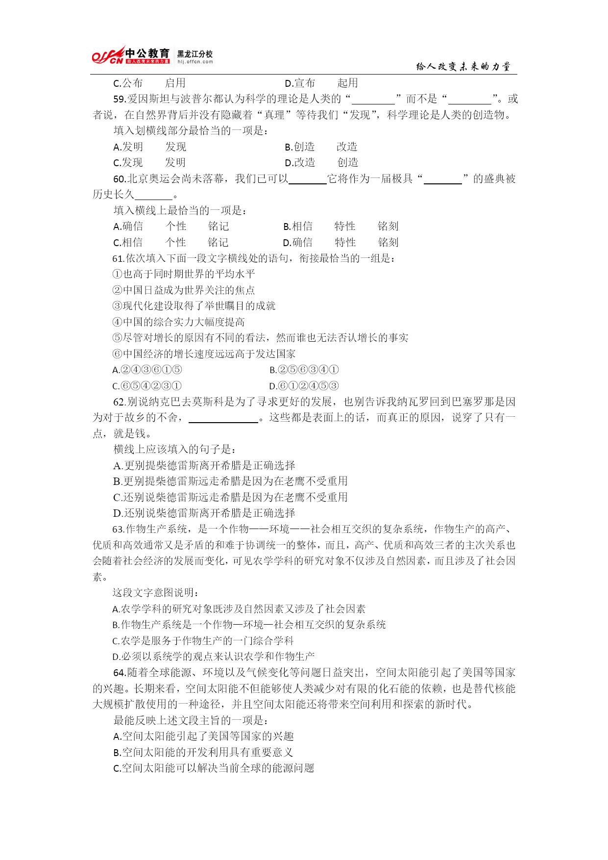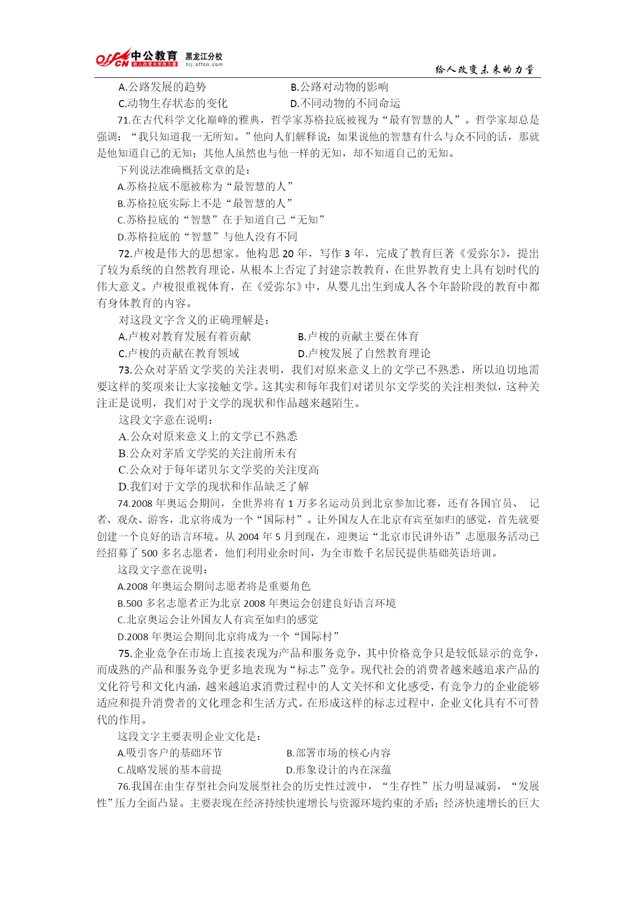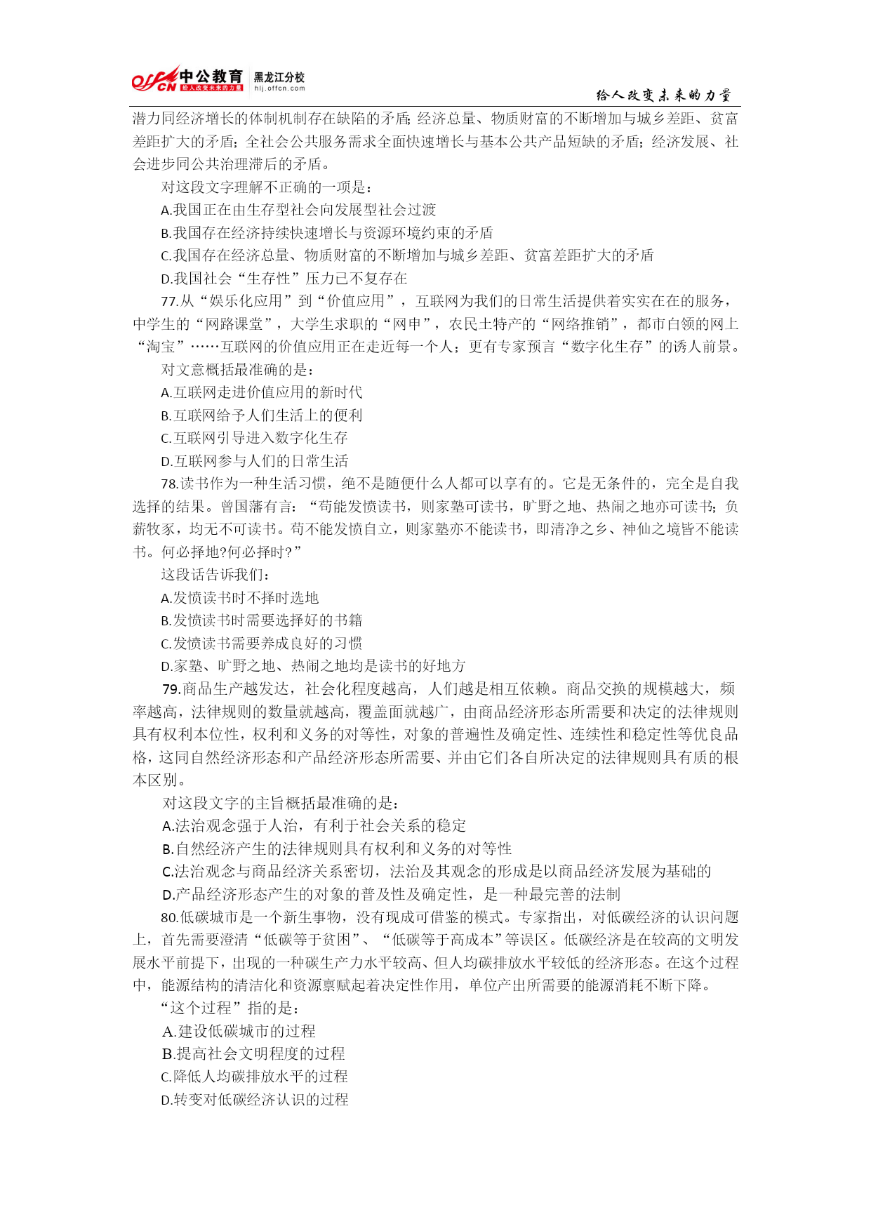黑龙江公务员考试模拟试题及答案:言语理解与表达部分(第一套)