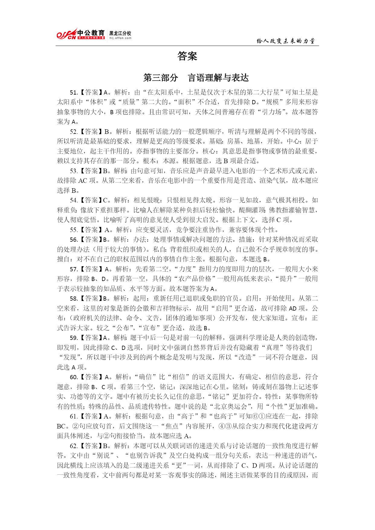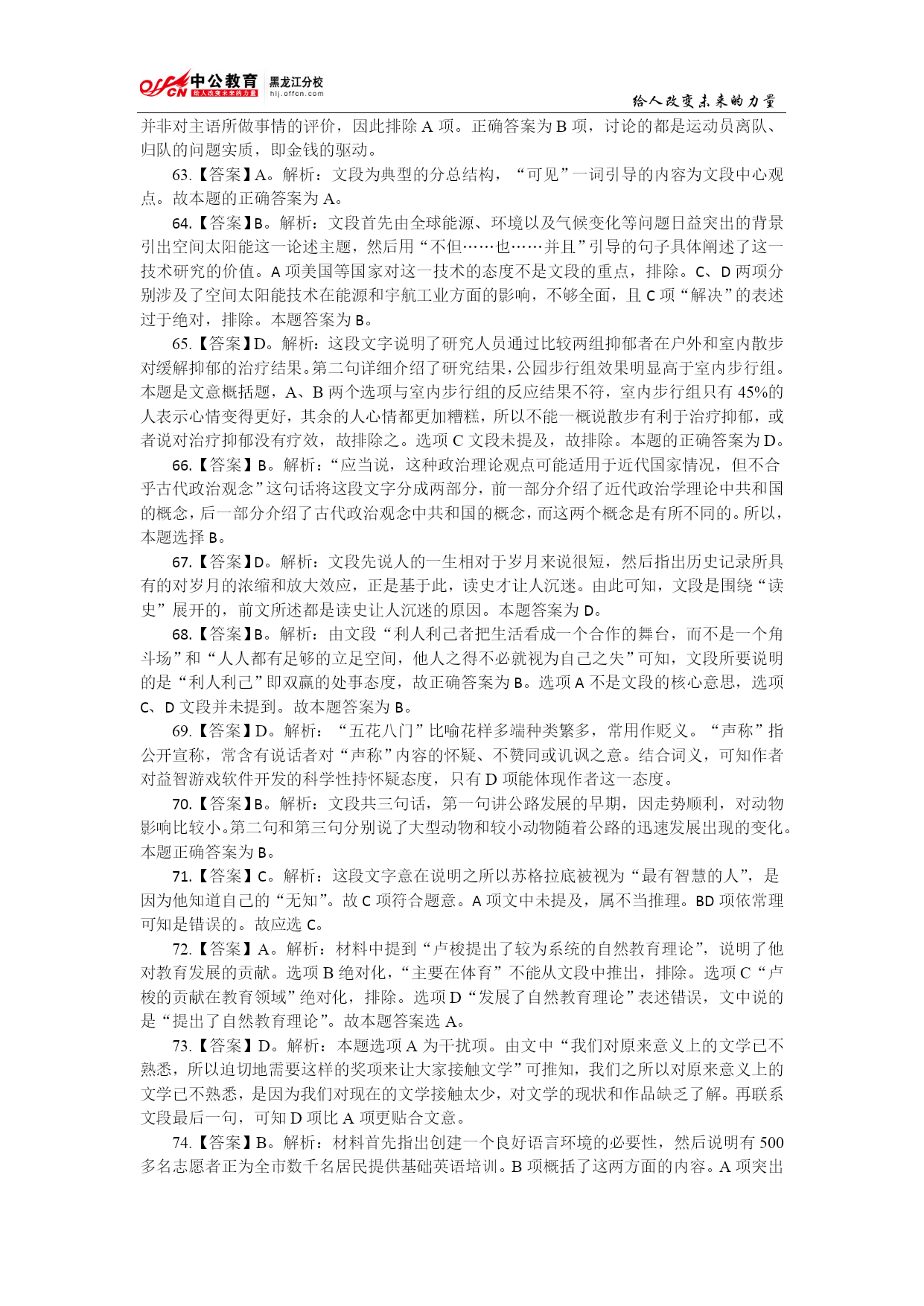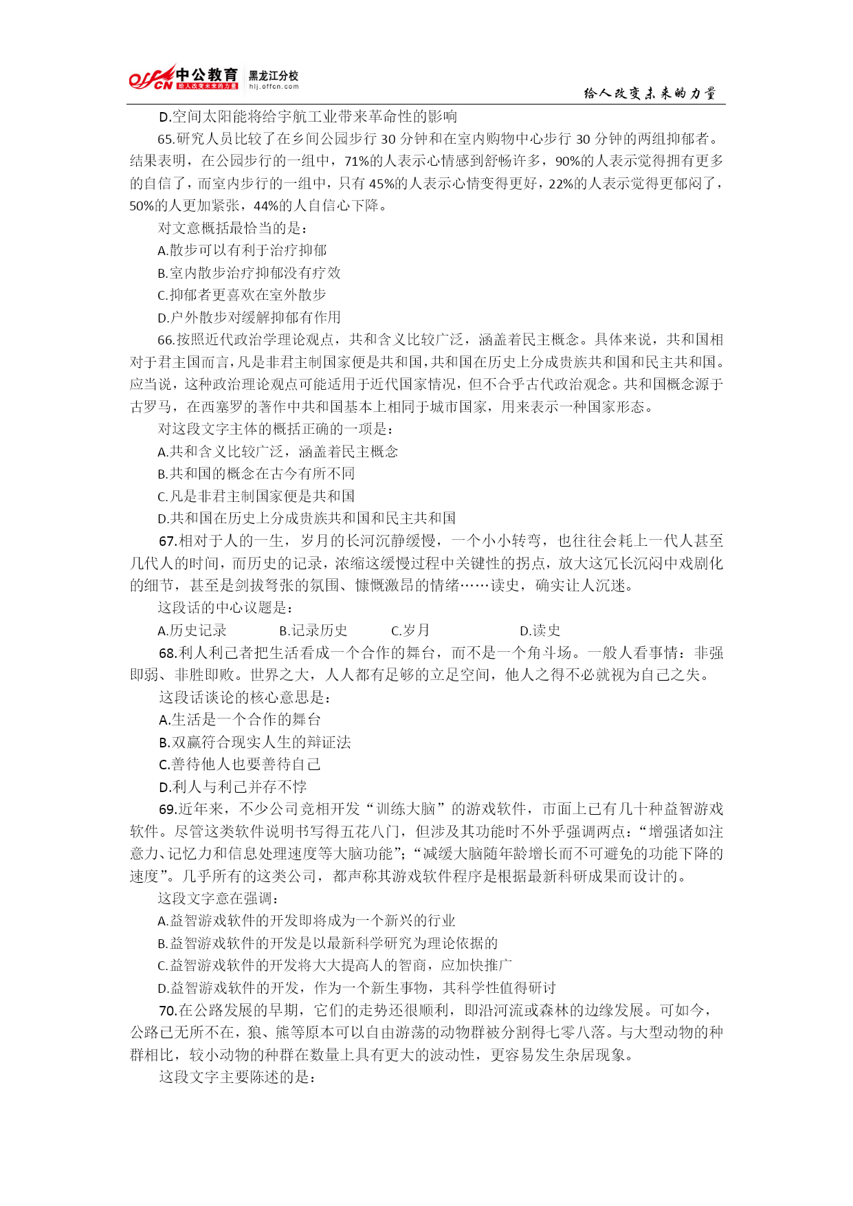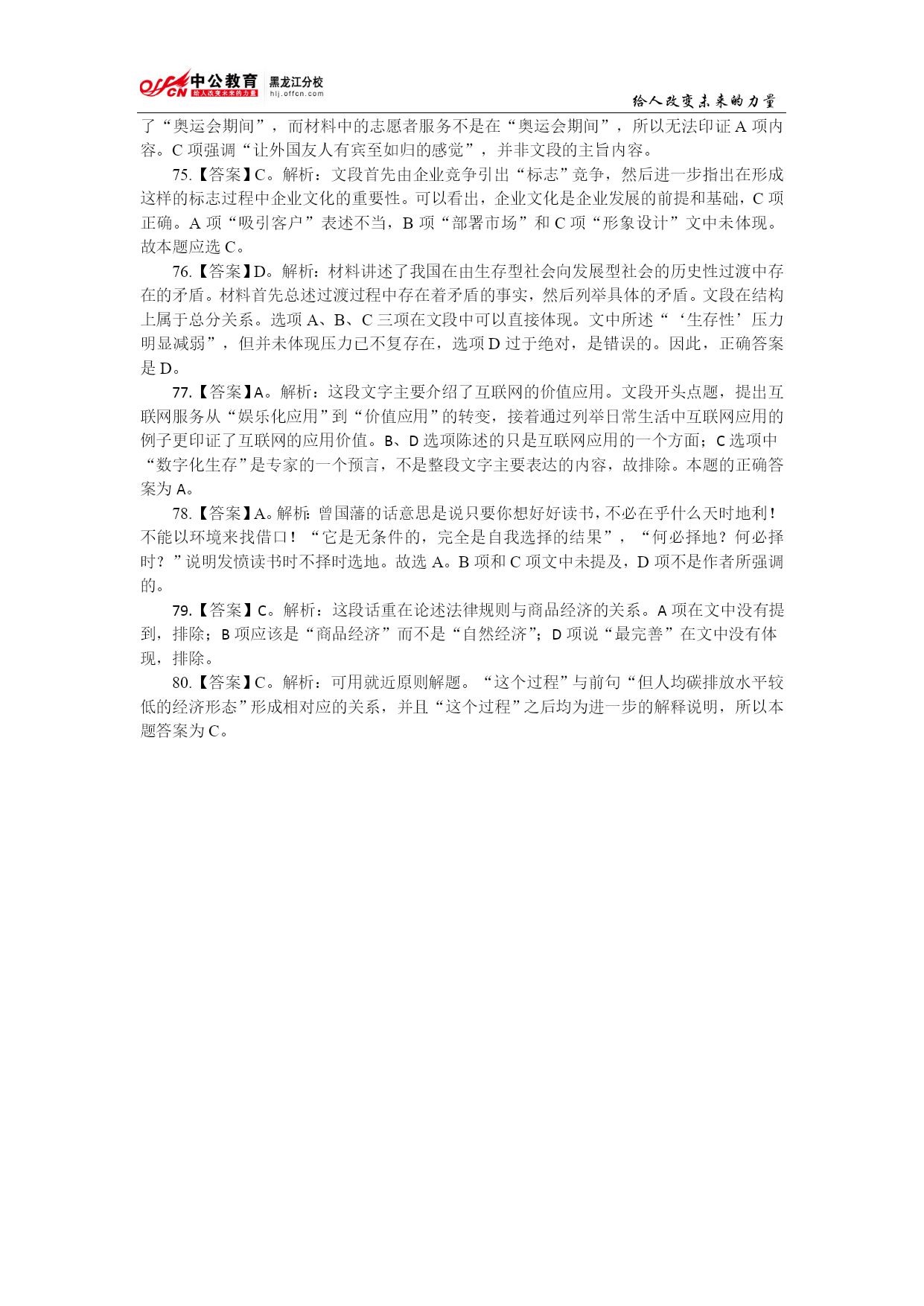 黑龙江公务员考试模拟试题及答案:言语理解与表达部分(第一套)