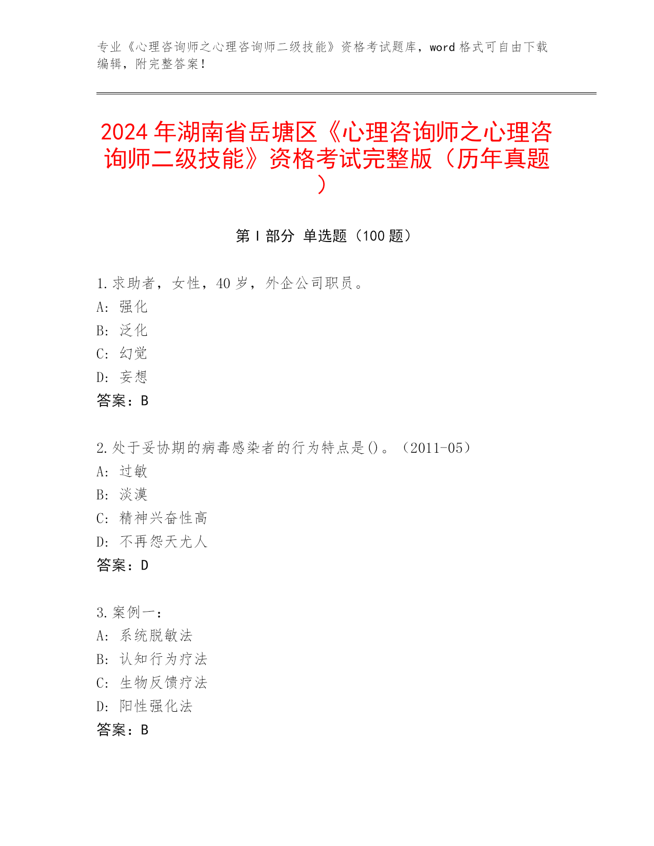 2024年湖南省岳塘区《心理咨询师之心理咨询师二级技能》资格考试完整版(历年真题)