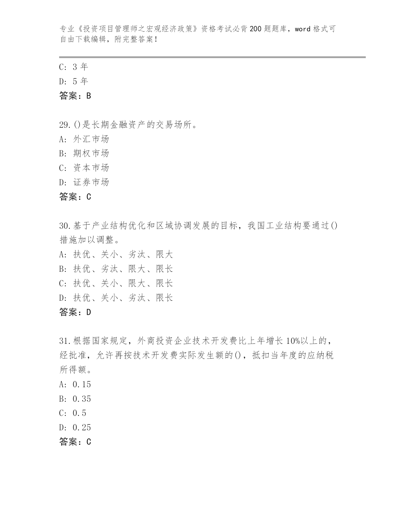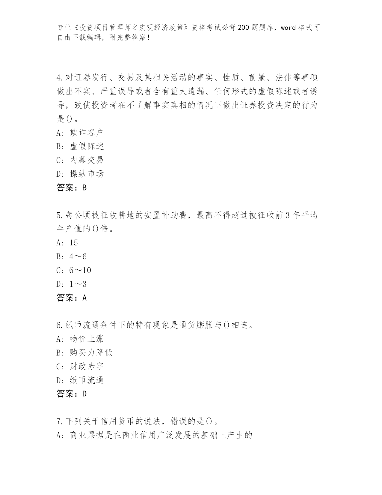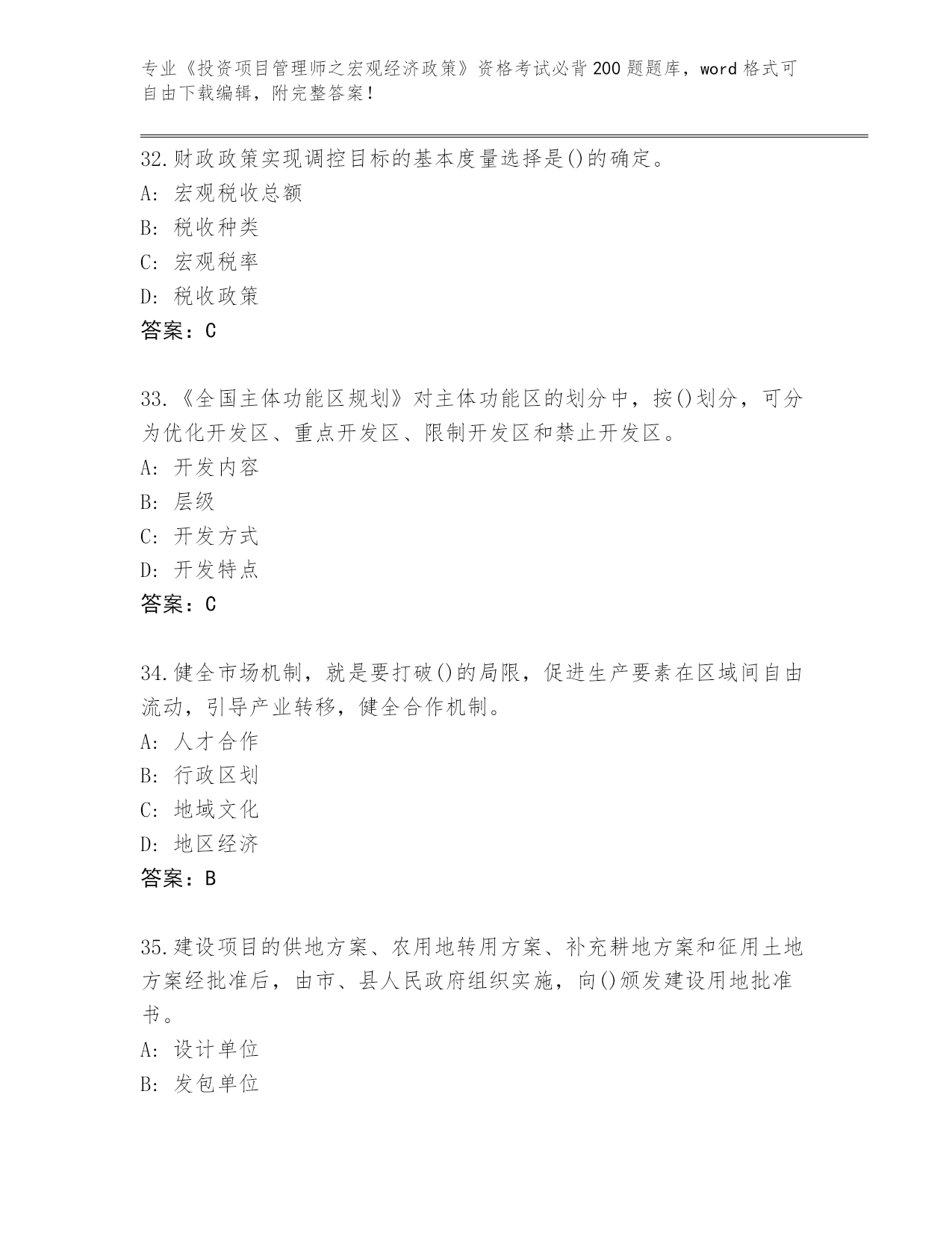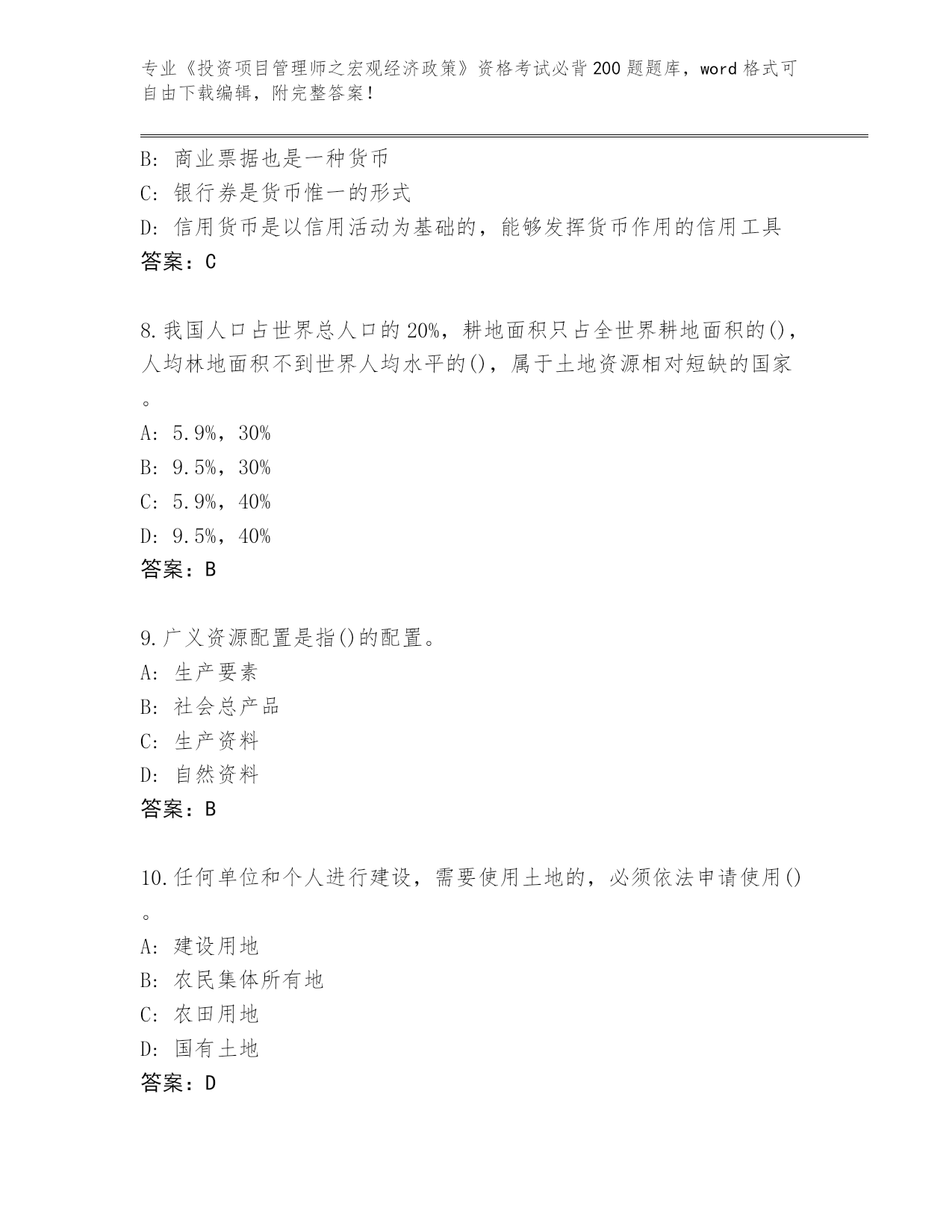 湖南省澧县《投资项目管理师之宏观经济政策》资格考试必背200题完整题库(突破训练)