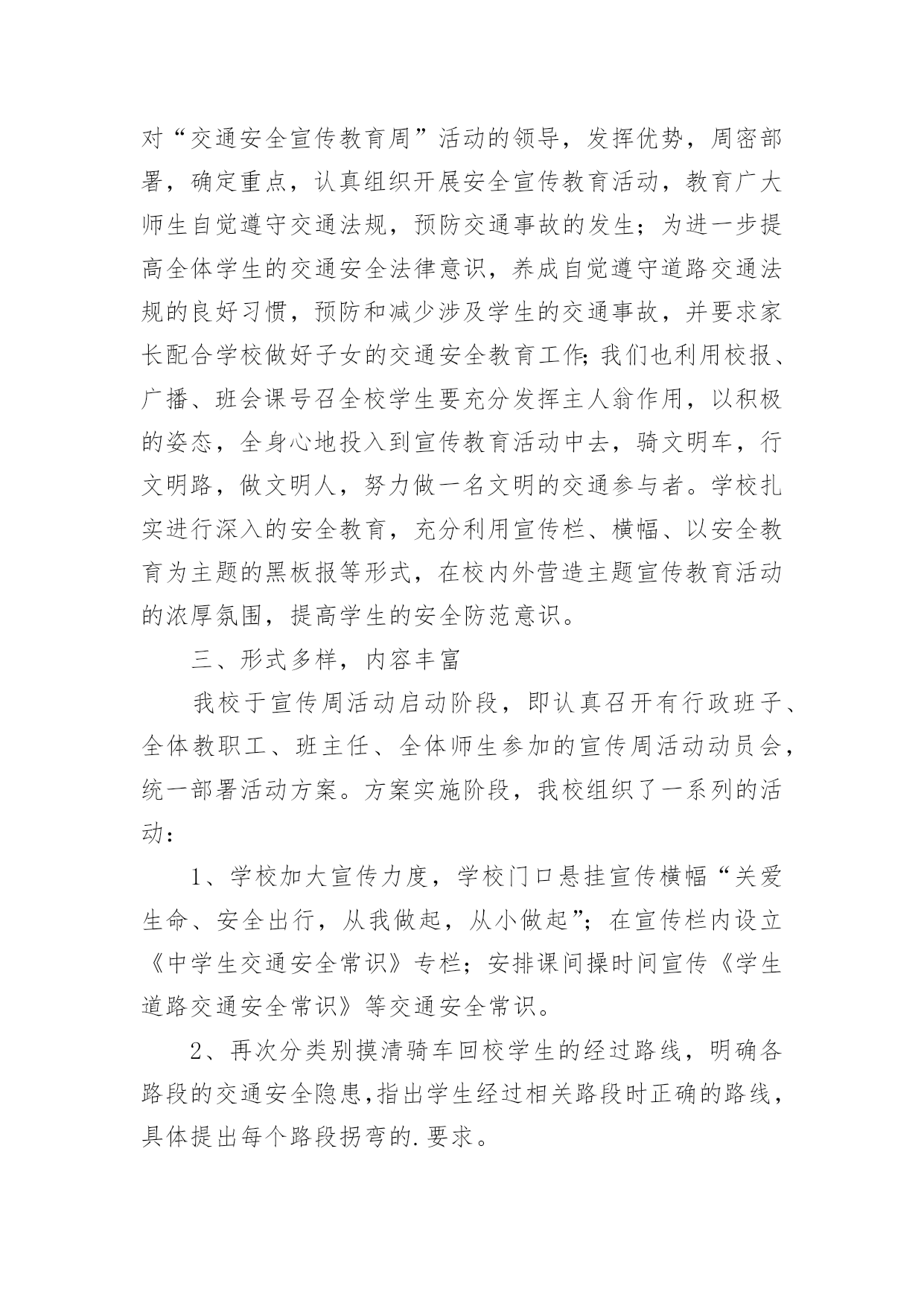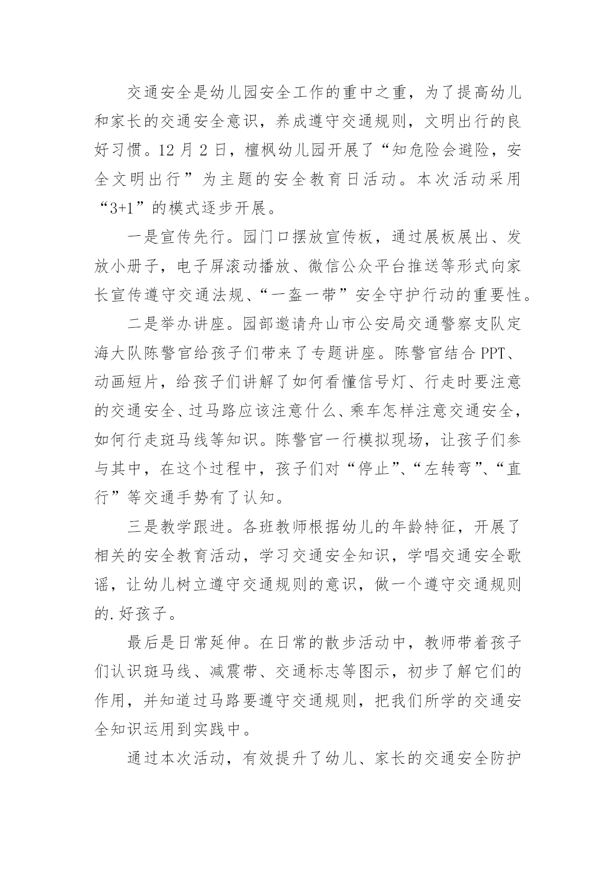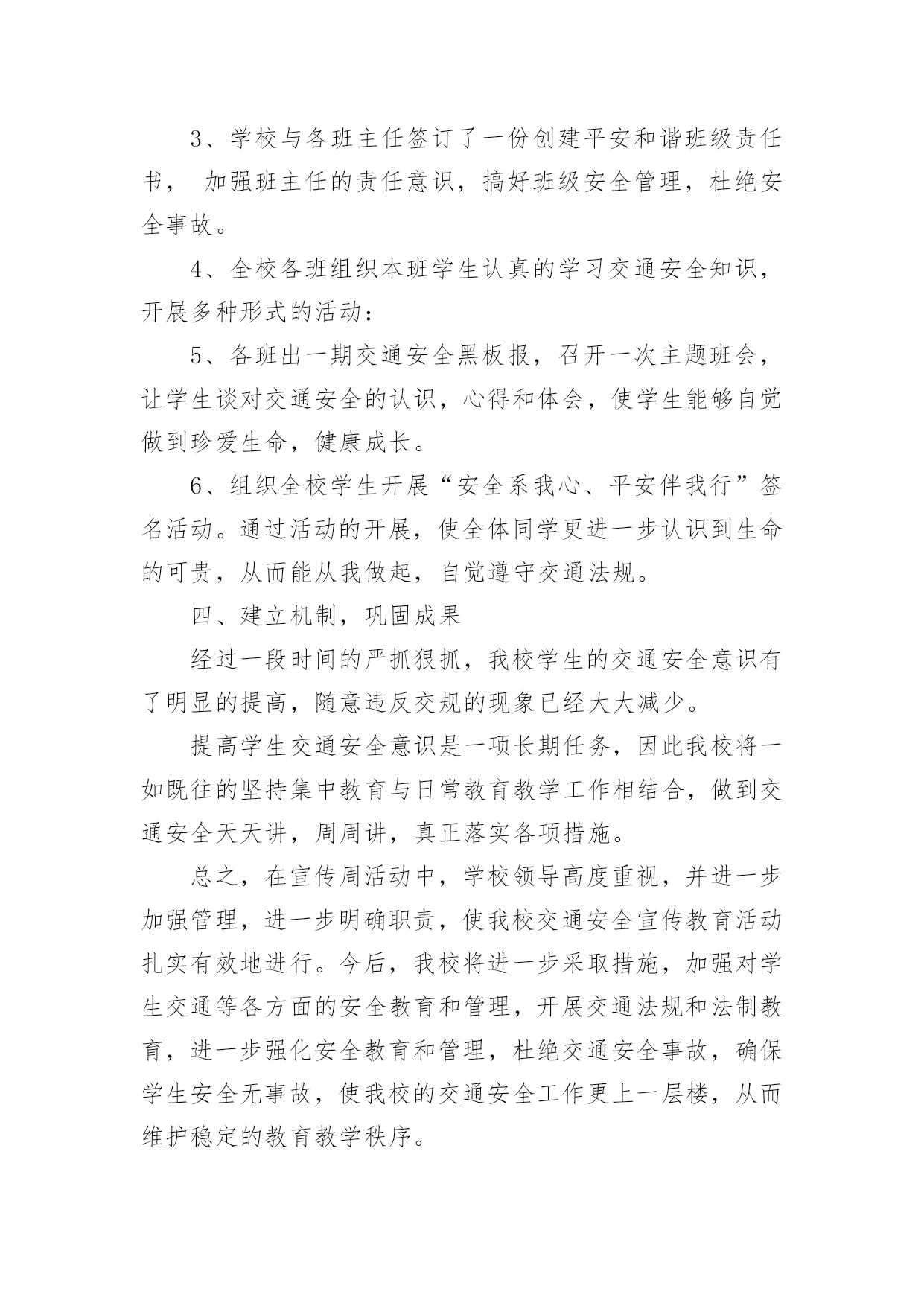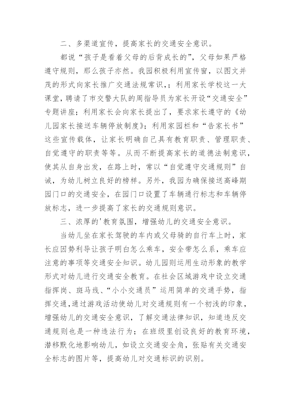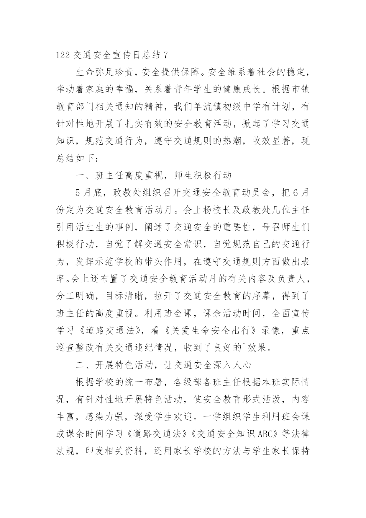 122交通安全宣传日总结122交通安全宣传日总结总结是事后对某一阶段的学习或工作情况作加以回顾检查并分析评价的书面材料,通过它可以全面地、系统地了解以往的学习和工作情况,让我们一起认真地写一份总结吧。那么总结有什么格式呢?下面是小编为大家整理的122交通安全宣传日总结,欢迎大家分享。122交通安全宣传日总结1为了让我们的孩子能够:“高高兴兴上学,平平安安回家”,为了“安全第一,预防为主”的方针,加强对幼儿交通安全教育管理,根据《大唐镇教办中小学生交通安全宣传月活动实施意见》,结合幼儿园特点,创造性地开展了交通安全宣传教育活动。一、全方位加强管理,完善幼儿接送安全制度。切实加强幼儿接送安全,认真执行幼儿接送制度,由行政人员进行监督执行。幼儿入园即配有一帽两卡,家长接送幼儿须凭“接送卡”以卡换人;接送高峰期,行政值班人员在门口进行巡视,严防幼儿冒领或走失;通过填写《幼儿家庭情况调查表》,调查幼儿接送车的安全现状,严禁无牌无证的车辆来接送幼儿,确保幼儿接送途中安全;完善门卫考核制度,落实门卫职责,有效促进幼儿在园安全。二、多渠道宣传,提高家长的交通安全意识。都说“孩子是看着父母的后背成长的”,父母如果严格遵守规则,那么孩子亦然。我园积极利用宣传窗,以图文并茂的形式向家长推广交通法规常识,;利用家长学校这一大课堂,聘请了市交警大队的周指导员为家长开设“交通安全”专题讲座;利用家长会向家长提出了,要求家长遵守的《幼儿园家长接送车辆停放制度》;利用家园栏和“告家长书”这些宣传载体,让家长明确自己具有教育职责、管理职责、自觉遵守的职责等等。从而不断提高家长的道德法制意识,使其从自身出发,在路上时,常以“自觉遵守交通规则”自诫,为幼儿树立良好的榜样。另外,我园为确保接送高峰期园门口的交通安全,在园门口设置了车辆通行标志和车辆停放标志,进一步提高了家长的交通规则意识。三、浓厚的'教育氛围,增强幼儿的交通安全意识。当幼儿坐在家长驾驶的车内或父母骑的自行车上时,家长应因势利导让孩子明白怎么乘车,安全带怎么系,乘车应注意的事项等交通安全知识。幼儿园则运用生动形象的教学形式对幼儿进行交通安全教育。在社会区域游戏中设立交通指挥岗、斑马线、“小小交通员”运用简单的交通手势,指挥交通,通过游戏活动使幼儿对交通规则有一个初浅的印象,增强幼儿的交通安全意识,了解交通法律知识,知道违反交通规则也是一种违法行为;在班级里创设良好的教育环境,潜移默化地影响幼儿,如设立交通安全角,张贴有关交通安全标志的图片等,提高幼儿对交通标识的识别。122交通安全宣传日总结2第十个122“全国交通安全日”即将来临,为进一步提高广大交通参与者的交通安全意识和文明意识,维护辖区辖区道路交通安全形势平稳。阳山县公安局交警大队正精心谋划部署,创新宣传形式,积极开展多种形式的交通安全宣传活动,提前为第十个全国交通安全日宣传预热,努力营造浓厚的宣传氛围。11月17日上午,交警大队来到辖区凤煌幼儿园开展交通安全宣传活动,县公安局铁骑队一同参加了活动。“红灯停,绿灯行,乘车记得佩戴安全头盔……”,宣讲民警江继泉主持讲授着一堂生动的交通安全课,在校园操场上,利用游戏道具模拟了日常交通环境,同学们纷纷积极参与到其中。随后,宣讲民警在多媒体教室,组织学生认识了常见的交通标志标线、交通违法行为,如何正确过马路等进行详细讲解,并动员、鼓励小朋友们将今天所学的.知识分享给家人,提醒家长们出行一定要注意安全。随后,宣讲民警黄耀红为全园教师讲授了一节交通安全课,通过播放案例视频、现场回答问题等形式,让学校老师直观了解到在行车过程中遵守交通法规的重要性,着力提高教师交通安全意识和守法意识。最后,交警工作人员向教师免费发放了纪念品和安全头盔,呼吁师生做交通安全知识的宣传员和监督员,把交通安全知识带回家。通过此次活动,学生们体会到了交通安全知识的重要性,也学习到了交通安全的一些小知识,切实增强了学生们的交通安全出行意识,为“122全国交通安全日”系列宣传活动顺利开展打好了头阵,营造了良好的宣传氛围。122交通安全宣传日总结3为了加强学生的安全防范意识和规避风险的能力,确保学生的安全,中国路桥1002班全体学生于8月20日7:20在我教室召开了主题为“安全教育”的班会。会议由共青团书记陈云主持。本次班会以对学生进行安全教育,学习安全知识,认识安全的重要性为目的,将“安全、文明、法纪”三大教育主题与大学生的切身安全和利益相结合。为了顺利开展班会,各班委积极参与各种安全知识的收集整理,会前在各宿舍做了充分的知识宣传工作。会议从近期的.“狗洞”火灾案例出发,从财产安全、地震安全、交通安全、消防安全、用电安全、洪水等方面全面了解了防灾避险的各种知识和注意事项,分析了所见所闻的真实安全事故。例子涉及学生的人身安全和财务安全,重点