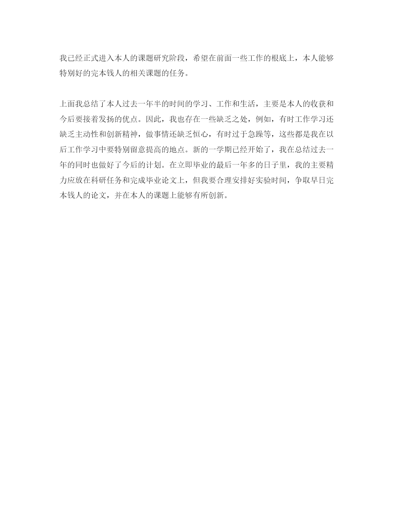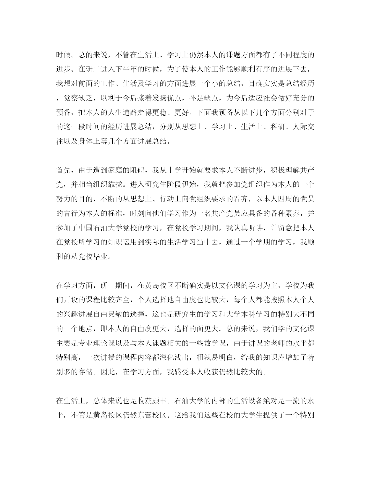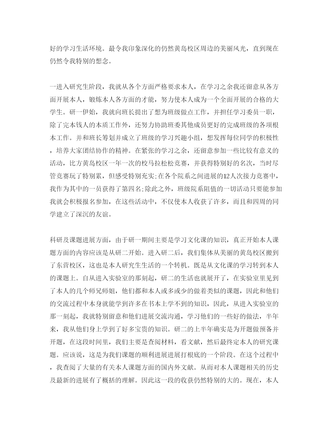 2021研究生学年自我参考总结范例2021研究生学年自我总结一从踏入研究生生活开始至今已有一年有余,回忆这段不短也不算长的研究生学习生活,总体感受研究生的学习与生活具有特别大的自主性和灵敏性,为开展个人特质提供了时间和制度的条件,但由于研究生创新性学习的目的要求,使得在本人的研究领域里真正做出一些奉献性的工作显得比较难,花费相当大的精力与大部分时间在众多相关文献的研习和专业理论的深化学习上是特别必要,甚至是必须的。研一上学期主要学习了政治类、外语类、军事类、数学类的公共课和部分专业理论课,其中政治类课程包括《邓小平新时期军队建立思想》、《科学社会主义理论与实践》、《自然辩证法》;外语类课程即《当代研究生英语》(上、下册);军事类课程即《战役后勤学》;数学类课程包括《应用数理统计》、《随机过程》。专业理论课为《弹塑性力学》。教员深化浅出的讲解加上本人的理解学习,我顺利的通过了各门课程的考核,我想更重要的是通过这些课程的学习本人在本科的根底上丰富了本人的学习内容,开阔了学习视野,加深了理论认知。研一下学期主要学习了专业理论课与专业课,其中专业理论课包括《高等构造动力学》、《工程有限元》、《随机振动》;专业课包括《现代构造试验技术》、《高等混凝土构造》、《土木工程检测与加固原理》、《防灾工程学》。由于在本科的学习中已经对这些专业知识有一定的初步学习和掌握,然而通过研究生的再学习,本人对本科知识的理解有了特别大深化,特别是通过教员的精细讲解,使得本人在本科里学习的一些结论性知识的来历有了初步认识。在这个学期本人顺利通过了研究生学位英语课程的考核。研二上学期的课程比较少,包括《专业英语》、《土木工程学科前沿讲座》和《施工新技术》。通过这些课程的学习本人掌握了如何查阅与本人专业相关的外文文献的方法,如此为本人以后的专业学习提供了一个新的学习途径。同时本人利用课程时间阅读了比较多的外文文献,丰富了本人的专业词汇和加强了专业理论的描绘才能。学科前沿讲座扩大了本人的专业知识视野,更重要的是通过这门课程,为本人以后的学习增加了一份内容,即经常关注本学科的前沿开展动态。以上根本是对研究生课程学习的个人体会与总结,除此之外,在此期间本人在谢教授的精心指导下,完成了小论文的撰写工作,已发表《四川建筑科学研究》核心期刊并同意收录。通过论文的撰写掌握了论文的根本构成是什么与何为论文的核心内容,为以后论文的写作奠定了根底。在此期间通过辅助导师制造课件、编写教材、作业修正等工作,丰富了本人的学习方式,同时也认识到本人在知识才能方面的欠缺,为进一步学习指明了方向。研究生一年多的课程学习和实践学习,使本人初步掌握了研究生根本知识理论的框架,但鉴于此间时间短所学课程知识多,有特别多知识内容尚未完全掌握或者深化理解。截止目前,尽管研究生所有课程的授课学习已经完毕,但自我学习不能停顿。在接下来的论文预备阶段和论文写作阶段,本人应该利用好研究生剩下的这一年多时间,争取在顺利完成毕业论文撰写的根底上结实专业的理论知识,丰富专业知识储藏。研究生学习不仅是知识理论的学习,同时仍然综合知识才能的培养和学习,在综合才能方面本人还有特别大空间要去开展,争取在以后的工作和学习期间能特别好的培养在这方面的素养,实现研究生培养全面开展的目的。2021研究生学年自我总结二时间过得飞速,一转眼研究生的生活已通过去了一半。回首过去的一年多的时间,我觉得过的仍然比较有意义、比较充实的,有特别多收获,但同样也有失落的时候。总的来说,不管在生活上、学习上仍然本人的课题方面都有了不同程度的进步。在研二进入下半年的时候,为了使本人的工作能够顺利有序的进展下去,我想对前面的工作、生活及学习的方面进展一个小的总结,目确实实是总结经历,觉察缺乏,以利于今后接着发扬优点,补足缺点,为今后适应社会做好充分的预备,把本人的人生道路走得更稳、更好。下面我预备从以下几个方面分别对子的这一段时间的经历进展总结,分别从思想上、学习上、生活上、科研、人际交往以及身体上等几个方面进展总结。首先,由于遭到家庭的阻碍,我从中学开始就要求本人不断进步,积极理解共产党,并相当组织靠拢。进入研究生阶段伊始,我就把参加党组织作为本人的一个努力的目的,不断的从思想上、行动上向党组织要求的看齐,以本人四周的党员的言行为本人的标准,时刻向他们学习作为一名共产党员应具备的各种素养,并参加了中国石油大学党校的学习,在党校学习期间,我认真听讲,并留意把本人在党校所学习的知识运用到实际的生活学习当中去,通过一个学期的学习,我顺利的从党校毕业。在学习方面,研一期间,在黄岛校区不断确实是以文化课的学习为主,学校为我们开设的课程比较齐全,个人选择地自由度也比较大,每个人都能按照本人个人的兴趣进展自由灵敏的选择,这也是研究生的学习和大学本
