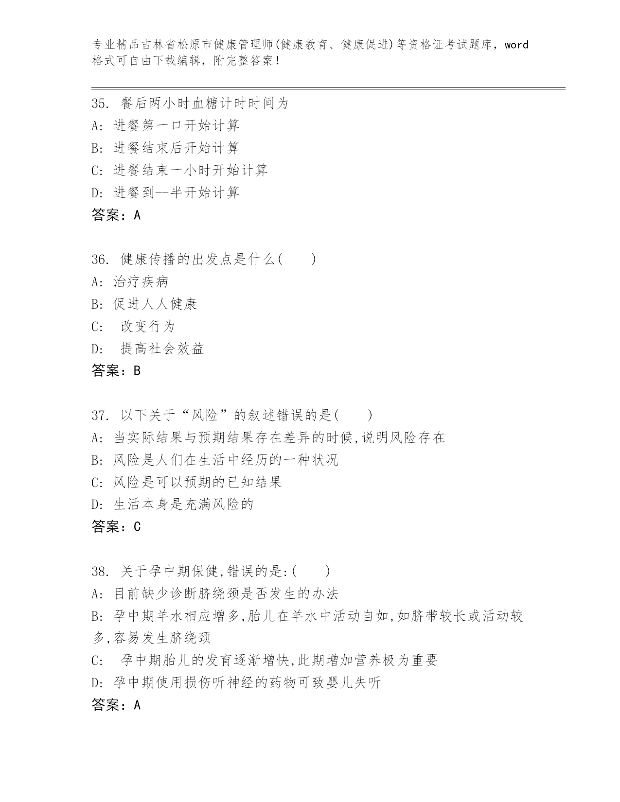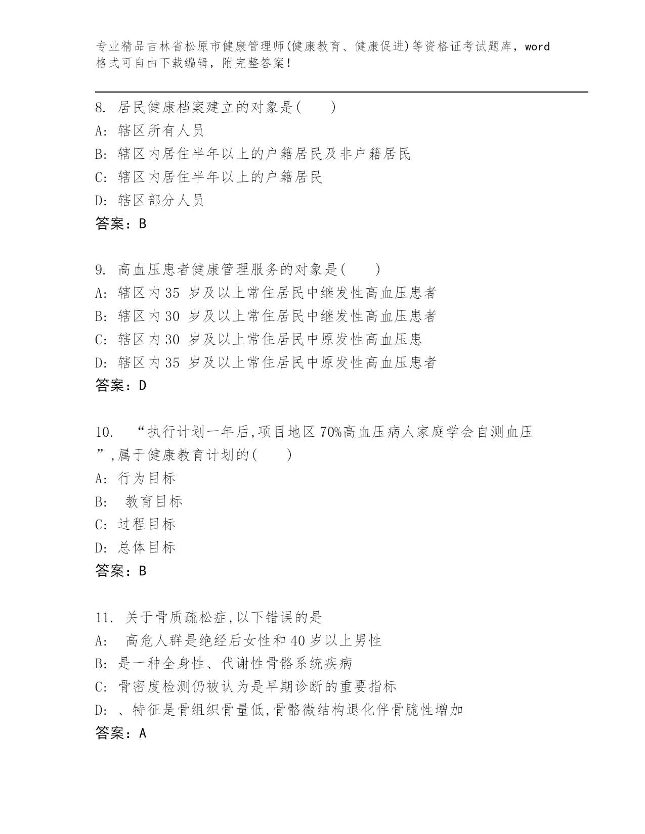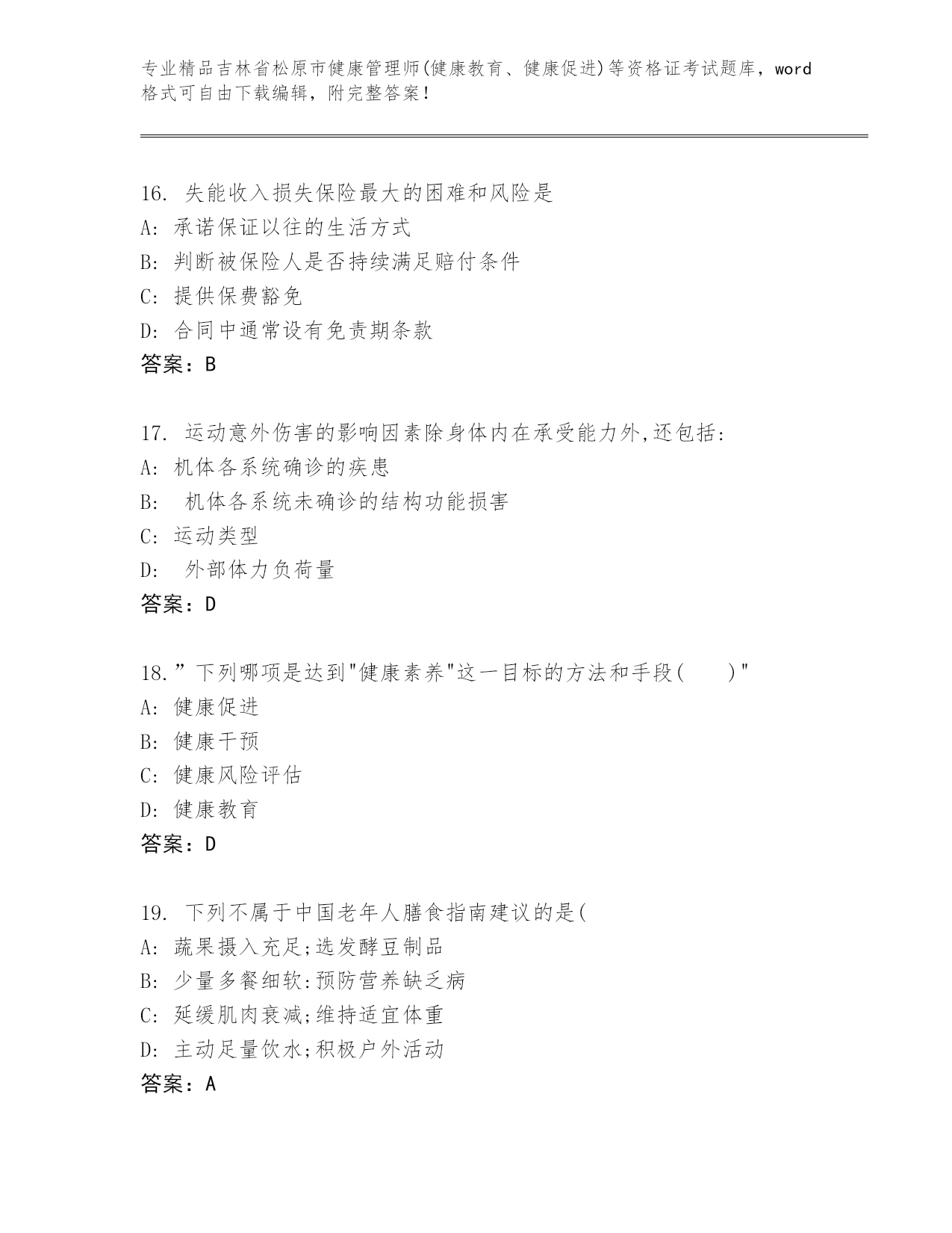 历年吉林省松原市健康管理师(健康教育、健康促进)等资格证考试大全及答案【名校卷】.docx