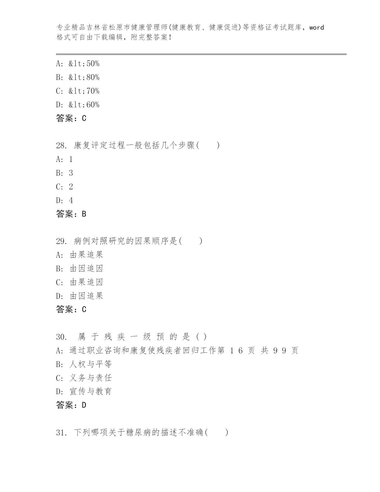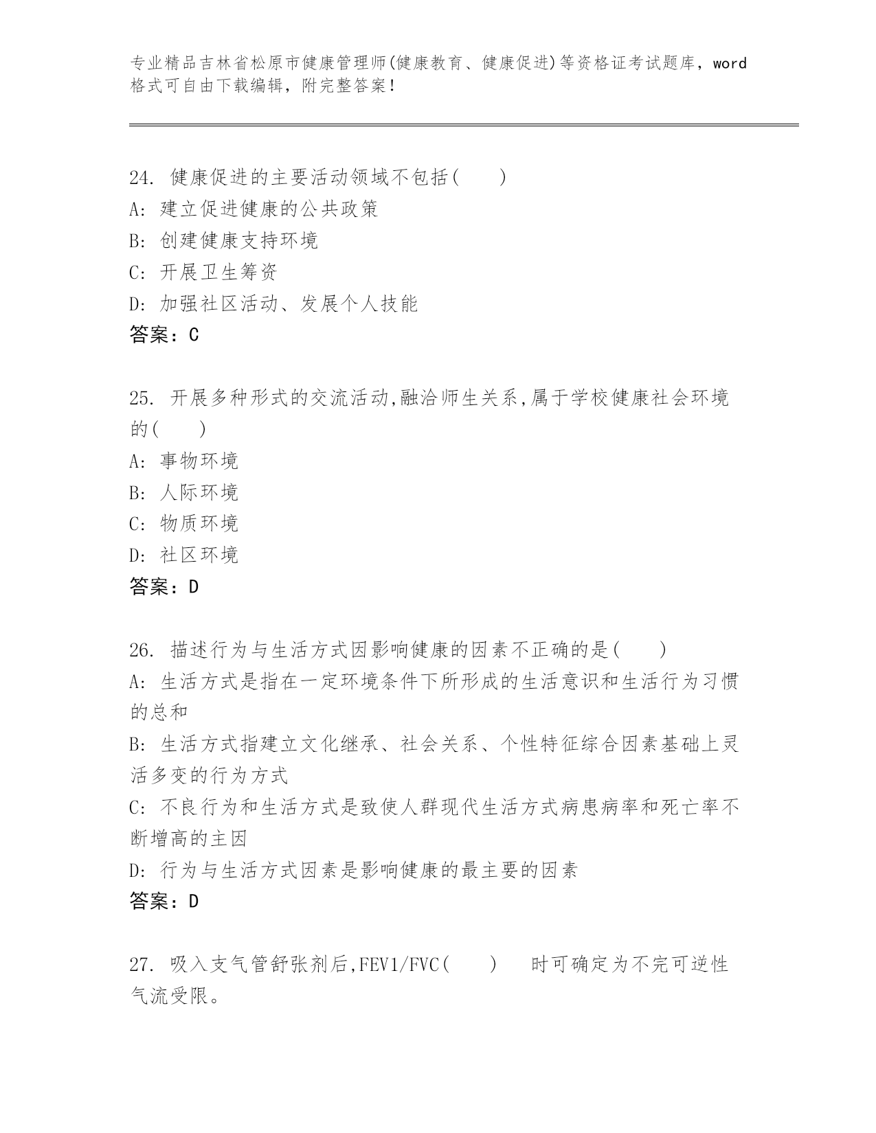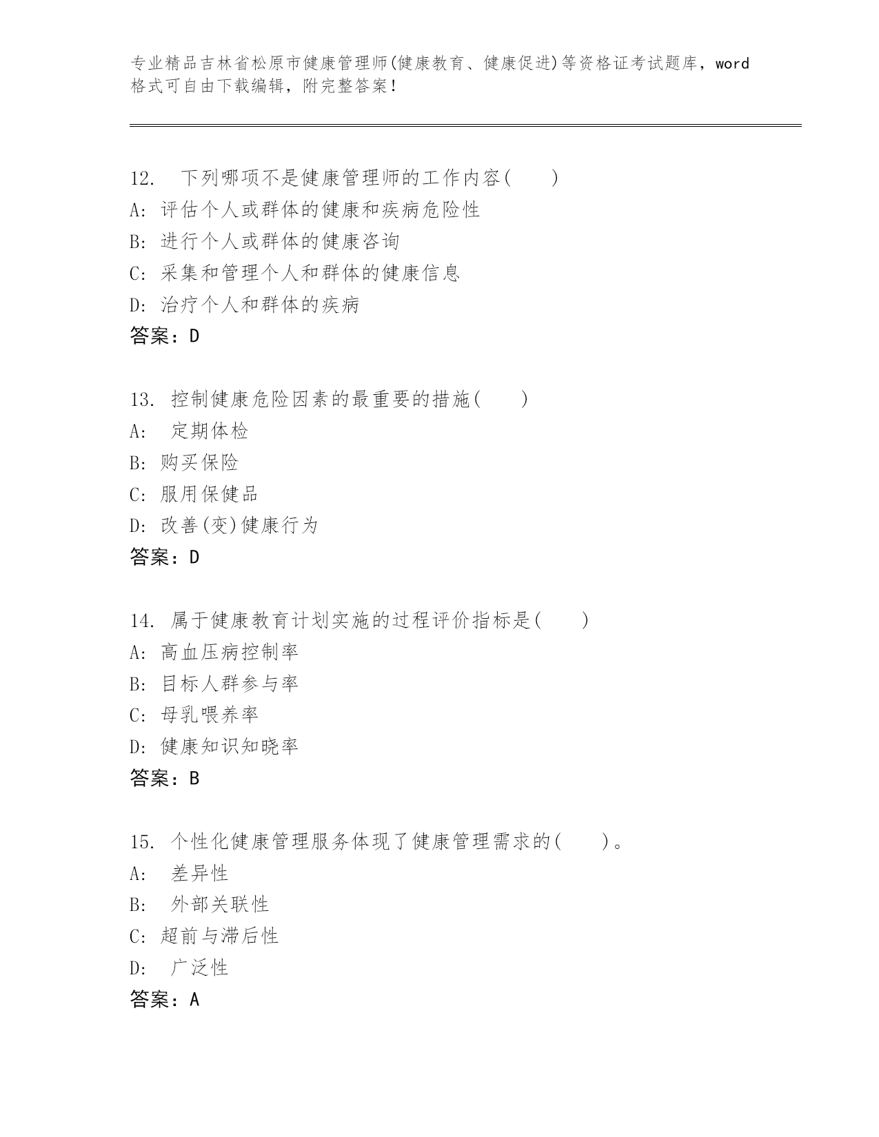 历年吉林省松原市健康管理师(健康教育、健康促进)等资格证考试大全及答案【名校卷】