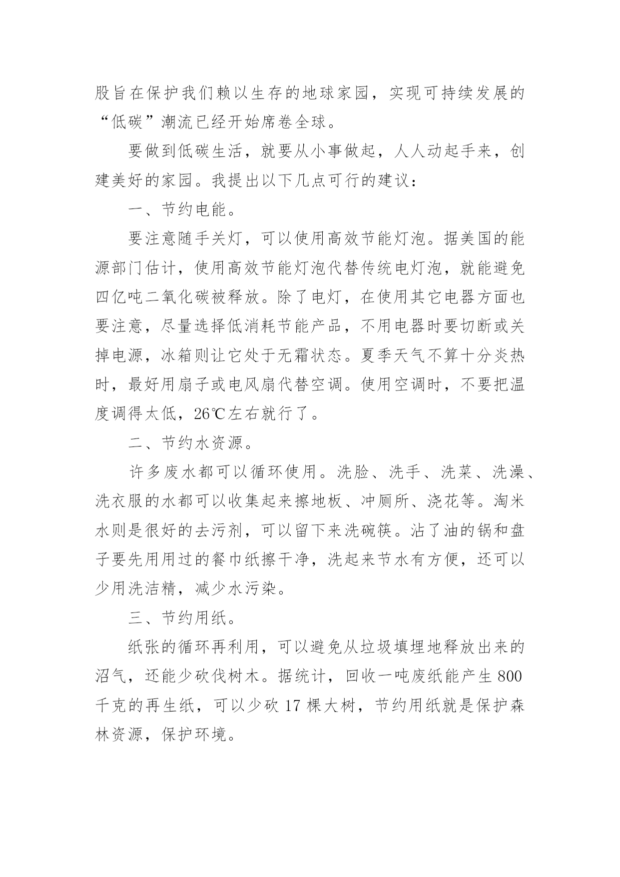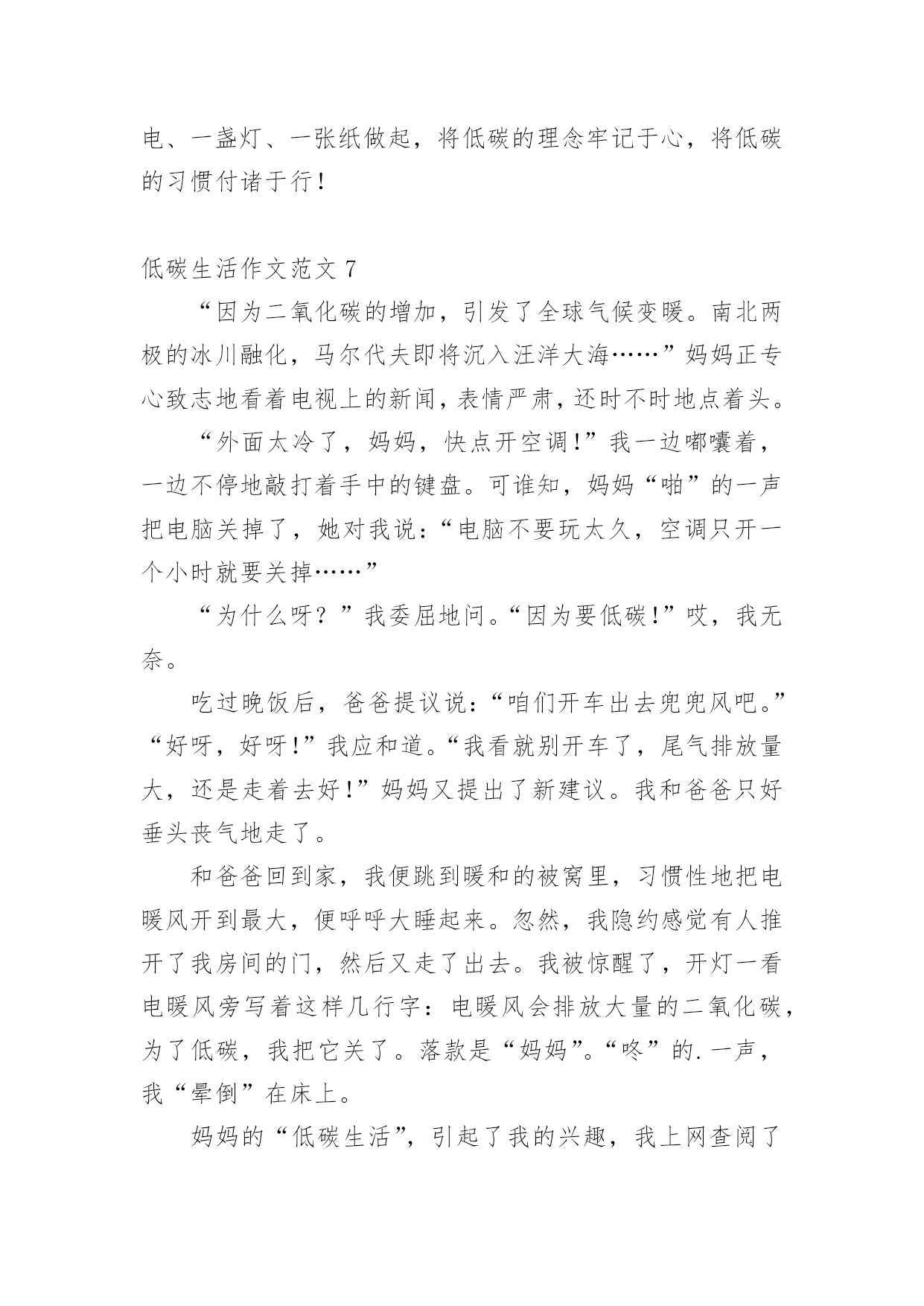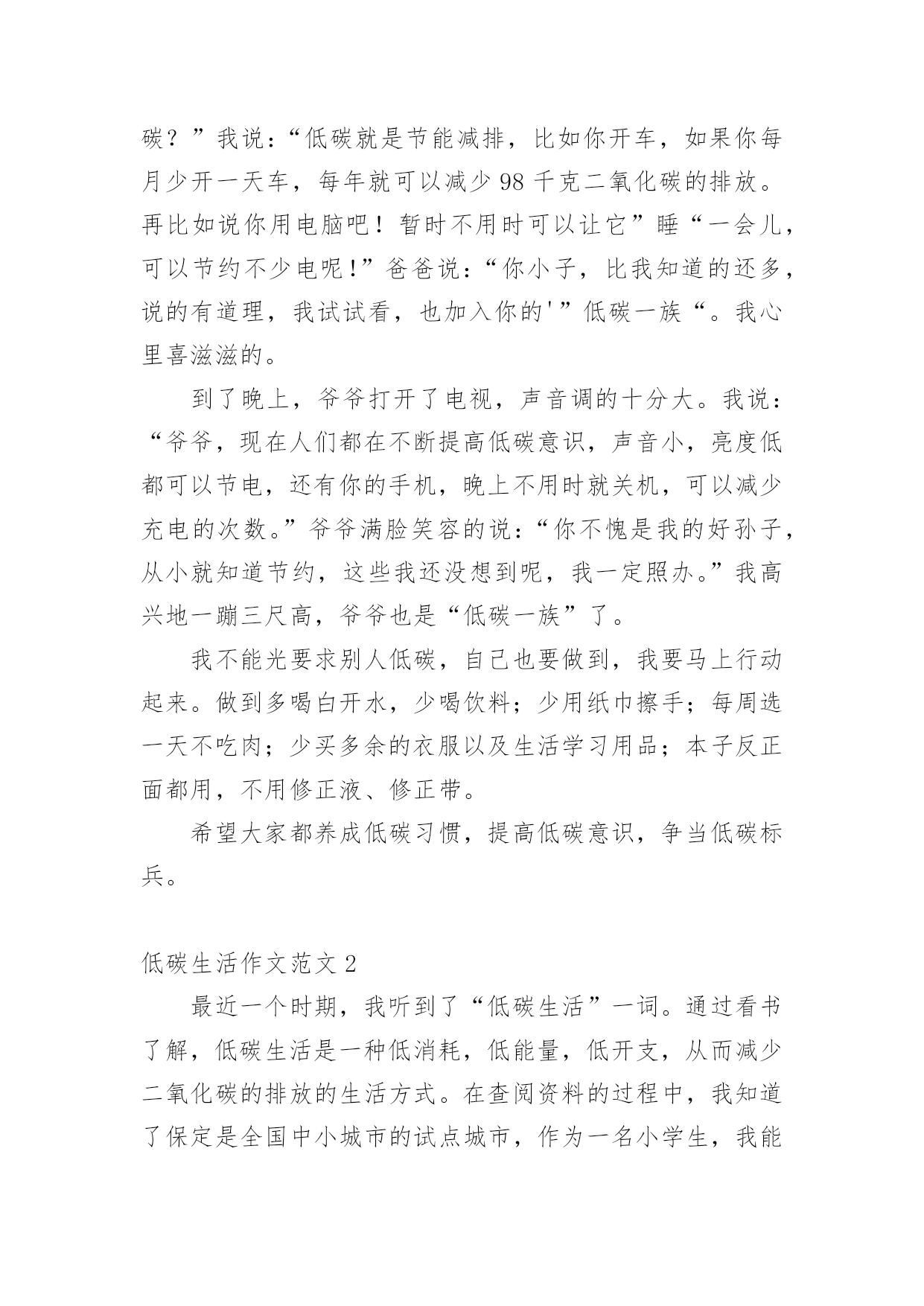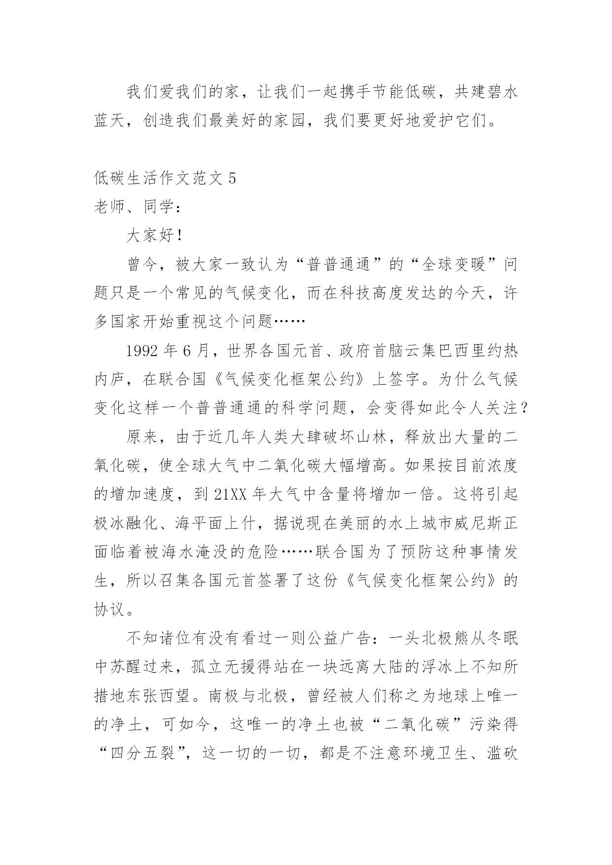 低碳生活作文低碳生活作文范文无论是在学校还是在社会中,大家对作文都再熟悉不过了吧,作文是一种言语活动,具有高度的综合性和创造性。相信写作文是一个让许多人都头痛的问题,下面是小编为大家整理的低碳生活作文范文,欢迎阅读,希望大家能够喜欢。低碳生活作文范文1在去年12月7日,《半岛都市报》为了拯救地球,发起了“你说我说,低碳生活”的活动,呼吁人们节能减排,立刻得到了市民以及有关部门的响应。我身为青岛的小公民,也应该为低碳出把力,从身边做起,做“低碳一族”“低碳宣传员”。现在我正好放假在家里,就先向家里人“开刀”吧!奶奶每天做饭不太讲究节约,我说:“奶奶,现在提倡”低碳生活“,如果你焖米饭时,把大米浸泡20分钟后再煮,可缩短时间;做饭时要用中火;烧东西时要擦干锅,不易煮烂煮烂的食品要用高压锅,都有助于节省燃气。还有,洗菜淘米的水可以用来浇花,洗衣服的水可以用来拖地或者冲厕所。”奶奶,吃惊的说:“是吗?!奶奶老了不知道,就照你说的办吧!”爸爸起床后,先点上一支烟,我趁机说:“爸爸,吸烟影响低碳生活。”爸爸还没等我说完,就问道:“什么低碳?”我说:“低碳就是节能减排,比如你开车,如果你每月少开一天车,每年就可以减少98千克二氧化碳的排放。再比如说你用电脑吧!暂时不用时可以让它”睡“一会儿,可以节约不少电呢!”爸爸说:“你小子,比我知道的还多,说的有道理,我试试看,也加入你的'”低碳一族“。我心里喜滋滋的。到了晚上,爷爷打开了电视,声音调的十分大。我说:“爷爷,现在人们都在不断提高低碳意识,声音小,亮度低都可以节电,还有你的手机,晚上不用时就关机,可以减少充电的次数。”爷爷满脸笑容的说:“你不愧是我的好孙子,从小就知道节约,这些我还没想到呢,我一定照办。”我高兴地一蹦三尺高,爷爷也是“低碳一族”了。我不能光要求别人低碳,自己也要做到,我要马上行动起来。做到多喝白开水,少喝饮料;少用纸巾擦手;每周选一天不吃肉;少买多余的衣服以及生活学习用品;本子反正面都用,不用修正液、修正带。希望大家都养成低碳习惯,提高低碳意识,争当低碳标兵。低碳生活作文范文2最近一个时期,我听到了“低碳生活”一词。通过看书了解,低碳生活是一种低消耗,低能量,低开支,从而减少二氧化碳的排放的生活方式。在查阅资料的过程中,我知道了保定是全国中小城市的试点城市,作为一名小学生,我能为低碳生活做点什么呢?以前,我就每天把水拧到最大,洗手、洗脸每月都要耗水十几吨,现在,老师告诉我们要准备两个水桶,用来储存废水。废水可以用来冲厕所,拖地、浇花······用电也要节约,看完电脑或电视后,要把插座上的小红灯关掉,以便节约电源,尽量放假时白天写作业,晚上早关灯一小时,用那一小时的时间和家人散步。既节约了电源,又起到了减肥的.作用,还增进了感情,真是一举多得呀!少用一次性物品(筷子、饭盒等)少用塑料袋,多用环保袋。出行最好步行,少开私家车,少做出租,多做公交车。这样就做到了“低消耗、低能量、低开支”的作用。低碳生活,人人有责,让我先行,保护环境。低碳生活作文范文3地球是我们的家园。我们作为地球的主人,就应该好好保护地球。现在城市正在倡导文明环境,只要我们不污染地球的环境,不浪费地球的能源。就能让城市变得更绿色,更环保。有想法就要有行动。于是,我和父母开始了一段低碳生活。夏日炎炎的时候,我觉得家里闷,开着空调又太浪费。于是,我想和爸爸一起去游泳。爸爸对我说:“我们开车去吧。”我摇摇头,说:“开车去耗能源,游泳池离这儿不远,不如步行去吧。”爸爸称赞说:“好主意,你真是个懂得节约的好孩子。”于是,我们就骑着自行车来到了游泳池,这样,既锻炼了身体,又节约了能源。真是一举两得。有一次,我们去较远的地方购物,妈妈挑选了少量的东西,正准备去付钱,爸爸连忙上前阻止,说:“购物太少不太好,尽可能地一次性购足,就少了几次购物,也就省了车油。”妈妈说:“这是个好办法。”因此,我们就尽量把所需的东西一次性买足,这真是省时又省力。平常,我们家总是把水循环来使用。平时,我妈总是用淘米剩下的淘米水来浇花浇草。而淘米水对花草而言更比清水有营养,这样,不但节约了水,而且还能让花草更好地生长。还有我家在用洗衣机洗衣服时,总是将后面几遍洗衣后较干净的水用一个大盆里收集起来,用它不拖地板,还用它来冲刷抽水马桶,虽然这样多费了一些功夫,但是因为能更充分地利用水资源,我们总是乐此不彼。同学们,朋友们做到低碳环保只是一种态度,而不是能力,我们应该从节电、节水、节碳、节油、节气这种小事做起,一起去建立低碳绿色的生活方式,只要我们大家一起去行动,就一定可以让我们的'生活更加低碳环保,从而让我们共同的地球拥有更美好的明天。从电影《XX》的地球末日预言,到哥本哈根全球气候大会,从当前中国西南百年一遇的大干旱,到横扫大半个中国的沙尘暴,都给人