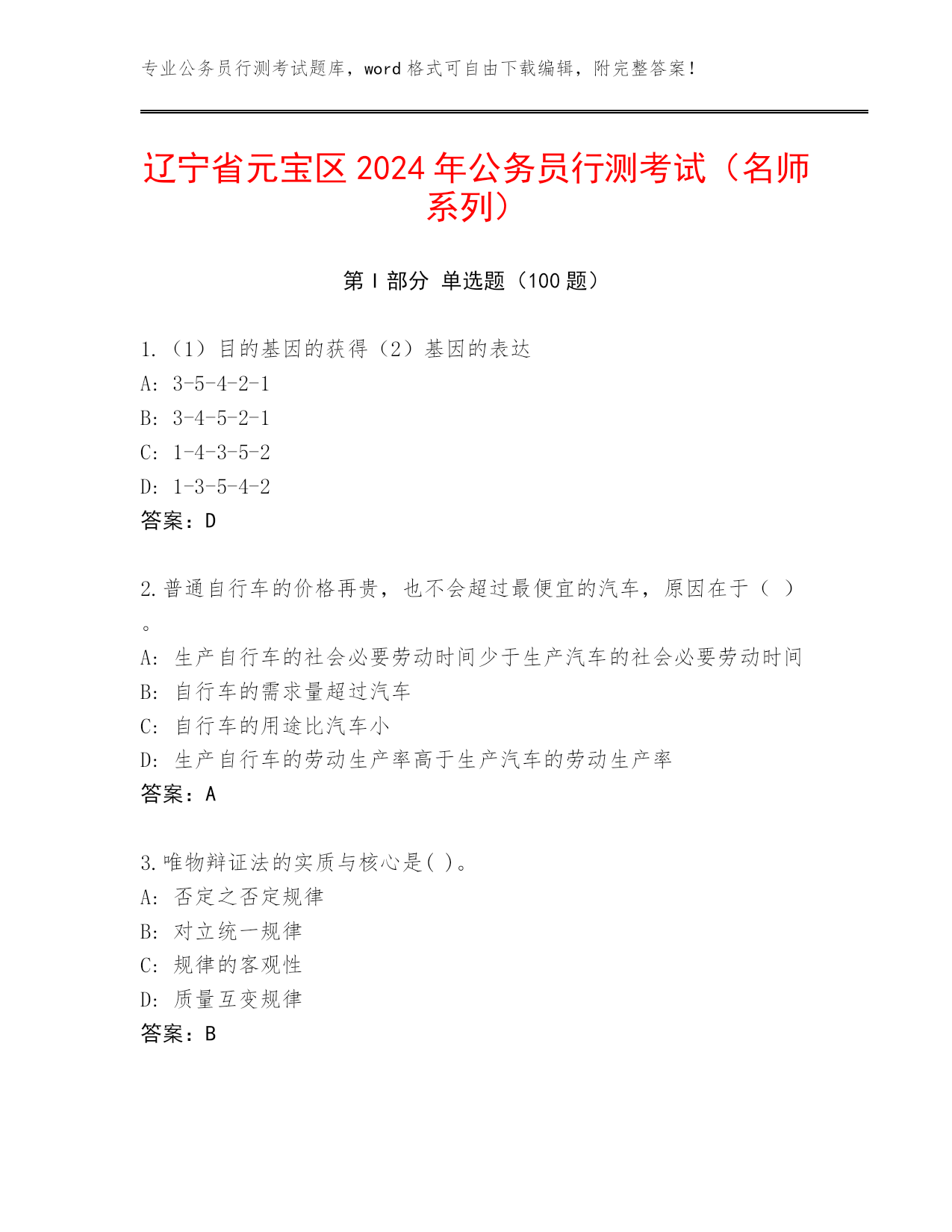 辽宁省元宝区2024年公务员行测考试(名师系列).docx