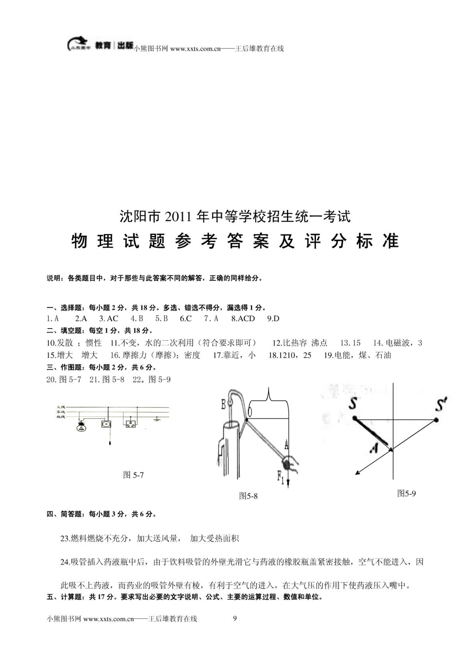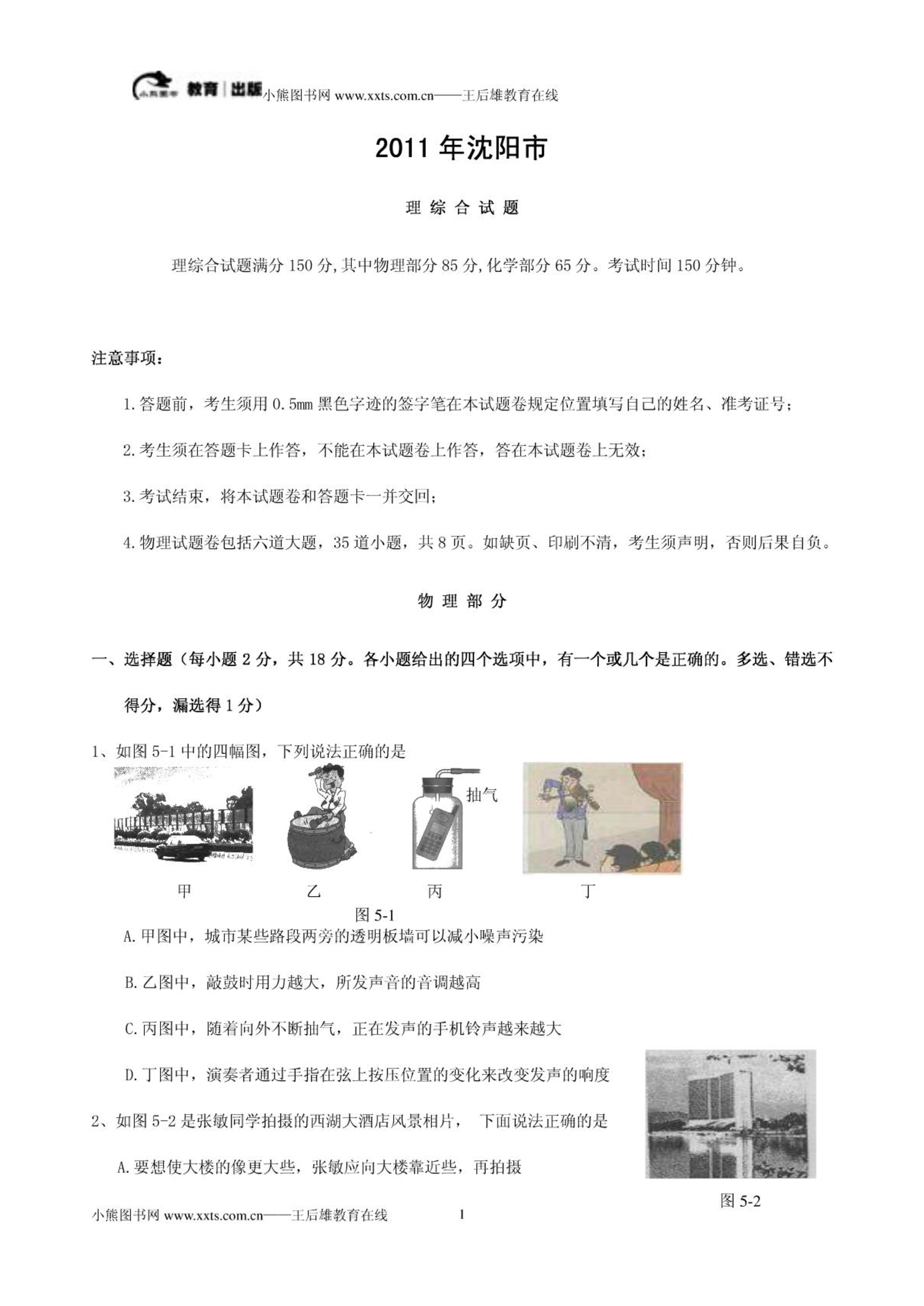 2011沈阳中考理综合模拟考试试题及答案.pdf