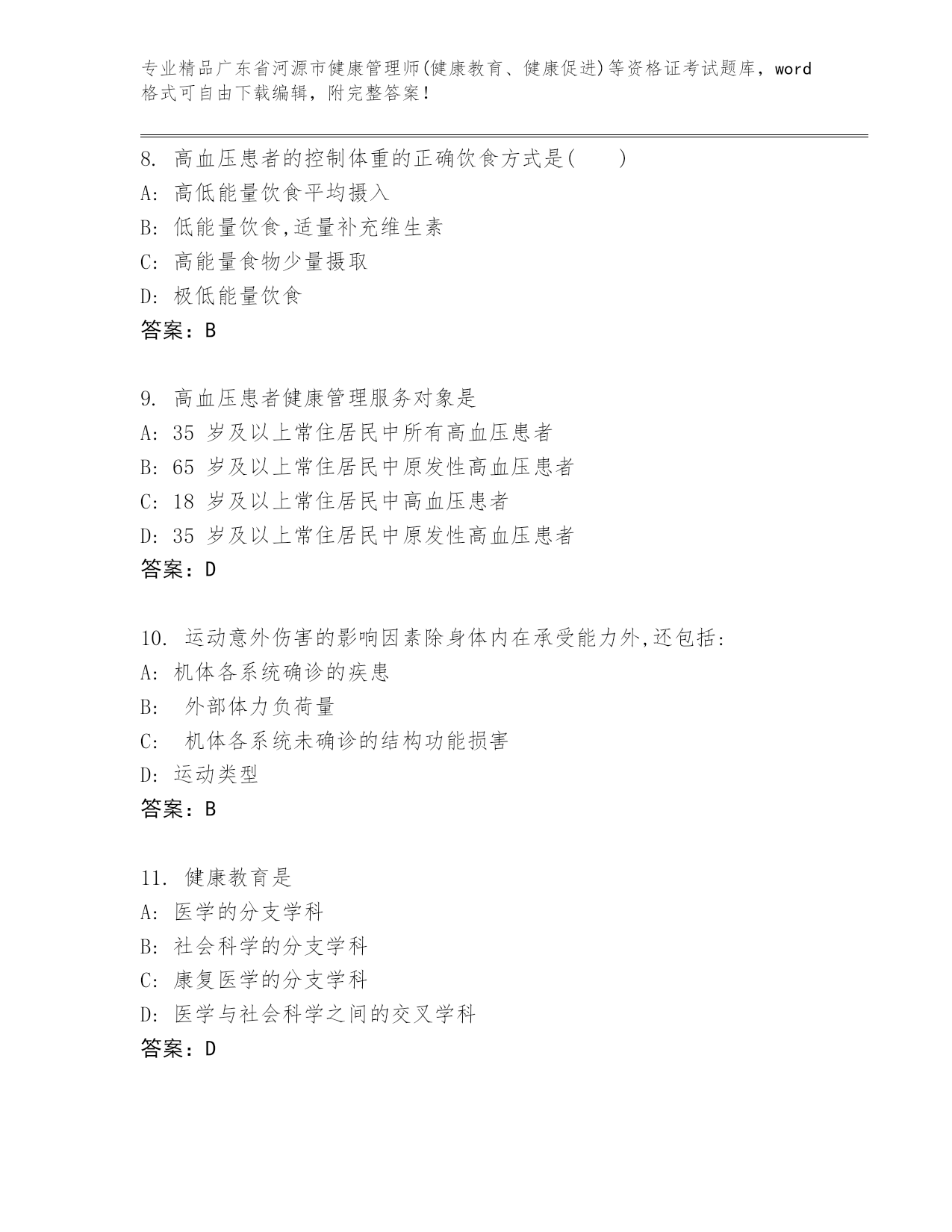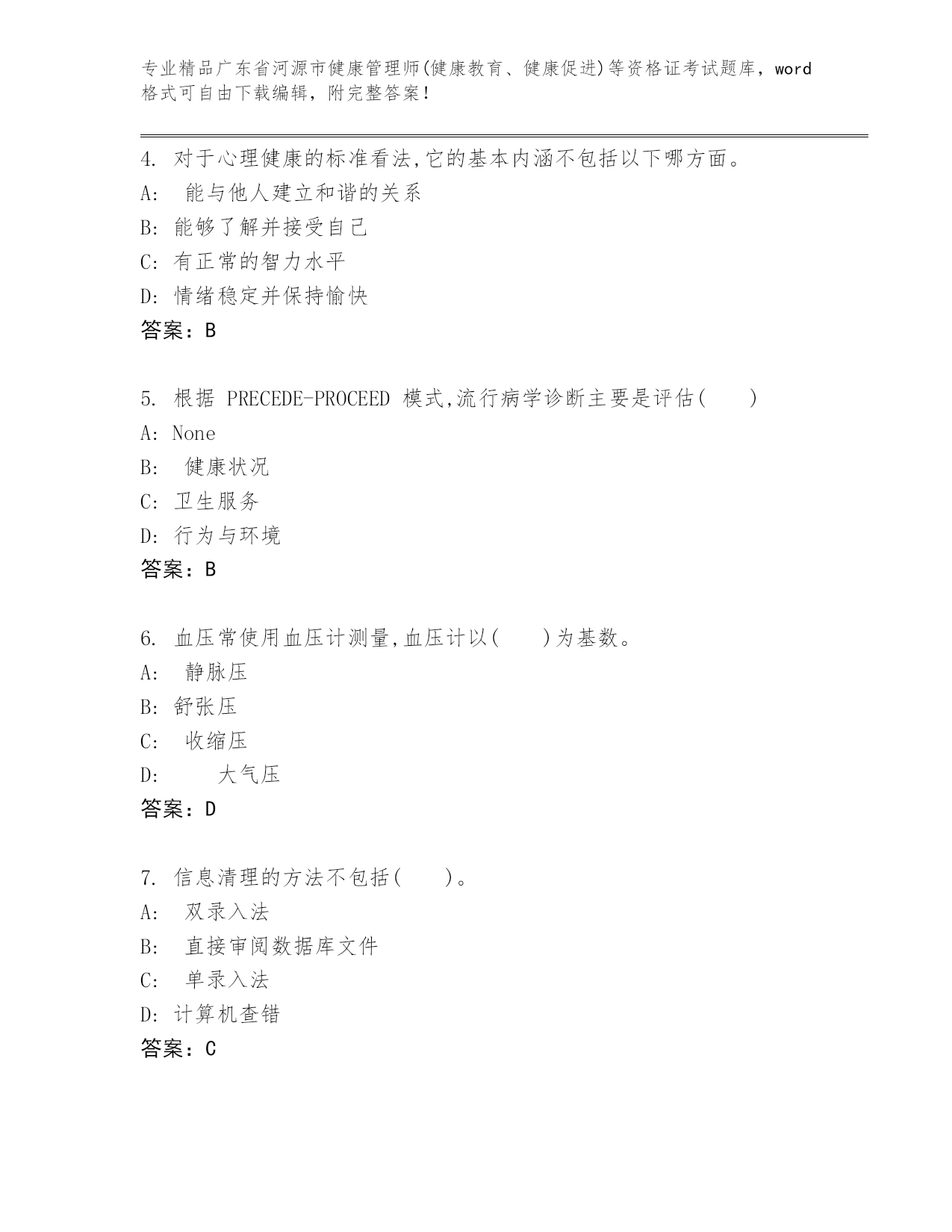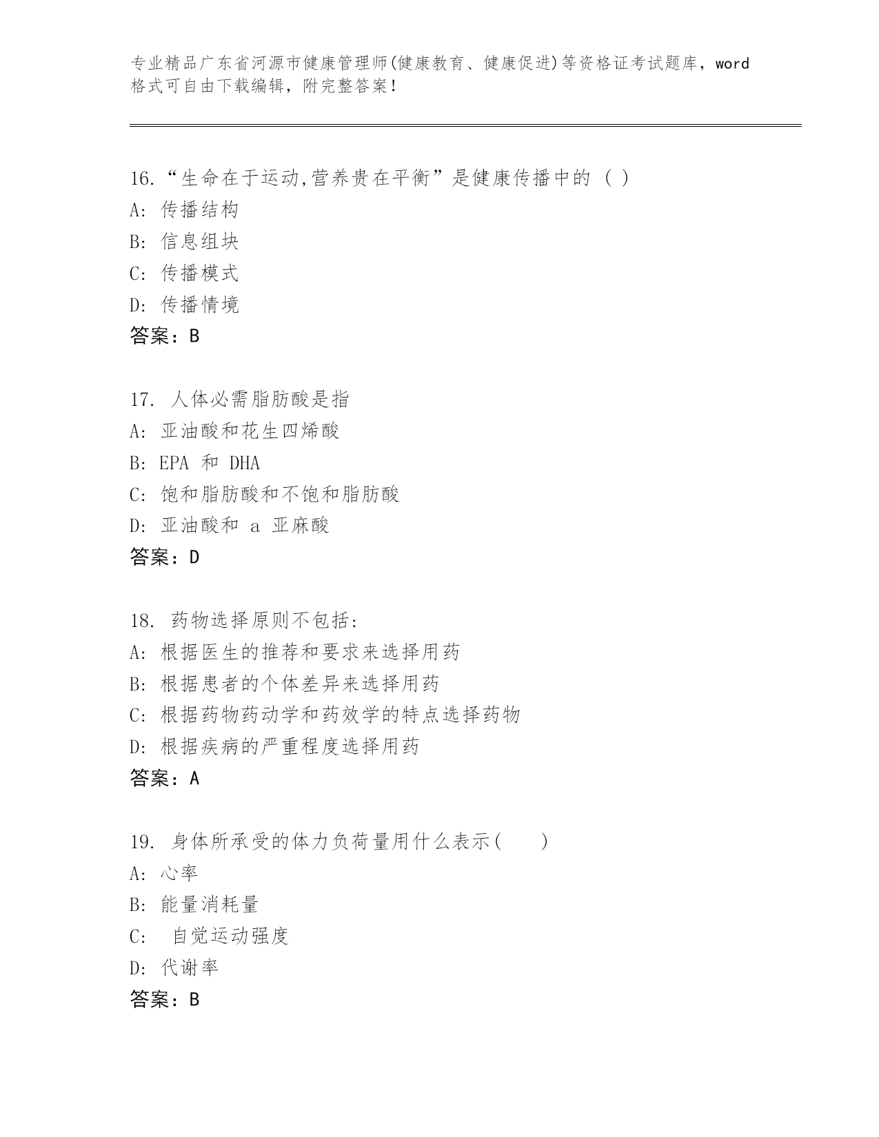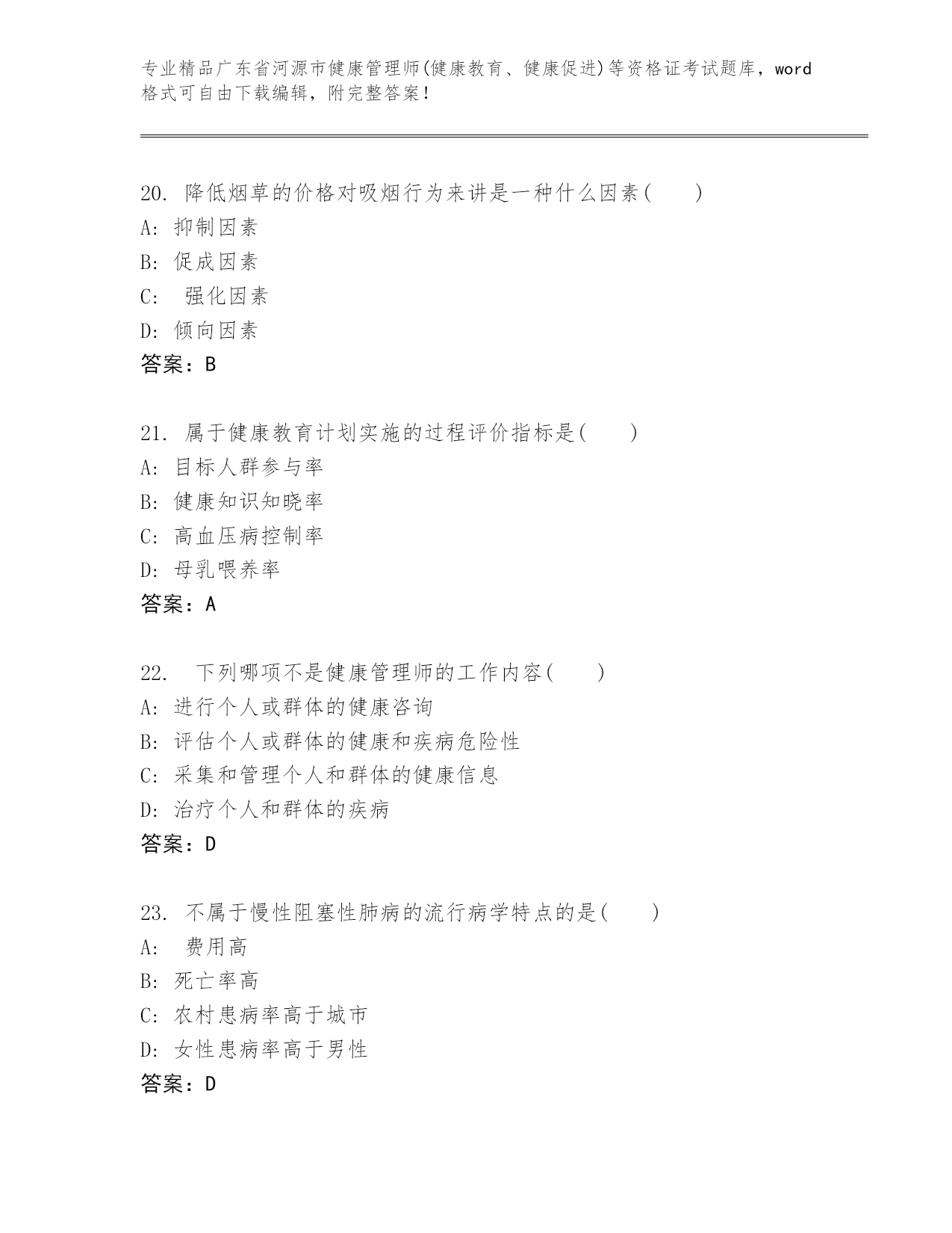 精心整理广东省河源市健康管理师(健康教育、健康促进)等资格证考试答案下载