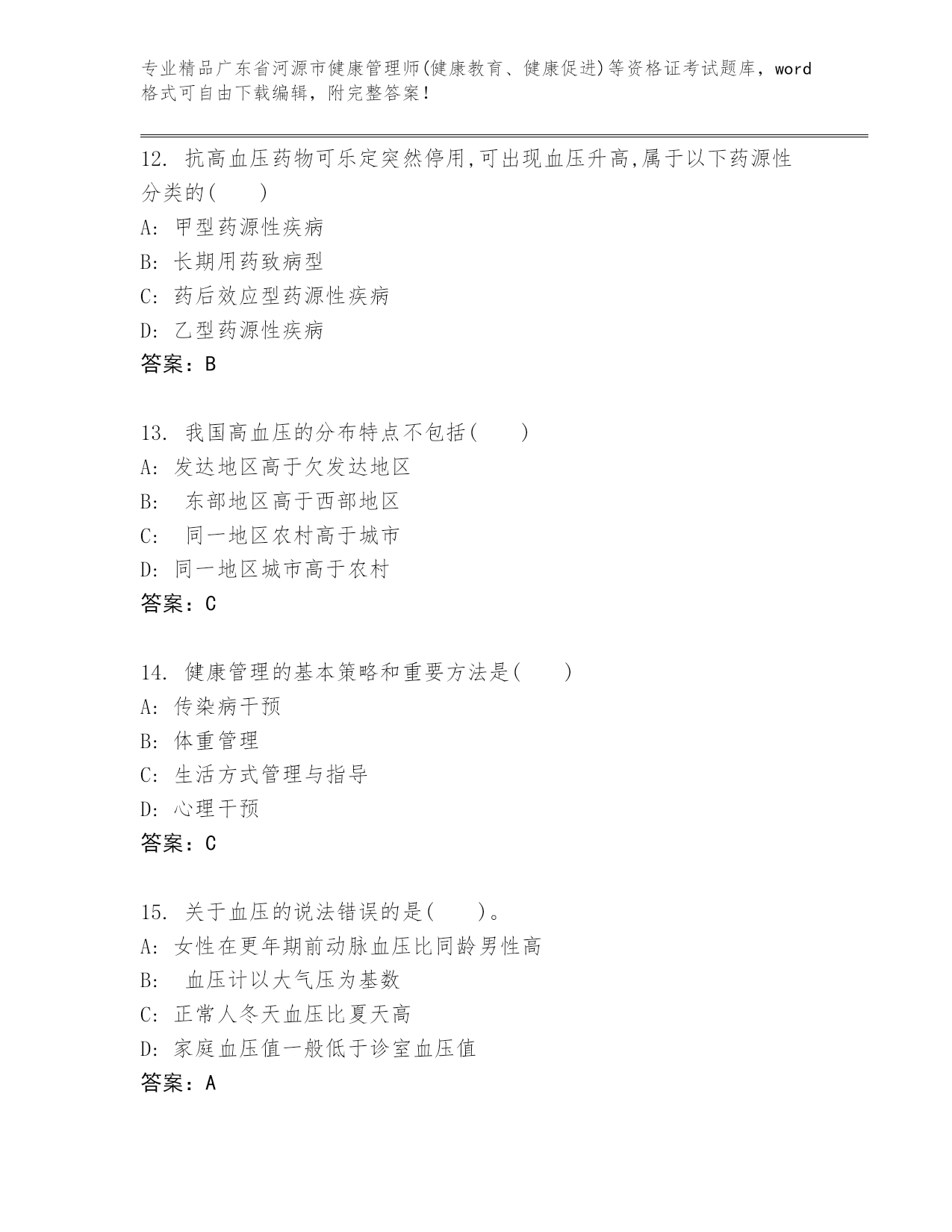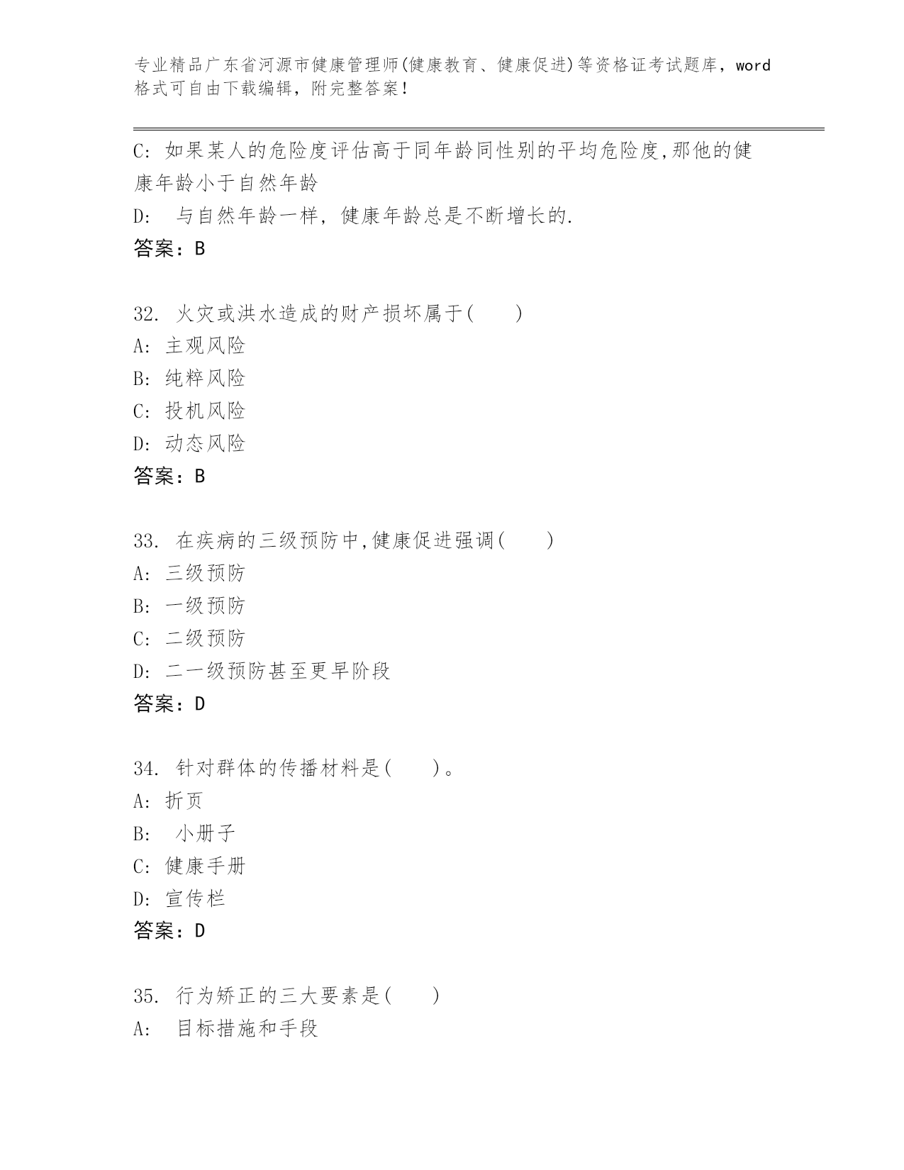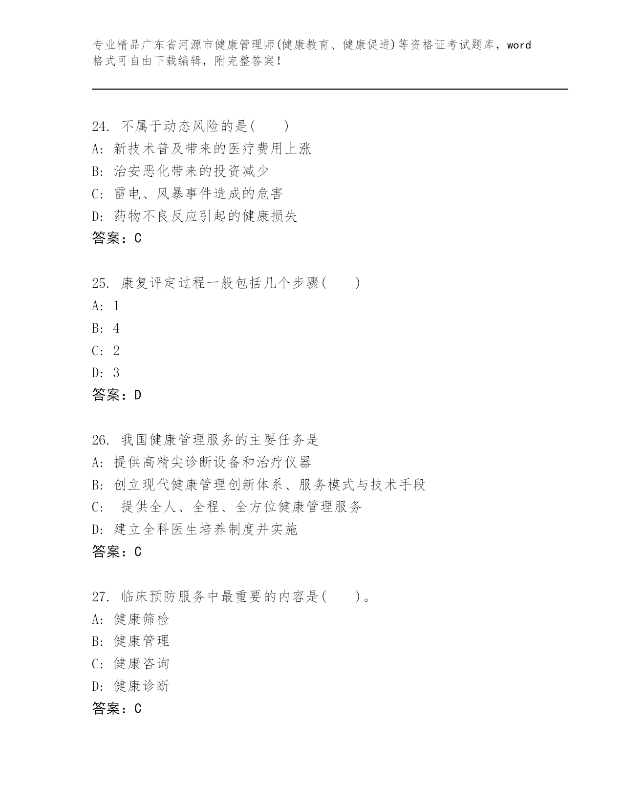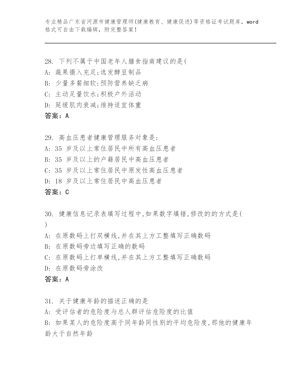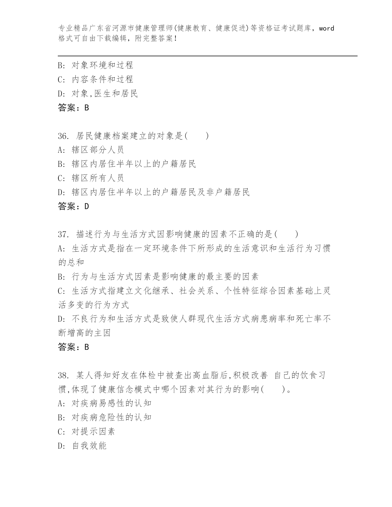 精心整理广东省河源市健康管理师(健康教育、健康促进)等资格证考试答案下载