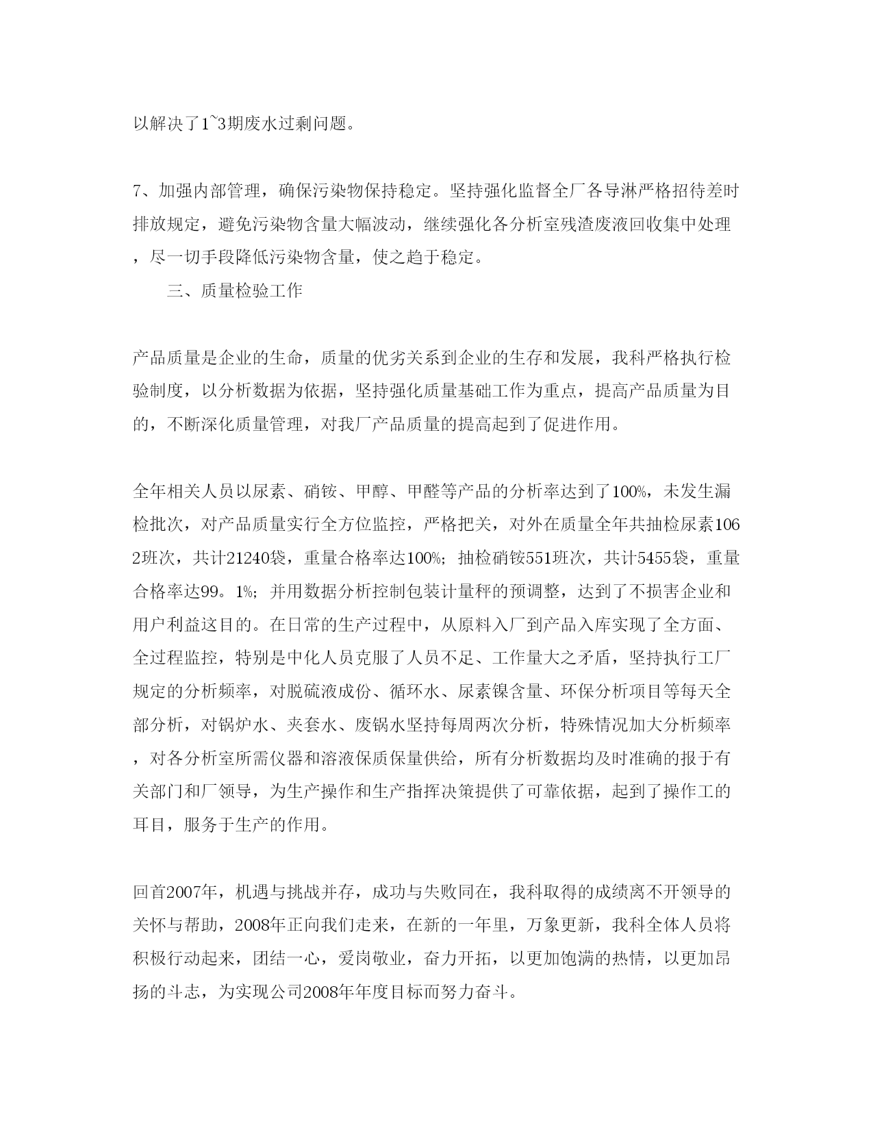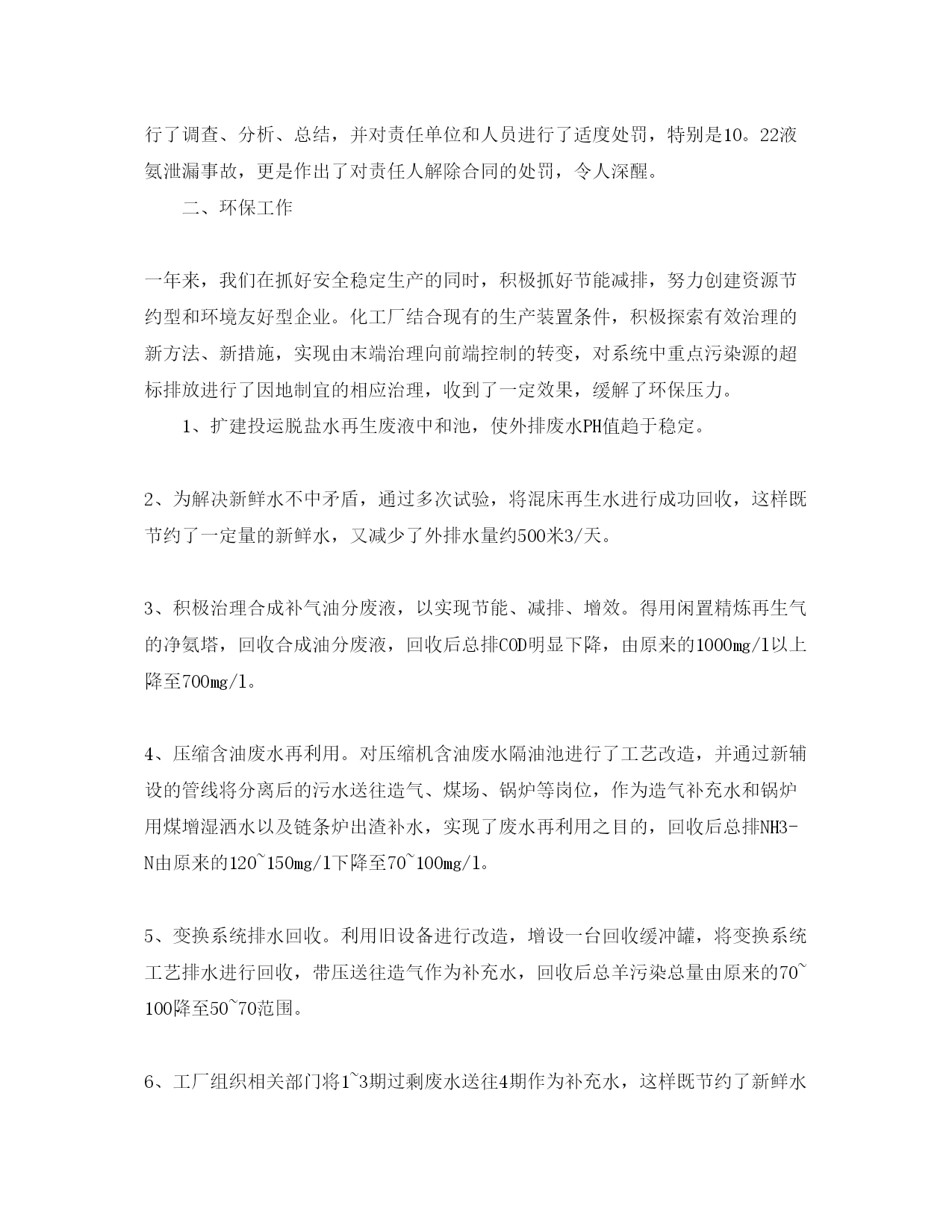 此资料由网络收集而来,如有侵权请告知上传者立即删除。资料共分享,我们负责传递知识。2007年工作总结回首一年来,我科全体人员在公司及化工厂的领导下,认真贯彻“安全第一,预防为主”的方针,牢固树立“以人为本”的理念和“责任重于泰山”的观点,始终坚持“目标任务明确,职能责任到人,执行制度到位,监督考核保证”的工作原则,有力地促进了生产系统的稳定运行,力争为企业营造“安全第一,清洁生产,节能降耗,构建和谐”的舆论氛围。现将一年来的主要工作总结如下:一、安全工作1、紧抓安全培训教育,努力提高员工素质。安全第一,预防为主的方针是消除和减少事故的法宝,提高做从业人员的素质是消除人的不安全行为的最有效方法。一年来,我科安排专人在三、四、五、六、七、八月份,对全厂员工集中学习了“安全管理制度、化工生产禁令、安全防护知识、应急救援与防护器材的正确使用等内容,每次参加培训人员约400余人,累计培训时间96小时。同时对不同时间入厂的62名新员工全部进行了为期一周的厂级安全教育,并监督各车间及班组认真开展新员工的培训教育,保证了新员工的三级安全教育的质量。在培训的过程中,不断探索新方式,如由前单一的讲授式转变为多媒体授课、课间提问、实际演练等形式。在日常工作中,有针对性的印发8份典型案例,及时转发相关职能部门的文件,并要求各单位合理安排时间组织所属员工认真学习。2、成功组织“安全月”和“安康杯”,以专项活动促进安全工作。我科以“安全月”和“安康杯”为契机,通过不断创新活动形式,有力地促进了安全检查生产长效机制的不断完善,进一步强化和落实了各项生产制度,有效地保证了生产的安全稳定和员工的职业健康安全。活动期间,通过悬挂宣传条幅,下发活动通知,利用调度会、厂简报、黑板报、宣传栏等形式,广泛宣传发动,营造了良好的安全氛围。各车间积极行动,有效地利用各种时机组织所必员工开展了丰富多彩的活动。活动期间,未发生重大操作责任事故和重大人身伤亡事故,实现了活动的总体目标要求。一年来,我科积极完成了公司的总体安排项目,先后完成了“安全质量标准化审核”、“甲醇、甲醛产品生产许可证验收”和工作,为企业管理上台阶企业上等级奠定了基础。3、开展全方位的隐患排查,保证安全设施消防设施完好备用。隐患排查与整改是安全管理工作的重点之一。一年来,全科人员克服困难,坚持不懈地执行日巡检、周联检制,全年共进行各种安全检查40余次,共提出整改项目300余项,重新修订了消防器材定置台帐、防护器材定置台帐,为各单位增补灭火器19具,更换灭火器70具,配发水枪7个,消防水带400米,接头8套,新增消防栓一处,更换防毒面具34具,滤毒罐60个,并对查出的隐患实施整改和考核。4、加强对检修现场的安全管理一年来,生产运行设施的维修和保养工作天天进行,还有数次系统停车检修。为确保检修安全,我科倾已所能,坚持深入现场,主动为各检修点制定检修防护措施,做到有项目就有安全员,坚持用数据说话,从面保证了现场动火、进塔入罐、可燃气体管道及煤气管碰头等大大小小的检修任务顺利进行。5、抓事故管理不放松。一年来,全厂共发生各类事故14起,其中操作责任事故3起,设备事故4起,工伤事故5起,我科均按照事故“四不放过”原则,会同相关部门,召集所涉及人员进行了调查、分析、总结,并对责任单位和人员进行了适度处罚,特别是10。22液氨泄漏事故,更是作出了对责任人解除合同的处罚,令人深醒。二、环保工作一年来,我们在抓好安全稳定生产的同时,积极抓好节能减排,努力创建资源节约型和环境友好型企业。化工厂结合现有的生产装置条件,积极探索有效治理的新方法、新措施,实现由末端治理向前端控制的转变,对系统中重点污染源的超标排放进行了因地制宜的相应治理,收到了一定效果,缓解了环保压力。1、扩建投运脱盐水再生废液中和池,使外排废水PH值趋于稳定。2、为解决新鲜水不中矛盾,通过多次试验,将混床再生水进行成功回收,这样既节约了一定量的新鲜水,又减少了外排水量约500米3/天。3、积极治理合成补气油分废液,以实现节能、减排、增效。得用闲置精炼再生气的净氨塔,回收合成油分废液,回收后总排COD明显下降,由原来的1000mg/l以上降至700mg/l。4、压缩含油废水再利用。对压缩机含油废水隔油池进行了工艺改造,并通过新辅设的管线将分离后的污水送往造气、煤场、锅炉等岗位,作为造气补充水和锅炉用煤增湿洒水以及链条炉出渣补水,实现了废水再利用之目的,回收后总排NH3-N由原来的120~150mg/l下降至70~100mg/l。5、变换系统排水回收。利用旧设备进行改造,增设一台回收缓冲罐,将变换系统工艺排水进行回收,带压送往造气作为补充水,回收后总羊污染总量由原来的70~100降至50~70范围。6、工厂组织相关部门