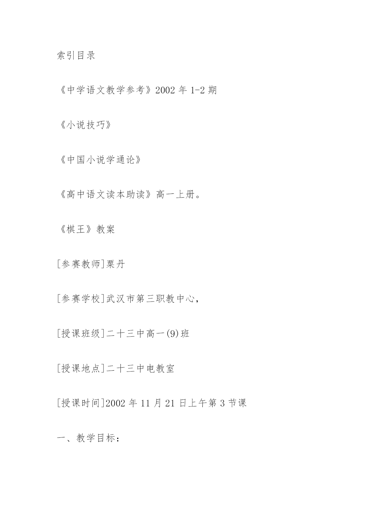 《棋王》教学设计(粤教版高二必修) 教案教学设计