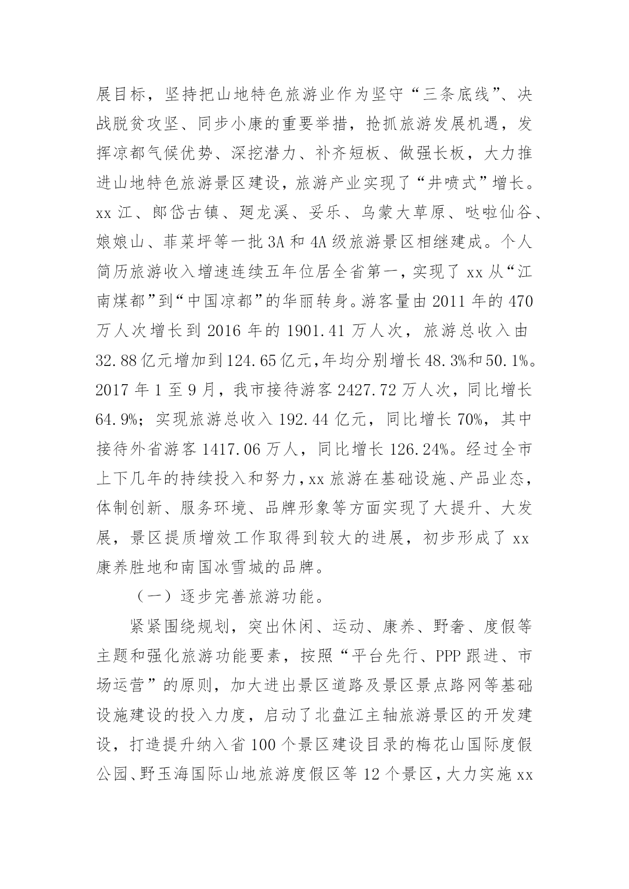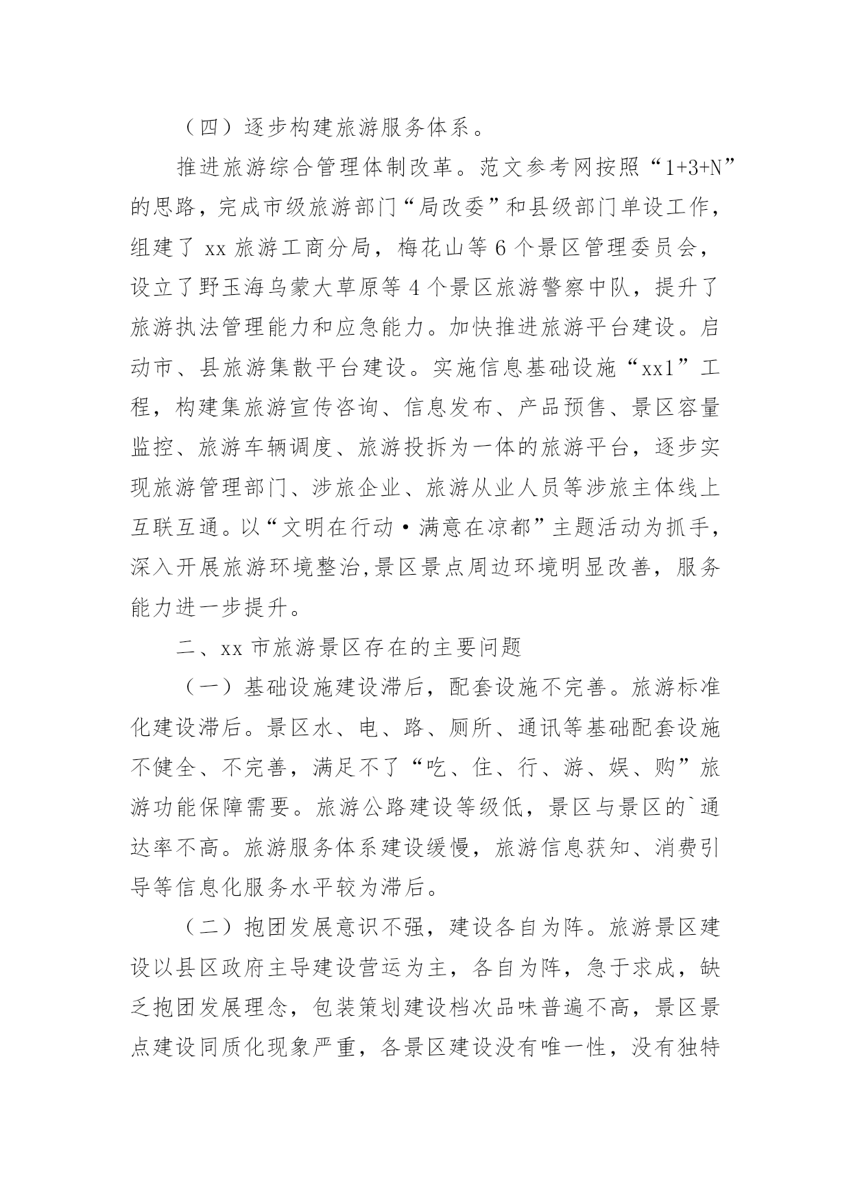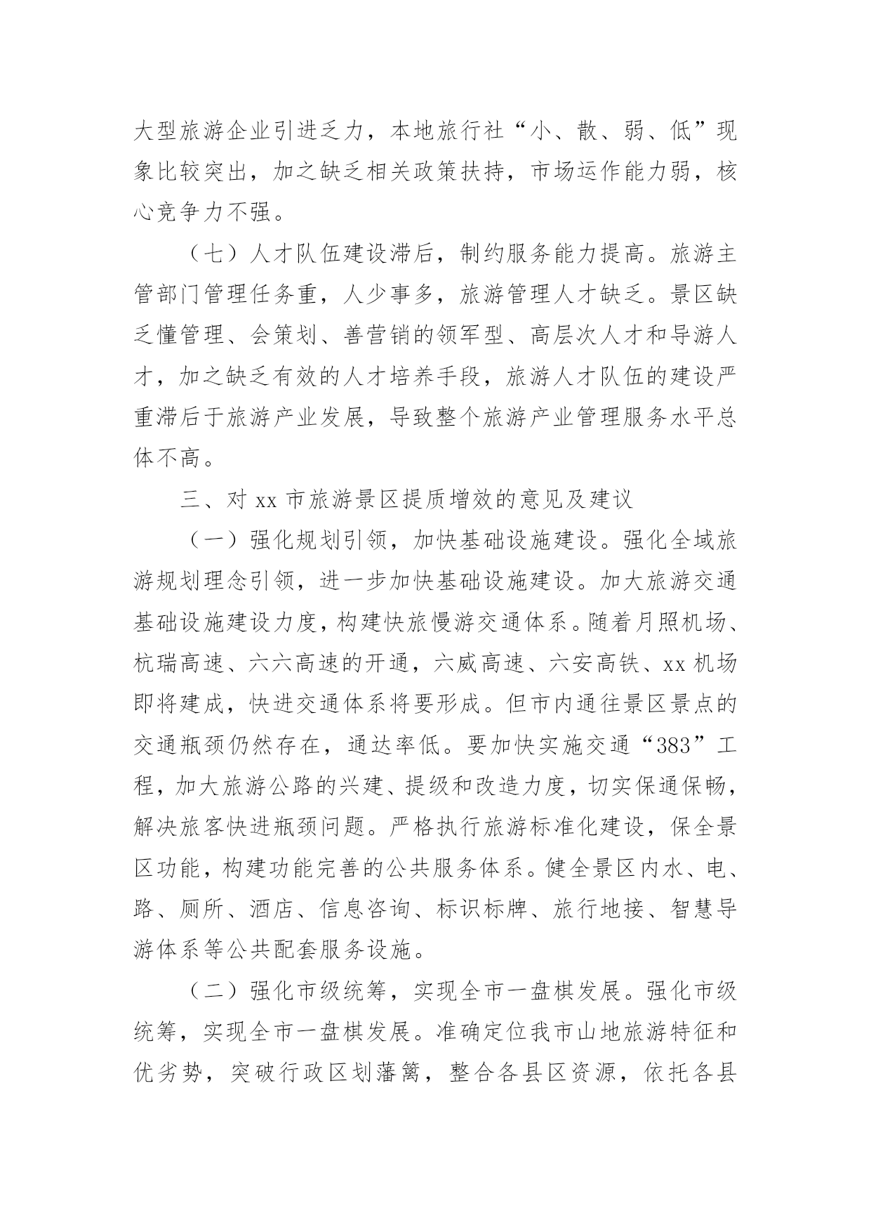 旅游景区的调研报告在现在社会,需要使用报告的情况越来越多,通常情况下,报告的内容含量大、篇幅较长。那么什么样的报告才是有效的呢?以下是小编精心整理的旅游景区的调研报告,欢迎阅读与收藏。旅游景区的调研报告1一、景区旅游资源:乌镇拥有两大成熟型景区:东栅景区和西栅景区是国家五A级景区,占地面积平方公里;其中东栅景区主要以“一日观光游”为主,西栅景区主要以“休闲度假商务游”为主。其中著名旅游景点有江南百床馆、江南民俗馆、江南木雕陈列馆、余榴梁钱币馆、文昌阁、宏源泰染坊、茅盾故居、古戏台、昭明书院、汇源当铺、乌镇大戏院等。二、部门概括乌镇旅游景区下属现有景区销售公司、景区管理公司、景区经营公司、景区配套建设公司及其他行政职能部门。景区销售公司分为四大中心:酒店管理中心、咨询预订中心、宾客接待中心、市场营销中心。酒店管理中心含有:前厅接待员、厨师、餐饮服务员、酒水收银员、客房服务员、礼宾、传菜员、PA等岗位;咨询预订中心含有:前厅接待员、话务员、咨询员、网络预订员、计调、行李员、PA等岗位;宾客接待中心含有:导游、售票、接待员等岗位;市场营销中心含有:市场销售员、商务销售员、品牌设计、媒体接待、网络销售员、网络维护员等岗位。三、景区接待服务:乌镇景区接待包括宾客接待中心、咨询预订中心、前厅部三大板块12个业务部门,涉及导游、售票、预订、社区、网络、咨询和CCO接待等业务。为符合巾帼创建理念、充分考虑游客需求,突出岗位创建特色,实现一岗一品的主题,特增设有人性化特色服务如:景区大前台24小时服务,CCO(首席礼宾官),代售车票、飞机票、火车票,旅游网购服务等。在这一方面,我认为乌镇景区还是比较合理的,无论在餐饮、住宿、交通、娱乐、购物、咨询、投诉处理情况等方面都有专门的部门负责,而且在服务态度方面有着严格的要求。四、景区的人员的解说服务:㈠、乌镇景区培养景区讲解员要求:①、熟记导游词1、导游要熟记导游词,以便顺畅的讲给游客;2、发挥个人本身的特色,有个人的风格。②、对景区讲解员的礼仪接待、语言表达、对客服务态度也有相应的培训。③、加强了解企业文化,对企业增强信心。㈡、导游讲解体验和经验:一次偶尔的机会,正好由乌镇的景区讲解员为我讲解导游词,在调研的过程中,她向我说了有关于她的讲解体验和经验。这是一位工龄三年的讲解员,她说:在第一次为游客讲解的过程中,她十分紧张,总是说话不流畅,但是由于不断的培训,讲解,渐渐地也对讲解有了一定的经验。况且公司的培训也有着严格的'要求。五、景区的环境和安全情况:乌镇景区环境优美,有古桥72座,河道密度和石桥数均为全国古镇之最,景区内保存有精美的明清建筑25万平方米,横贯景区东西的西栅老街长度达公里,两岸临河水阁绵延公里余。关于安全方面,景区设置了许多的提示牌,在每一处有安全隐患的地方都有标志,考虑十分周到,除了标志牌以外,景区内有安保队进行巡逻。也给员工入职培训时都会对安全情况进行培训,要求景区每位员工都能熟记安全求救电话,也定期进行安全模拟培训。因此,景区的安全情况做的还是十分到位的。旅游景区的调研报告2〔内容摘要〕市政协人口资源环境委员会视察组为发挥咨政建言献策作用,助推我市旅游产业发展,深入到xx特区郎岱古镇、xx江,xx市娘娘山,xx县野玉海,钟山区梅花山等旅游景区,通过听取汇报、召开座谈会、实地察看等方式,对我市旅游景区提质增效工作情况进行了调研,提出了有建设性的措施和办法。〔关键词〕旅游景区提质增效一、xx市旅游景区提质增效基本情况20xx年以来,市委市政府以建设大健康旅游目的地为发展目标,坚持把山地特色旅游业作为坚守“三条底线”、决战脱贫攻坚、同步小康的重要举措,抢抓旅游发展机遇,发挥凉都气候优势、深挖潜力、补齐短板、做强长板,大力推进山地特色旅游景区建设,旅游产业实现了“井喷式”增长。xx江、郞岱古镇、廻龙溪、妥乐、乌蒙大草原、哒啦仙谷、娘娘山、菲菜坪等一批3A和4A级旅游景区相继建成。个人简历旅游收入增速连续五年位居全省第一,实现了xx从“江南煤都”到“中国凉都”的华丽转身。游客量由2011年的470万人次增长到2016年的1901.41万人次,旅游总收入由32.88亿元增加到124.65亿元,年均分别增长48.3%和50.1%。2017年1至9月,我市接待游客2427.72万人次,同比增长64.9%;实现旅游总收入192.44亿元,同比增长70%,其中接待外省游客1417.06万人,同比增长126.24%。经过全市上下几年的持续投入和努力,xx旅游在基础设施、产品业态,体制创新、服务环境、品牌形象等方面实现了大提升、大发展,景区提质增效工作取得到较大的进展,初步形成了xx康养胜地和南国冰雪城的品牌。(一)逐步完善旅游功能。紧紧围绕规划,突出休闲、运动、康养、野奢、度假等主题和强化旅游功